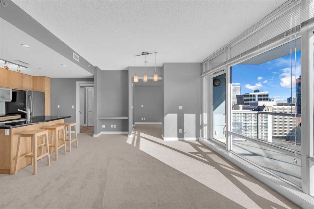 The spacious living area opens onto a large covered balcony—perfect for your BBQ or enjoying the downtown skyline.