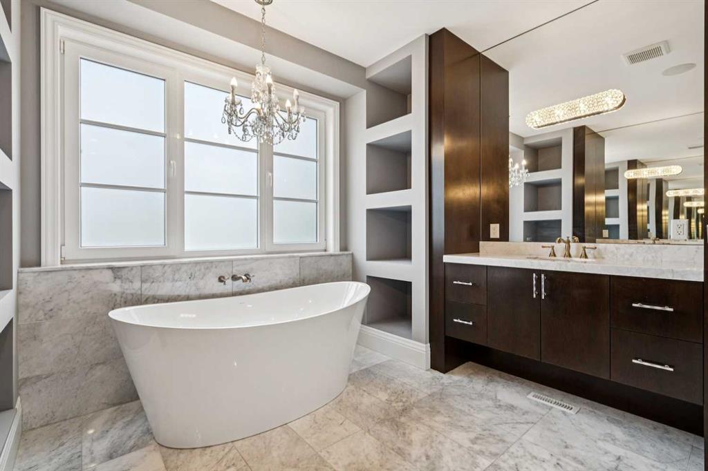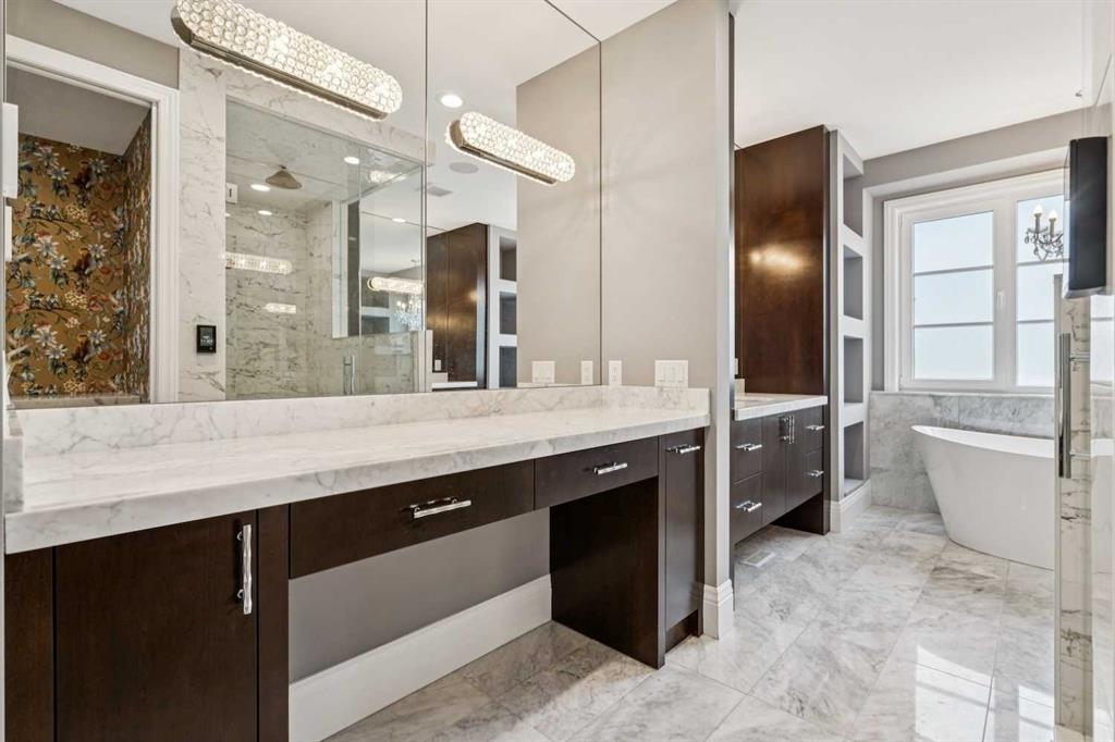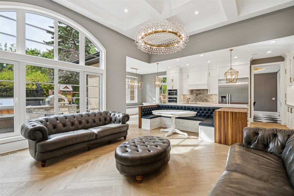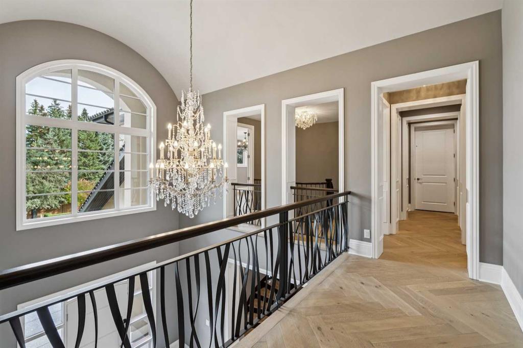 Nestled in the highly sought-after community of Bel -Aire, this John Haddon designed expansive estate offers unparalleled luxury, meticulous design, and effortless family or multi-generational living. The home & grounds underwent an extensive renovation and addition in the past few years both inside and out. A circular drive with a water feature sets the tone for a home where every detail has been thoughtfully crafted—from showpiece chandeliers, herringbone patterned hardwood, marble floors to spaces perfectly suited for family, & guests. This home features 6 bedrooms up plus 1 in the basement, each with its own ensuite. The layout is ideal for nanny or mother – in law living, with private spaces designed for comfort, privacy and independence. A dramatic front foyer with a spiral staircase makes a striking first impression, opening to a formal dining area and a main-floor office equipped with built-ins, TV, fireplace, and a wet bar with a wine fridge. The living room is flooded with natural light from the floor-to-ceiling windows and centers around a fireplace, offering a welcoming hub for daily living and entertaining. The chef’s kitchen is a true standout, featuring an abundance of cabinetry, a large island, built-in dining nook, built- in dining room hutch wall with prep sink,2 wall ovens, 2 dishwashers all seamlessly open to the family room where built-ins flank the fireplace and TV. Off the garage is a Mudroom with built in cabinets and a walk-in pantry with a sink, fridge and plenty of cabinets. Up the grand spiral staircase the primary bedroom is a true retreat with its own fireplace and TV, a vast walk-in closet with custom hanging systems, built-in dressers and a washer and dryer for convenience. The spa-like ensuite offers his-and-hers vanities, a makeup station, a jetted tub, a steam shower with smart controls all ensuring a luxurious daily routine. A few additional stairs lead to 2 upper bedrooms with a full bathroom, ideally suited for a nanny or mother-in-law suite, while the remaining four bedrooms on the upper level all feature their own ensuites and walk-in closets for ample private space. The fully finished lower level expands living areas further with a large family room, a theatre, a glass-enclosed wine room, a sixth bedroom and bathroom, Gym with a TV, extra closet and lots of storage. Out back in the yard is the ultimate of living spaces. The family is sure to enjoy evening movies gathered under cover around the Outdoor TV and fireplace. Never a shortage of activities for the family with an amazing sport court, trampoline, play structure and hot tub. While the kids are busy the adults will enjoy the outdoor kitchen featuring a wine fridge, sink, Built in BBQ and Pizza Oven. Bel-Aire is a centrally located community next to the Calgary Golf and Country Club, close to schools, shopping, restaurants, transportation and the Glenmore reservoir and pathways. This a truly rare opportunity in Calgary’s luxury real estate market.