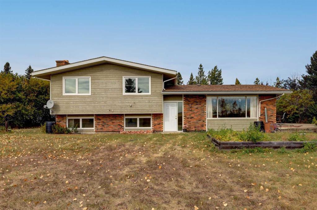 OPEN HOUSE SATURDAY NOVEMBER 1ST FROM 1-3PM. Experience the best of country living just 5 minutes from town! Tucked away on 4 private, beautifully treed acres, this charming 4-level split is the perfect retreat for those craving space, privacy, and a touch of nature. Step inside and you’re welcomed by a bright open-concept kitchen and dining area that flows into the living room, where large windows frame peaceful country views. Upstairs you’ll find 3 comfortable bedrooms and 2 full bathrooms, including a relaxing primary suite with its own 4-piece ensuite. The lower level offers cozy family living with a wood-burning stove, a 4th bedroom, laundry, and an additional bathroom. Head down one more level to the basement and you’ll discover a games room (yes—the pool table stays!), bar area, plus plenty of storage and a cold room for all your extras. Recent updates mean peace of mind: new roof (2023), newer composite siding, newer septic tank (approx. 5 years), hot water tank and some new doors/windows (2025). But the real treasure is outside—whether you’re tinkering in the heated triple garage and shop, relaxing by the waterfall pond, or enjoying evenings in the bunkhouse with its own propane stove and power. There’s room for animals with a paddock and shelter, plenty of sheds for storage, RV parking, and rows of fruit trees that add both privacy and charm. This isn’t just a property—it’s a lifestyle. A place where you can breathe, unwind, and enjoy the tranquility of acreage living, all while being just minutes from Airdrie.