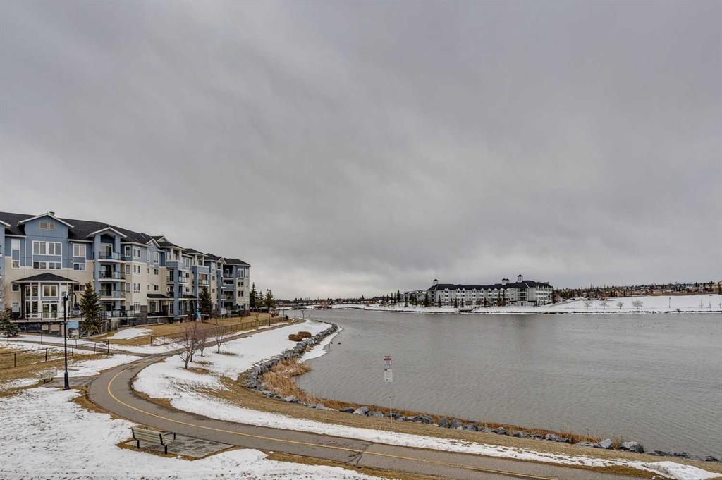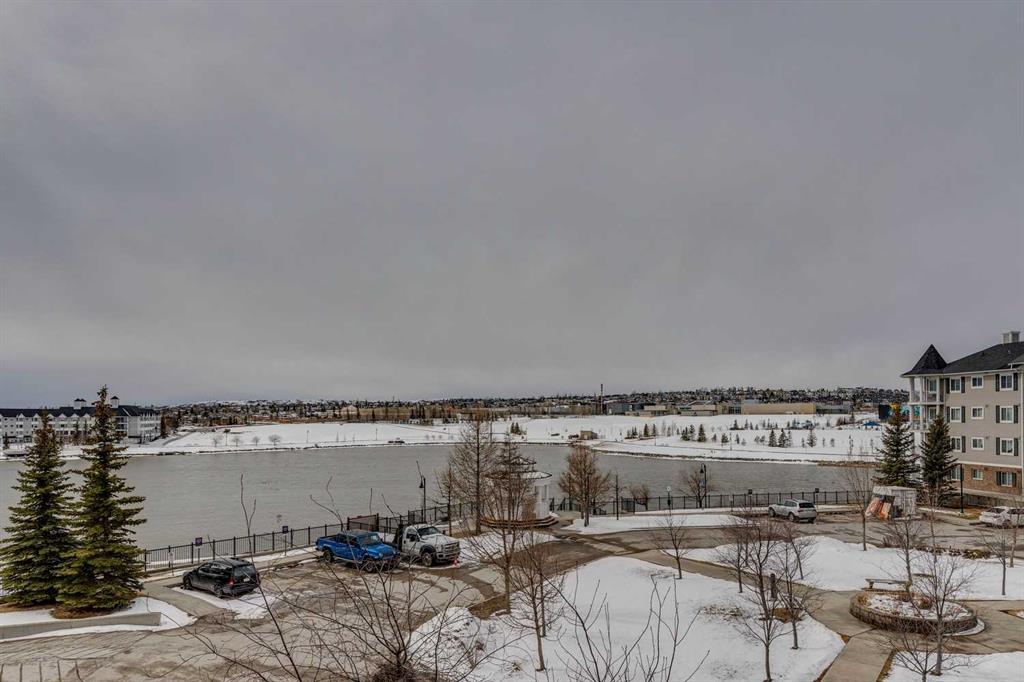 Welcome to this bright and spacious 2 bedroom + den condo in Lighthouse Landing, Country Hills, offering just over 840 sq.ft. of functional living space with beautiful pond views and incredible natural light. The open concept layout features a large living area with expansive windows and direct access to a private balcony overlooking the water, complete with a gas line for BBQ, creating the perfect space to relax and unwind. The kitchen flows seamlessly into the living space and is complemented by a dedicated dining area, while the den near the entrance provides an ideal setup for a home office or additional storage. Both bedrooms are generously sized and feature windows, including the primary bedroom with a walk-in closet and private 4-piece ensuite, while a second full 4-piece bathroom adds convenience for guests or additional occupants. Enjoy the added convenience of in-suite laundry, along with both an underground parking stall and a surface stall, plus a storage unit located directly in front of the underground space for easy access. Ideally located, you are just minutes from Country Hills Towne Centre, Superstore, Vivo Rec Centre, Landmark Cinemas, and countless restaurants and cafes. Quick access to Stoney Trail and Deerfoot Trail ensures an easy commute anywhere in the city, and Calgary International Airport is only 10 minutes away.