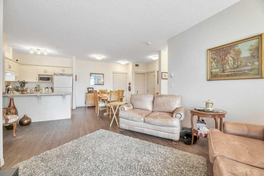 Welcome to UNIT 1309, an immaculate 2-BEDROOM, 2-BATHROOM condo offering a serene lifestyle in one of SE Calgary’s most desirable communities, Cranston. Perched on the THIRD FLOOR WITH COOL NORTH EXPOSURE, this beautiful home is filled with natural light and thoughtful design. Enjoy TWO PARKING STALLs — one titled HEATED UNDERGROUND with a STORAGE LOCKER CONVENIENTLY LOCATED IN FRONT, and one ASSIGNED OUTDOOR STALL. Step inside to find 9-FOOT CEILINGS, LAMINATE FLOORING, and a SMART OPEN-CONCEPT LAYOUT that maximizes space and flow. The kitchen features WHITE CABINETRY, WHITE APPLIANCES, ample counter space, and a PENINSULA WITH SEATING — perfect for casual dining or entertaining. The bright living and dining areas open to your PRIVATE NORTH-FACING BALCONY, an ideal spot to unwind and enjoy peaceful evenings. The PRIMARY BEDROOM includes a WALK-THROUGH CLOSET AND 4-PIECE ENSUITE, while the SECOND BEDROOM—separated for privacy—sits adjacent to ANOTHER FULL BATHROOM. Added conveniences include IN-SUITE LAUNDRY with extra storage. This WELL-MANAGED, PET-FRIENDLY COMPLEX is surrounded by parks and green space, with easy access to CRANSTON RAVINE, SCHOOLS, SHOPPING, THE SETON URBAN DISTRICT, SOUTH HEALTH CAMPUS, FISH CREEK PARK, and major routes like STONEY AND DEERFOOT TRAILS. As a resident, you’ll also enjoy EXCLUSIVE ACCESS TO CENTURY HALL, featuring a gymnasium, splash park, outdoor rink, and more. Whether you’re a FIRST-TIME BUYER, INVESTOR, OR DOWNSIZER, this home offers LOW-MAINTENANCE LIVING, MODERN COMFORT, AND UNBEATABLE LOCATION — the perfect balance of calm and connection.