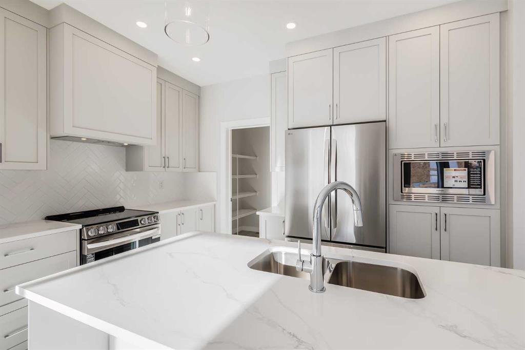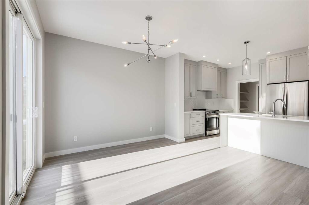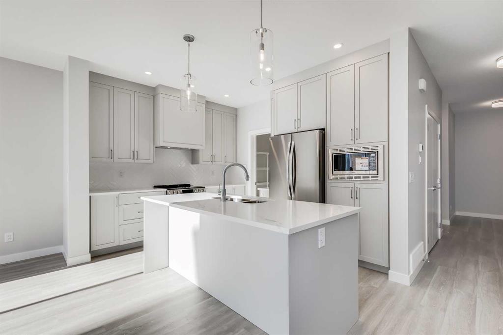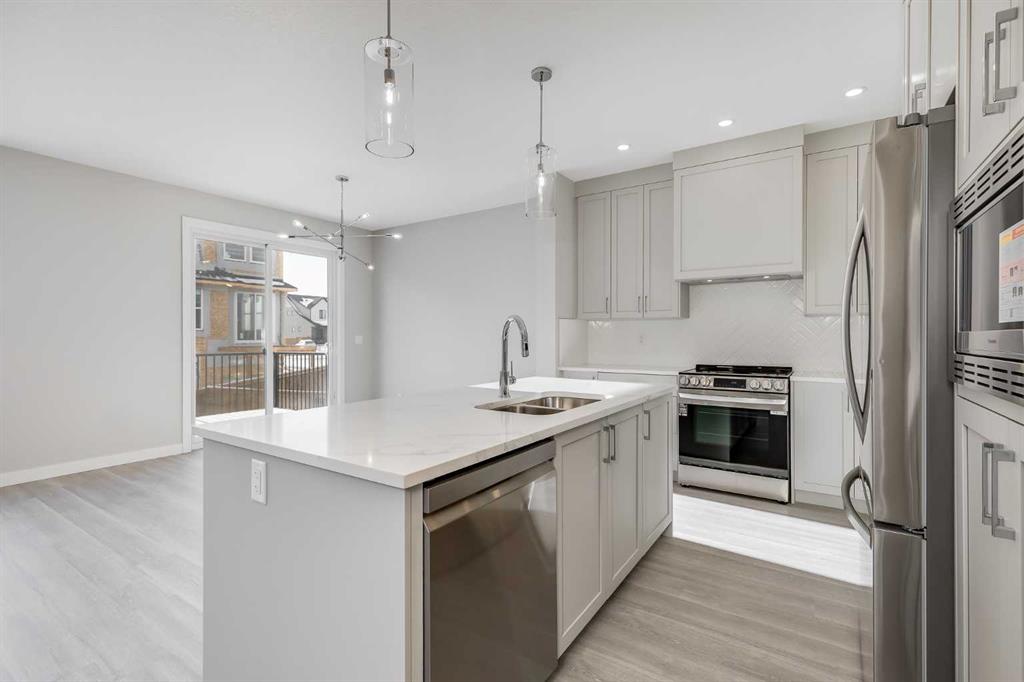 Looking for space, sunshine, and style? This NEW South Point home delivers big on all 3! A spacious 3-bedroom, 2.5-bath home that offers over 2,200 sq.ft. of thoughtfully designed living space, highlighted by 9′ ceilings on both the main floor and the bright sunshine basement. The open-concept main level features large windows, a modern kitchen with quartz countertops throughout, sleek cabinetry, a walk-in pantry, and a welcoming island with a breakfast bar. The dining area opens effortlessly into the Great Room, creating a warm and inviting space for everyday living.