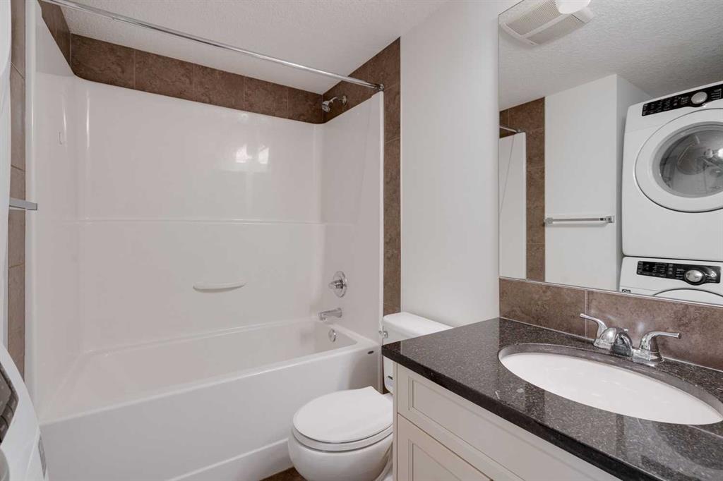 A beautifully maintained bungalow-style end-unit townhouse in the heart of Cranston, offering an exceptional blend of comfort, style, and functionality. This thoughtfully designed 2-bedroom, 1-bathroom home showcases pride of ownership throughout, a private double attached tandem garage, and is truly move-in ready. Located in one of the development’s best locations, this end-unit townhouse receives more natural light and has no neighbours directly in front, ensuring you can maximize sunshine on your private south-facing patio! Resilient laminate flooring extends throughout the main living space and into the bedrooms, creating a warm and cohesive aesthetic. The open-concept layout is anchored by a timeless central kitchen featuring full-height white cabinetry, accented by black pearl granite countertops, and a suite of upgraded stainless steel appliances. Clean lines and neutral finishes create a space that feels both current and timeless. Expansive south-facing windows flood the living area with natural light year-round, enhancing the bright and inviting atmosphere. The primary bedroom includes a walk-in closet, while the second bedroom offers versatility – ideal as a guest room, home office, or additional bedroom. The full bathroom features matching cabinetry and includes a convenient stacked washer and dryer. On the lower level, you’ll find additional storage space and access to the private double attached tandem garage, offering flexibility for two vehicles, additional storage, or the option to incorporate a hobby space or home gym. Enjoy the outdoors from the south-facing private front patio, which is fully fenced, includes a gas BBQ line, and perfectly captures the afternoon and evening sun while overlooking a beautifully landscaped walkway. Ideally situated just minutes from Cranston Market, schools, pathways, and with quick access to Seton’s extensive amenities and the South Health Campus, this location offers both convenience and community. Low condominium fees within this well-managed complex provide a maintenance-free lifestyle at an attractive cost. An ideal opportunity for first-time buyers, downsizers, or investors seeking quality and long-term value in one of Calgary’s most established southeast communities.