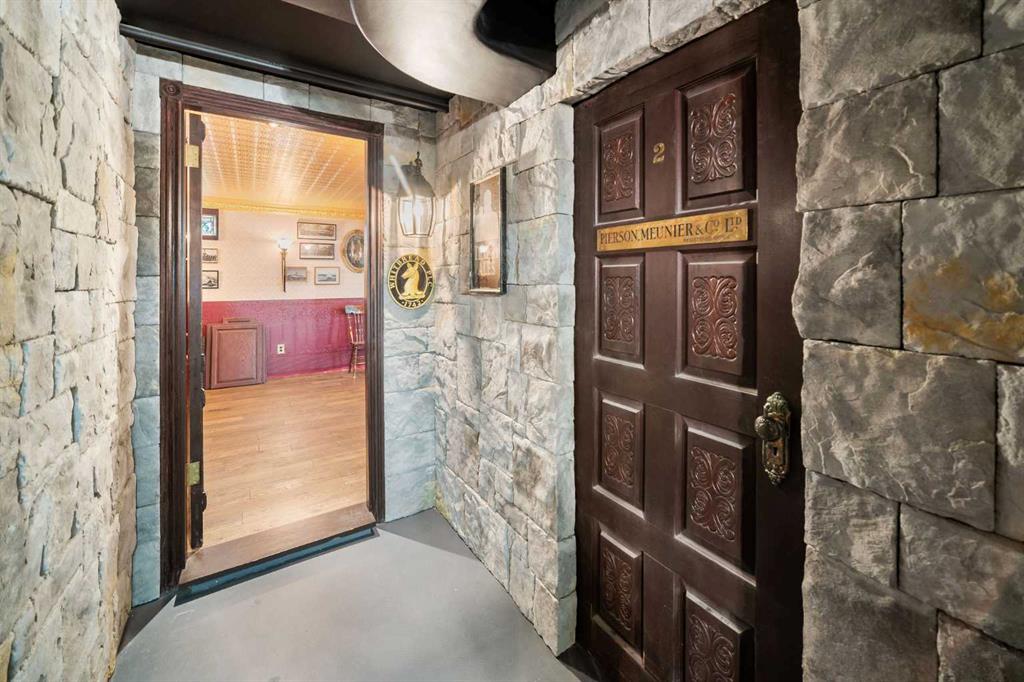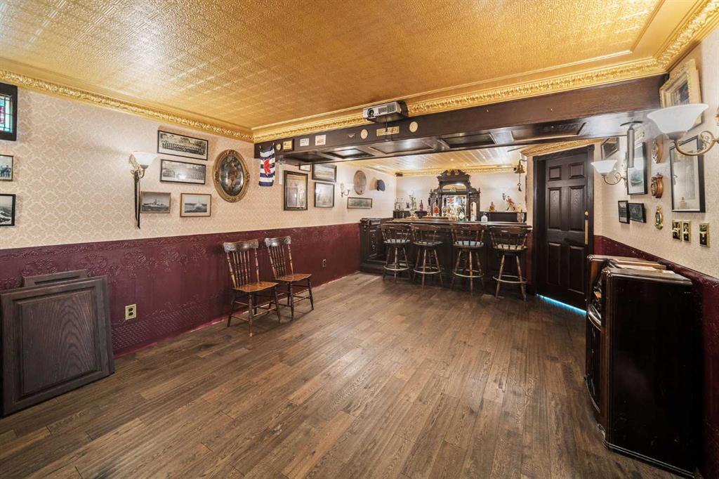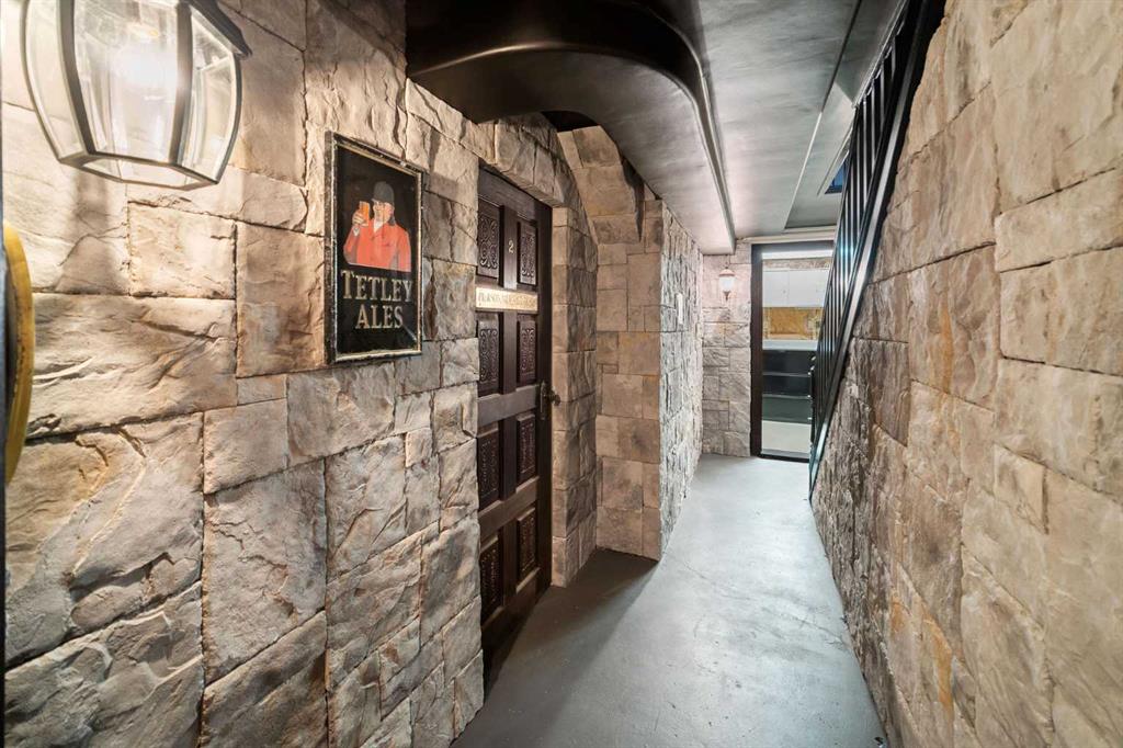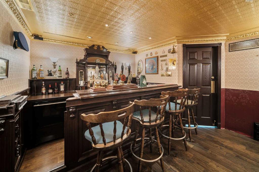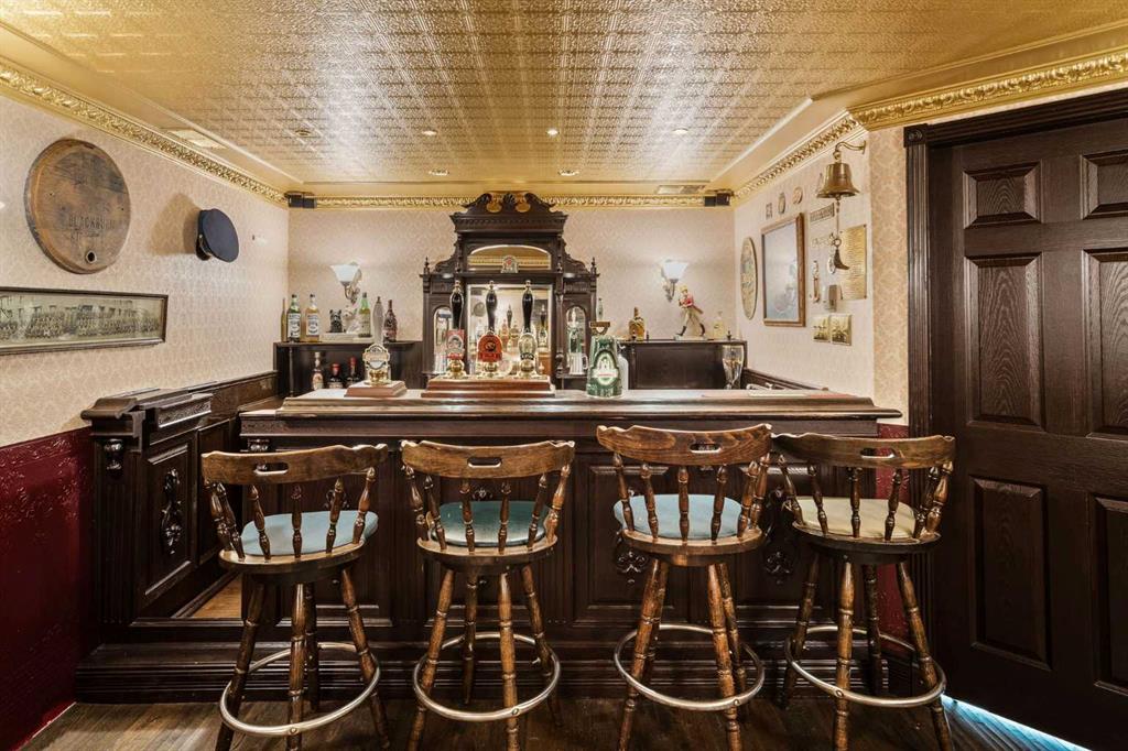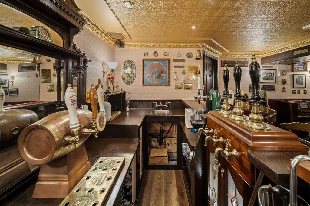 The main floor offers flexibility with a cozy bedroom or home office, a half bath, laundry, and a welcoming family room that steps out to your views of a green space. Upstairs you’ll find a spacious open-concept living and dining area with a wood-burning fireplace (with gas starter), a bright kitchen, and a large primary retreat with a beautifully updated ensuite. A third bedroom, or the perfect spot for a den, library, or whisky tasting room, along with another full bath completes this level. Both levels extend your living space outdoors with plenty of patio and balcony options. Comforts include an ecobee smart thermostat and staying cool with air conditioning. Downstairs is where the magic happens and is a hobbyist’s dream. Your very own show-stopping English-style pub awaits, complete with a solid oak bar, a dishwasher, and even a dedicated room off to the side for wine-making or a microbrewery setup. The authentic wooden doors alone in this lower space tell 100 years of stories. Whether you picture entertaining friends, cozy movie nights, or escaping into a one-of-a-kind hideaway, this lower level is unforgettable. Updates include a new furnace and hot water tank in 2018, vinyl windows in key areas (2018), and a completely updated ensuite in the primary bedroom. While some finishes show the patina of time, the opportunity is clear. You can lean into the vintage character or reimagine the space to fit your own style. This home is set in one of Calgary’s most desirable communities. Patterson offers convenience, green space, and amenities that make daily life special. This development is fur-baby (dogs and cats) friendly with board approval. Right outside your door you’ll find a convenient off-leash dog park, a fenced-in play park, and multiple walking and biking trails. Dining and shopping options are nearby, including Ryuko Japanese Kitchen + Bar, Aspen Landing Shopping Centre, Westside Recreation Centre, and the shops of West Springs. Local favorites like Mercato, Vin Room West, Brekkie, and UNA Pizza + Wine are only a short drive away. You’re also surrounded by great schools and an easy drive to Foothills General Hospital. Getting around is so easy with quick access Stony Trail, Highway 1, and both Bow Trail and Sarcee trail bringing you downtown, to the airport, and the rocky mountains including Canmore and Banff are close enough for day trips to ski, spa, and play.