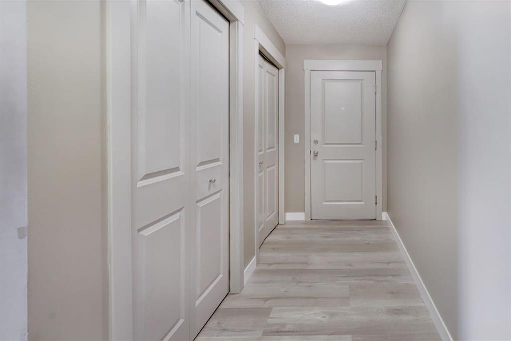 This contemporary corner unit offers 903 square foot of stylish living space with 2 bedrooms, 2 bathrooms and panoramic south-west exposure. Step out onto the balcony, complete with gas BBQ line and enjoy the stunning mountain views. Fresh laminate flooring and an open-concept design create a modern, airy feel that’s filled with natural light throughout the day. The contemporary kitchen features dark-stained cabinetry, tiled backsplash, granite counter, and stainless steel appliances. The spacious primary bedroom includes a walk-through closet leading to a 4 piece ensuite, while the second bedroom and full bathroom provide flexibility for guests or a home office. The two bedrooms are thoughtfully positioned on opposite sides of the condo for added privacy – please see the included floor plan for full layout. Additional highlights include in-suite laundry, titled heated underground parking with a storage locker conveniently located directly in front of the stall. Ideally located with easy access to Stoney and Deerfoot Trail, just minutes from the airport and Cross Iron Mills, plus shopping, parks, schools, and everyday amenities nearby – including a bus stop right on the street. This move-in ready condo is available for immediate possession. It blends comfort, convenience and incredible views – a fantastic place to call home. Be sure to take time to explore the 3D virtual tour.