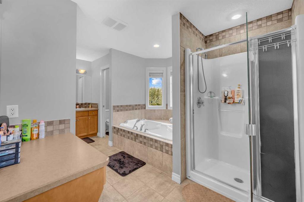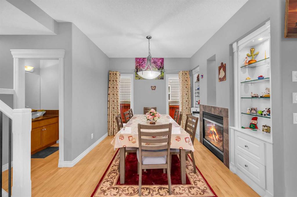 . Beautifully upgraded two-storey front garage home in the heart of Coventry Hills, offering the perfect blend of style, comfort, and practicality. The main floor features 9-foot knockdown ceilings, rich hardwood flooring, and a welcoming entry with a front closet and decorative niche. The open-concept layout flows seamlessly through a bright living area with two large windows, a cozy natural gas fireplace in the dining area with built-in shelving, and a stylish kitchen complete with maple cabinetry, granite countertops, stainless steel appliances including a double-door fridge with water line, a pantry, and a sunny south-facing window. A convenient half-bath and a separate laundry room with upgraded washer and dryer complete the main level. Upstairs, the elegant railing with metal spindles leads to a spacious bonus room with vaulted ceilings, pot lights, and large windows—an ideal space for family relaxation. The primary bedroom offers a generous layout with a walk-in closet and a luxurious ensuite featuring double sinks, a jetted tub, a standing shower, tile flooring, and pot lighting. Two additional bedrooms upstairs are bright and roomy, complemented by a full main bathroom. The finished basement expands the living space with a large recreation area and an extra bedroom—perfect for guests, teens, or a home office. The large south-facing backyard features a maintenance-free deck with glass railing and convenient back-alley access, making it perfect for RV parking without sacrificing yard space. Ideally located within walking distance to several elementary schools, a public middle school, parks, and green spaces—plus just minutes to Notre Dame High School, Vivo Rec Centre, Country Hills Town Centre, and Coventry Hills Centre for all your shopping and dining needs. Enjoy easy access to Stoney Trail, public transportation, and the airport—making this upgraded, move-in-ready home the perfect combination of comfort, convenience, and community living.