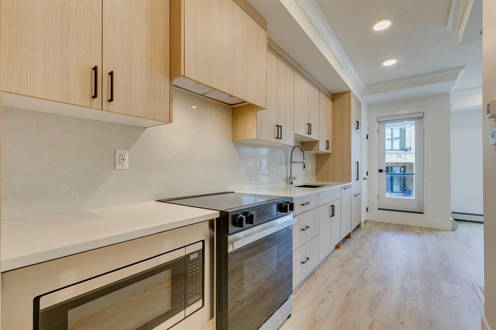 Welcome to The Rosa, a magazine-worthy corner unit condo in Dean’s Landing that redefines modern living. This brand-new, never-occupied residence features 422.27 sq ft of thoughtfully designed space, boasting lofty 9′ to 10′ ceilings and an abundance of natural light from large windows. Step outside to your own private 56 sq ft balcony, perfect for hosting summer barbecues or enjoying a serene morning coffee. The chef-inspired kitchen offers ample countertops and a dedicated pantry, while the spacious bedroom accommodates a queen-size bed with ease, complemented by a large closet. Convenience is key with in-suite laundry facilities discreetly placed away from the living areas. The unit includes a titled parking stall, and the building is secured with heated underground parking, bicycle storage, and an electric charging stations. Nestled in Rohit’s Deans Landing., The unit is just moments away from shopping and dining in the award-winning University District, as well as the University of Calgary,Market Mall, Children’s and Foothills Hospitals. Enjoy nearby parks, scenic pathways, schools, and recreation centers, making this the perfect home for students, professionals, and families alike. Experience the ultimate blend of style, comfort, and convenience in University District —your new place to call home awaits! Book to view!