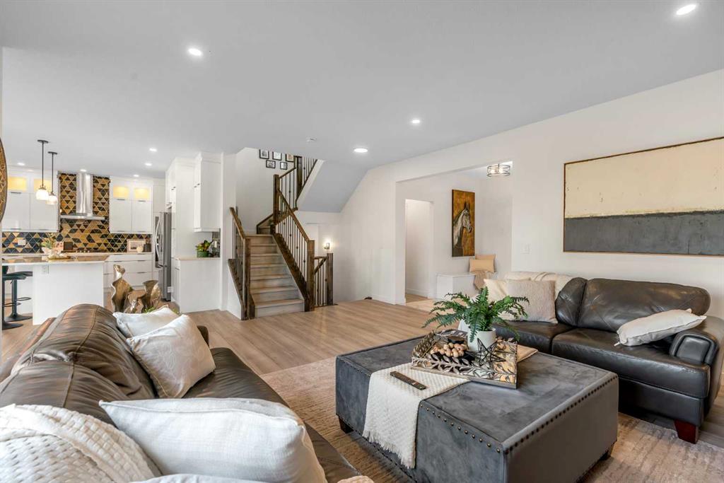 Welcome to this exceptional 6-bedroom, 4-bathroom estate—with a highly desirable main floor bedroom and full bathroom—ideally located on a premium 6,500 sq ft lot with direct access to the serene Bayside canal. Positioned within one of Airdrie’s most sought-after neighborhoods, this home masterfully blends refined elegance, contemporary comfort, and luxury, offering an unparalleled lifestyle of sophistication and tranquility.