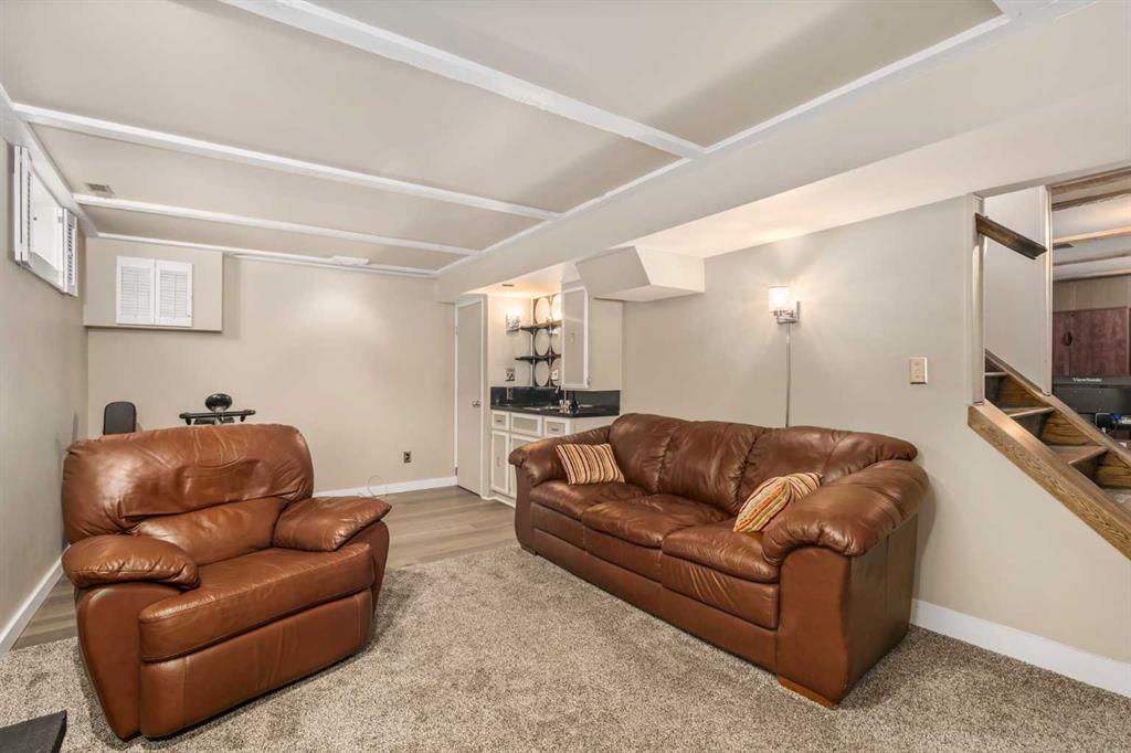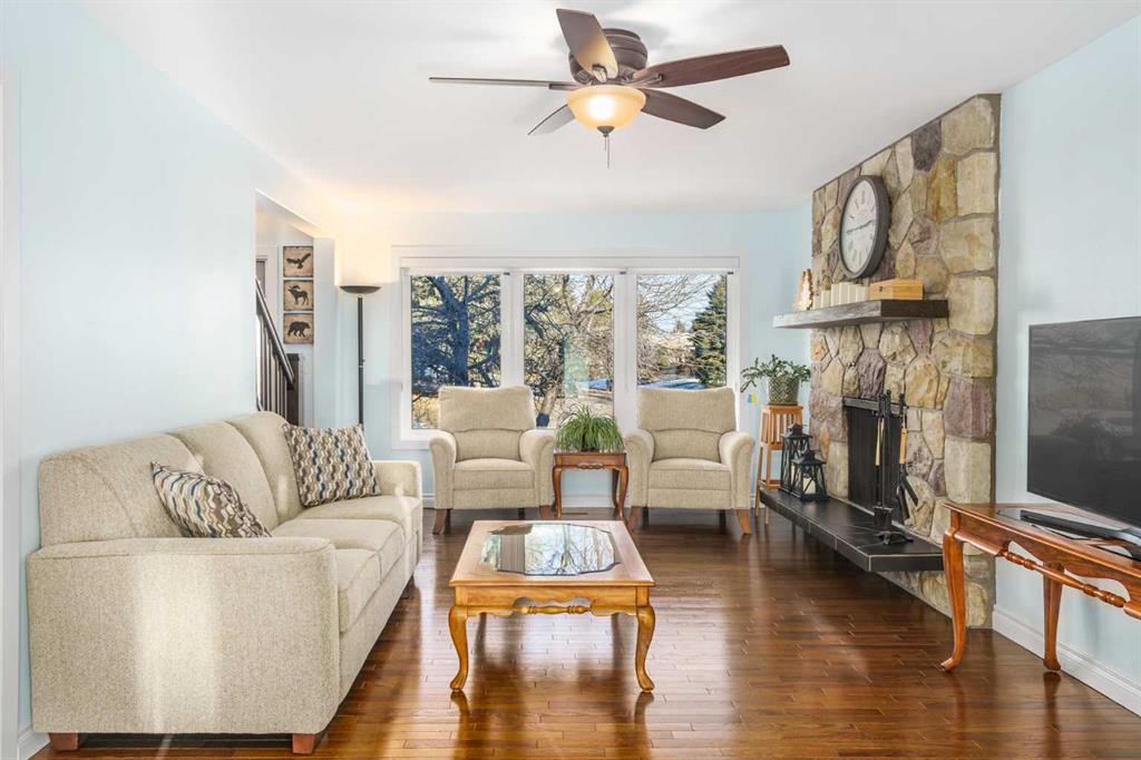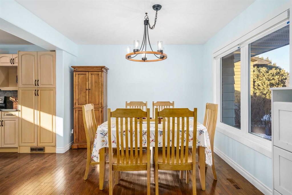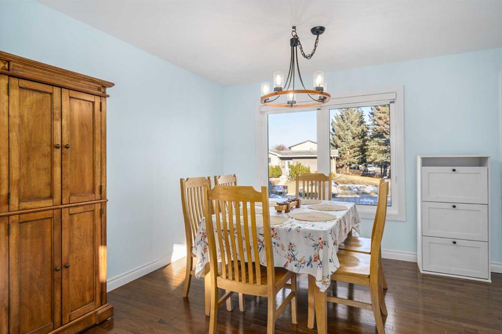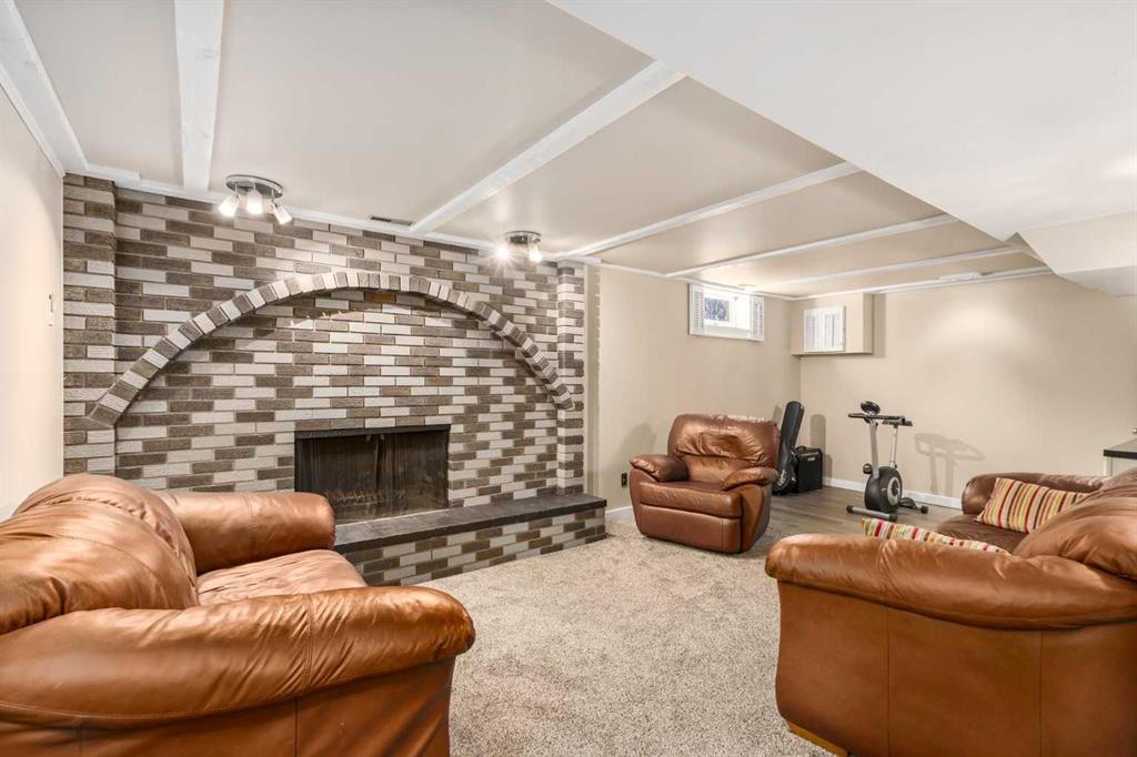 A thoughtfully, well-designed two-storey home with numerous improvements and upgrades is now available in the very desirable SE community of Bonavista Downs. This is a unique home in that it features two garages. The first is a front-facing, single (21’x12’), attached, insulated and heated garage with upgraded wiring, and finished interior which includes shelving. The front rubber-paved driveway offers additional parking. The second is an oversized double (25’ x 28’), heated, detached garage accessed from the paved alley, and has a finished interior which includes shelving, cabinets, and a workbench and is wired for 220 volts. Three bedrooms, 3.5 baths and 2,250 sq. ft. of living space on three levels. Upon entering the tiled foyer, the natural light flowing in from the upgraded triple pane windows on all sides is remarkable. Motorized window blinds allow you to control the light factor. The main floor is comprised of living room, dining room and kitchen and has warm hard wood floors throughout. To the left is the living room with woodburning, stone surround fireplace and enough space to experiment with various furniture configurations. The rear deck is accessed via French doors in the living room. To the right of the foyer is the dining room with ample room for entertainment and is adjacent to the kitchen. Cream cabinetry and plenty of it in the kitchen is a beautiful contrast to the dark granite countertops and tiled backsplash. Gleaming stainless appliances and a pantry add to the efficiency. A 2-pc. bath completes the main level. Moving upstairs, there is a combination of hardwood and laminate flooring. The primary bedroom is large and sunny with the benefit of a newly added walk-through closet and 4-pc. ensuite (double vanity). Two additional bedrooms, both with generous-sized closets, share a 4-pc. bath. The basement has been attractively finished and features a large, carpeted rec room with a second woodburning fireplace (both fireplaces passed WETT inspection in 2023). Across from the rec room is a tiled home office and tucked back of that is the laundry room with upgraded plumbing, venting and wiring; storage area and an upgraded 3-pc. bath. The house, attached garage and detached garage all have well-insulated (R40) attics. In 2023 the furnace was upgraded to a high-efficiency model with smart thermostat, a tankless water heater was installed and the humidifier was replaced. Both front and back yards are landscaped with lawn and mature trees. The back yard is fenced and has sprinklers installed. A bonus is your own hot tub. Well situated and close to Stoney, Deerfoot and Macleod Trails and Anderson Road. Proximity to shops and restaurants on both Macleod Trail and 130th Avenue; the Bow River; numerous schools (public and Catholic); churches; playgrounds; dog parks; Fish Creek Provincial Park and South Health Campus. This home has obviously been well tended as evidenced by the many upgrades and enhancements. Don’t miss out on this outstanding opportunity.