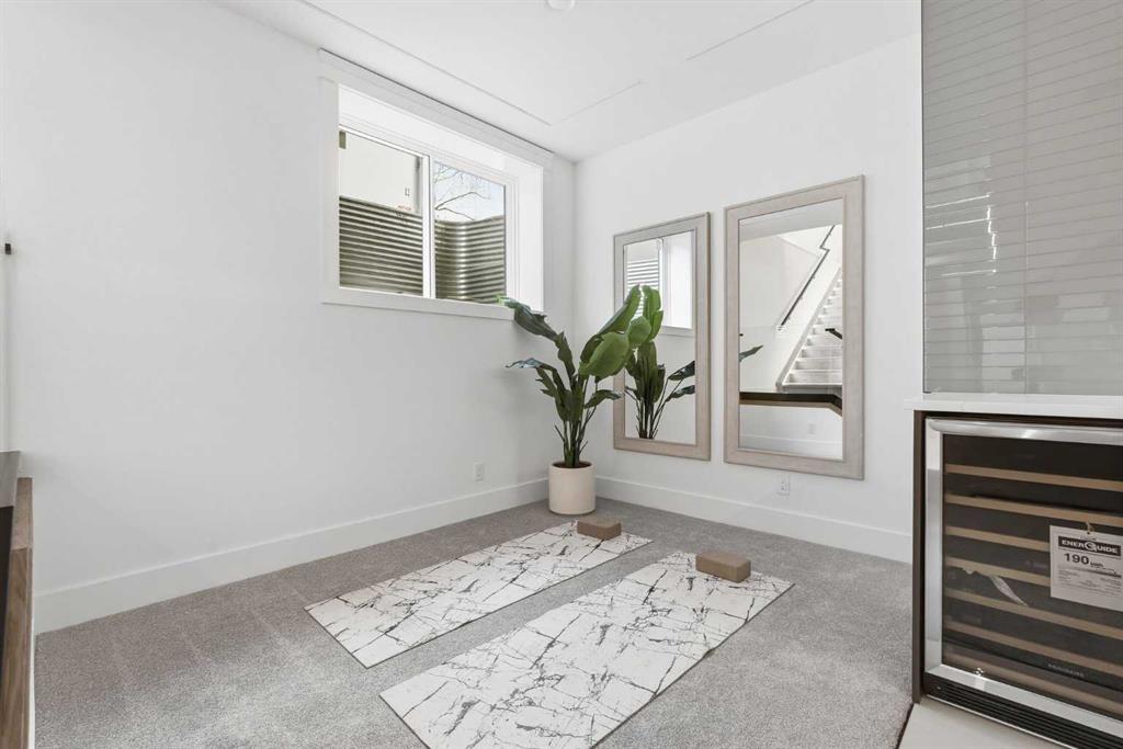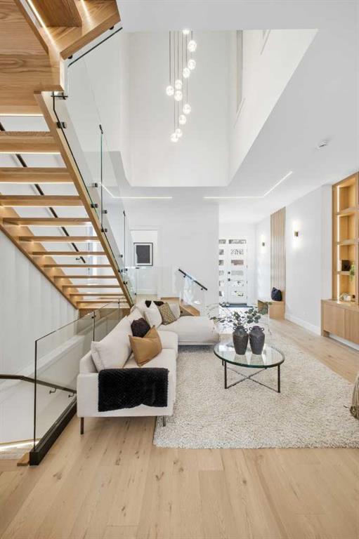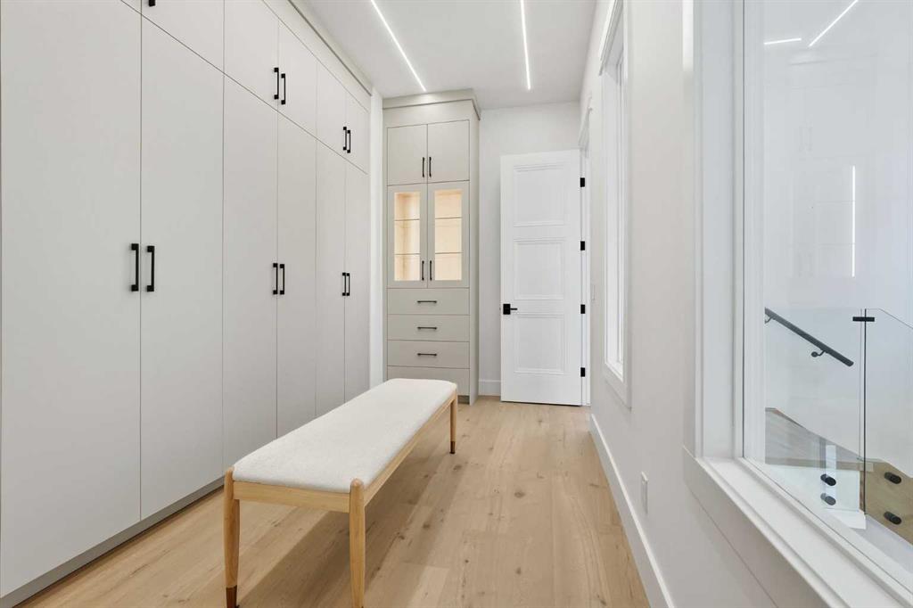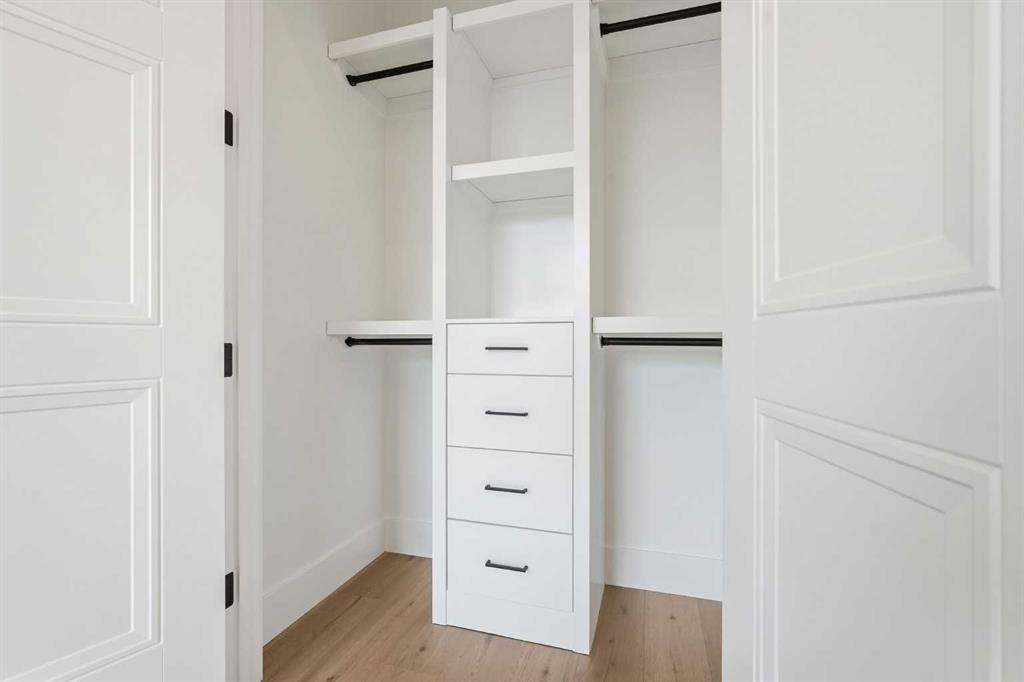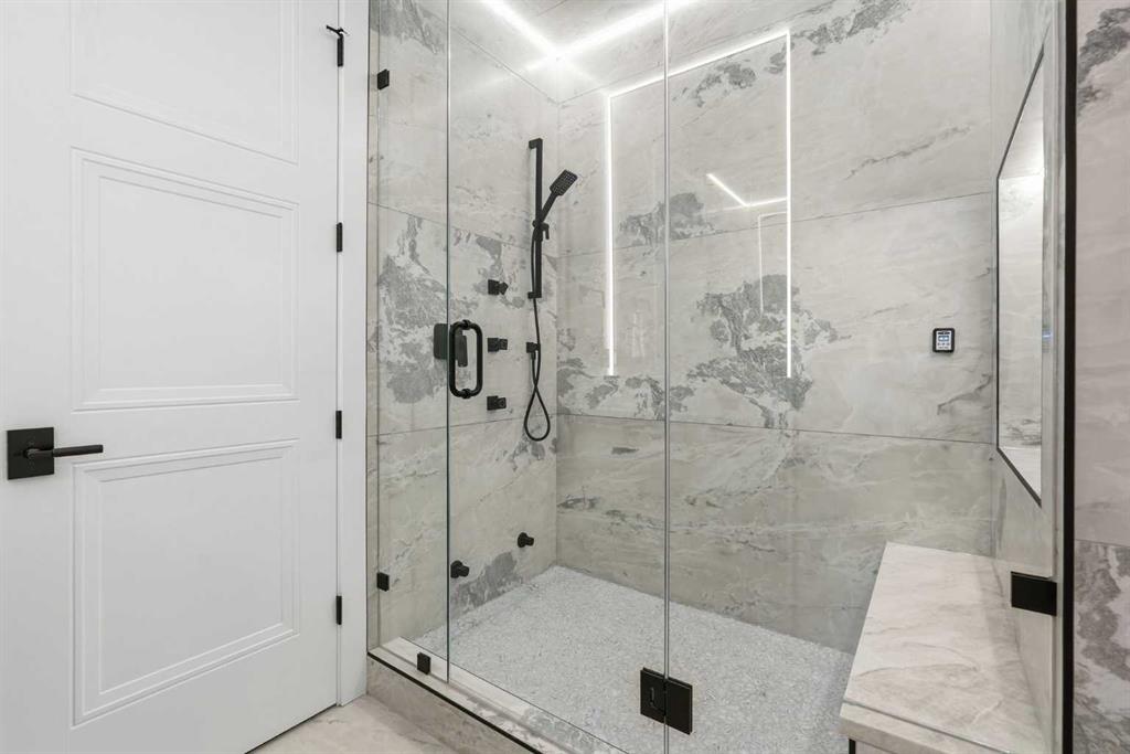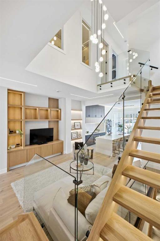 Stunning new home with full Smart Home capability, built by Libra Homes situated on a 27.6’x120’ lot in the heart of North Glenmore Park, offering 3+1 bedrooms & over 3000 sq ft of luxurious living space. The open & airy main level presents wide plank hardwood floors, lofty ceilings & stylish light fixtures, showcasing a spacious living room with built-ins that seamlessly transitions into the unique dual style kitchen that’s perfect for the entertainer & tastefully finished with quartz counter tops, island/eating bar & the convenience of a built-in oven, gas stove with pot filler, rangehood, full sized fridge & a second smaller built-in paneled fridge with 2 drawers, making prep work & cooking for large gatherings effortless. A bright dining area provides ample space to host family & friends. A private office is located just off the foyer, perfect for a home office setup & a 2 piece powder room completes the main level. Ascend the open riser staircase to the second level that hosts 3 bedrooms, a 5 piece main bath & a well-designed laundry room with sink & storage. The primary retreat boasts a to-die-for walk-in closet & opulent 5 piece ensuite with dual sinks, relaxing freestanding soaker tub & oversized glass enclosed shower. Basement development lends itself to game or movie night, featuring a family/media room with built-in entertainment centre, cozy fireplace, built-in speakers & wet bar with plenty of room for a second seating area. A fourth bedroom & 3 piece bath are the finishing touches to the basement. Other notable features, roughed-in A/C, LED lighting throughout, large back deck & double detached garage with enough space to park a larger vehicle. The location is incredibly convenient, close to Glenmore Athletic Park, Lakeview & Earl Grey Golf Clubs, schools, shopping, public transit & effortless access to Glenmore & Crowchild Trails.