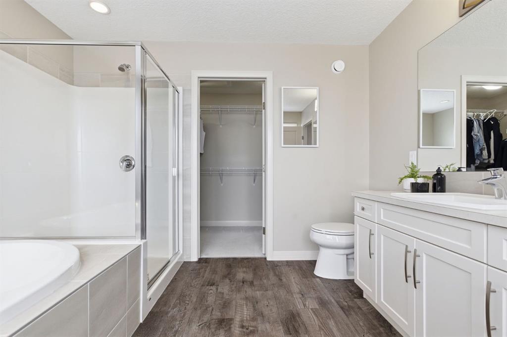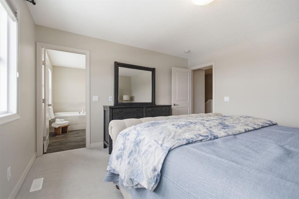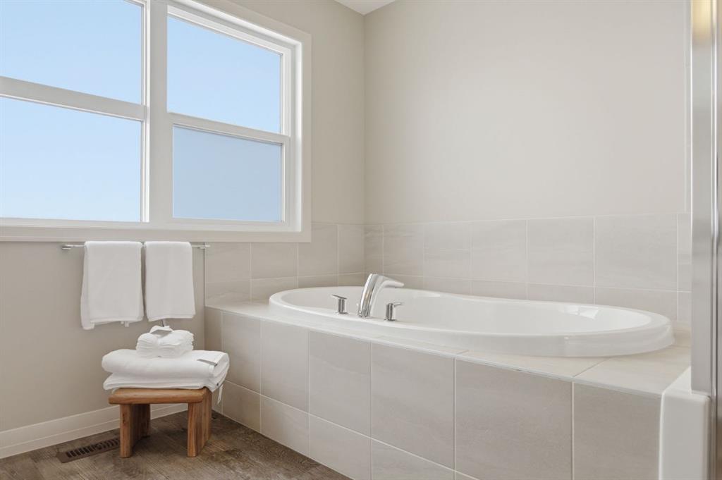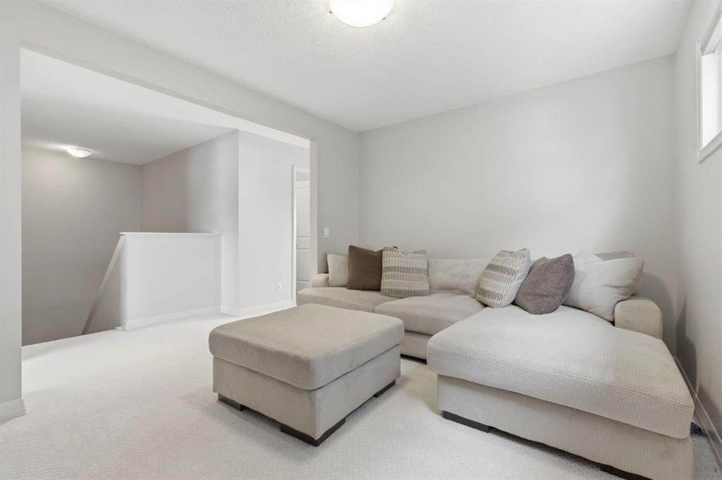 Upstairs, you’ll love the added flexibility of a central bonus/family room, ideal for movie nights, a kids’ play area, or quiet workspace. The upper level also features convenient laundry, two generous secondary bedrooms, and a spacious primary retreat complete with a walk-in closet and a relaxing 4-piece ensuite with a deep soaker tub.