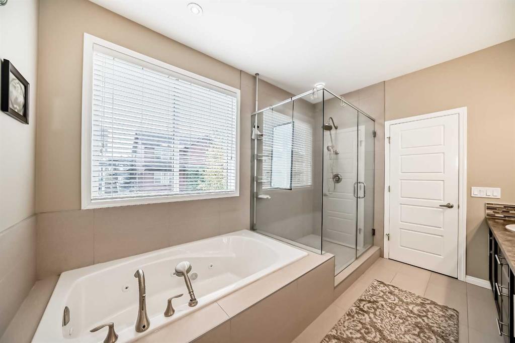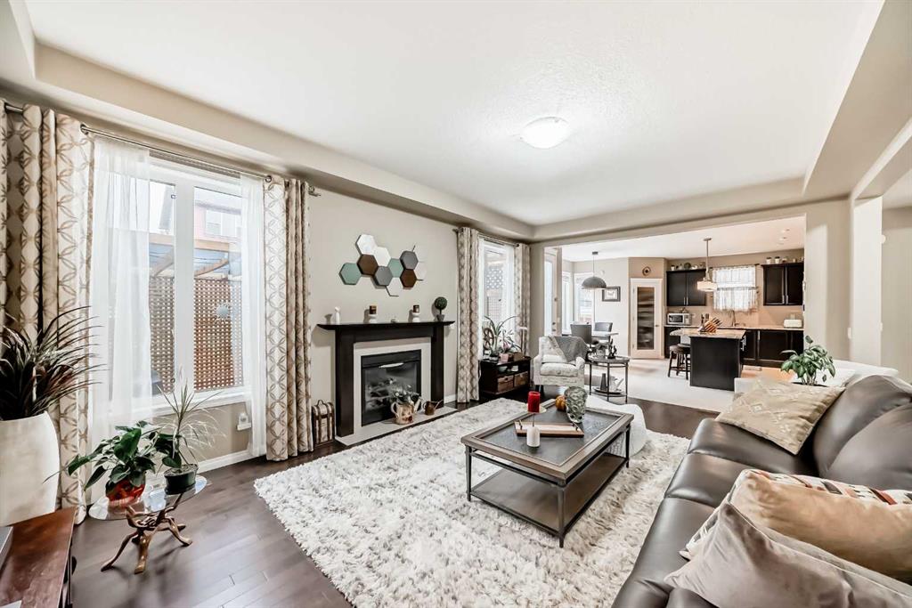 Welcome home to 132 Waterlily Cove – a farmhouse-style oasis built by award-winning Mattamy Homes, where warm family memories await. Nestled on a quiet cul-de-sac in Lakepointe, this home offers more than 2,800 sq ft above grade, head-turning curb appeal with its huge verandah, and an oversized double attached garage. Step through the foyer and you’re greeted by a vaulted ceiling, welcoming you inside. Gorgeous maple hardwood and ceramic tile stretch throughout the main floor, complemented by 9ft ceilings you’ll find on both levels. Need to work from home? There’s a private home office behind frosted double French doors. Want to host dinner parties? A formal dining room with a tray ceiling sets the mood. The heart of the house is the modern kitchen – espresso shaker maple cabinets, marbled granite counters, stainless steel appliances (including induction stove & hood fan), a huge corner pantry, and a big island with extra storage. The adjacent breakfast nook is bright, framed by 6ft windows that bring the outdoors in. Enjoy cozy evenings in the family room, anchored by a ceramic-tiled gas fireplace with a rich dark maple mantle. In summer, the stamped concrete patio with custom pergola beckons for family BBQs or lazy afternoons. Beyond, the yard is beautifully landscaped and well-maintained. Upstairs, you’ll find a massive bonus room – great for movie nights or a kids’ hangout. The primary suite is a retreat, large enough for a king bed, with two walk-in closets! The ensuite includes a soaker tub, glass-encased shower, and a 7ft dual vanity. Two additional generous bedrooms and another full bathroom with double sinks ensure everyone has space. Laundry is also upstairs, with extra storage, and the recently added A/C keeps things comfy year-round. The unfinished basement is a blank canvas waiting for your ideas – there’s space to add another bedroom, rec room, and even a full bathroom. Location is everything. In Lakepointe, you get walking trails, parks, green space, and proximity to Chestermere Lake for boating, paddleboarding, and fishing – plus easy access to shopping, schools, and highways. If you’re looking for a family home that blends style, comfort, and a community outside of the big city – this is it!
