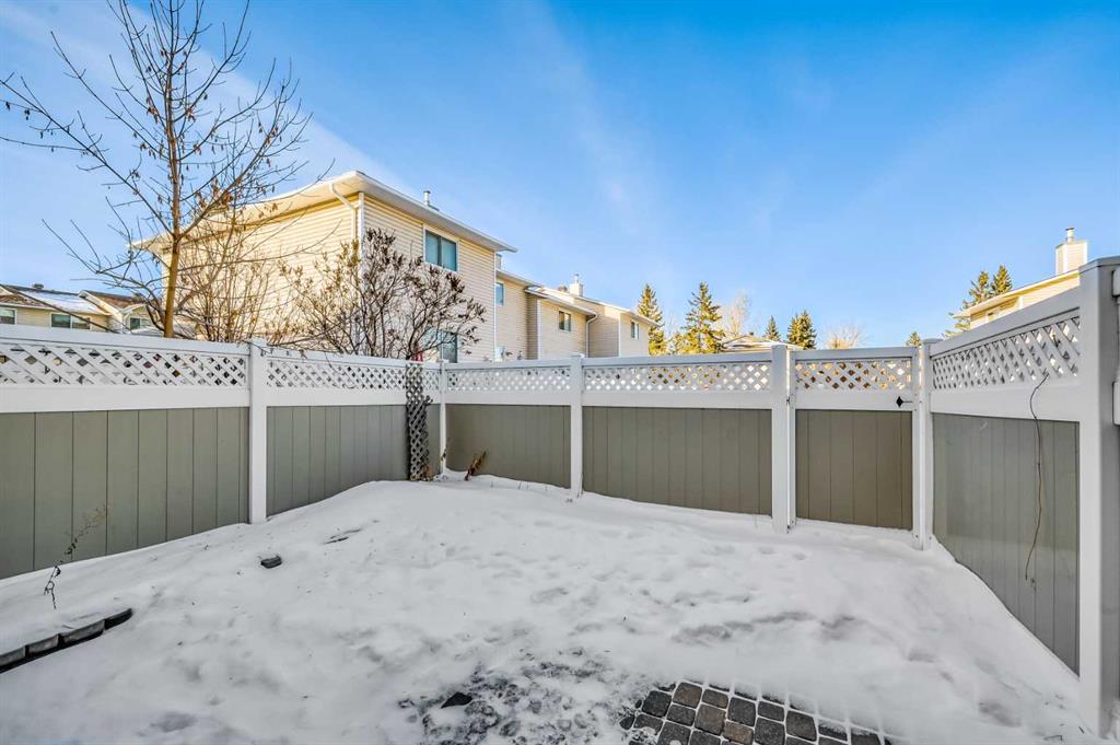 Fantastic value in this super affordable townhome. Many updates in the past few years. This well-maintained complex is accentuated by many trees and is situated in the heart of the mature SW community of Woodbine. Bonus is the fully fenced private rear yard! A rare find in any townhome. The tiled front entry opens to the large living room. Bright and generous eat in kitchen overlooks the rear yard and is adjacent to the spacious dining area. Privately located powder bath located just off the kitchen. Enjoy all the benefits of having your own fenced yard space. 3 bedrooms up include the spacious primary bedroom with built in closet organizers. The fully developed basement offers many flexible uses plus convenient extra storage space. Updates include (2021) New paint and carpeting throughout, tiled front entry, powder bath totally redone including toilet, sink and vanity, new flooring in kitchen and powder bath, new vanity and toilet in upper bath. (2024) All new tile tub surround, and tiled floor, new bath plumbing faucet and bathroom fan replaced. Fantastic location is minutes to the extensive biking and walking paths of Fish Creek Park and Glenmore reservoir. Easy access to Stoney Tr, extensive shopping options, dining, multiple schools and a short hop to the LRT station and Rockyview Hospital. Affordable living in a beautiful setting close to many major amenities.