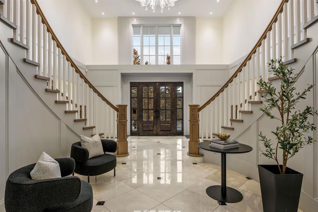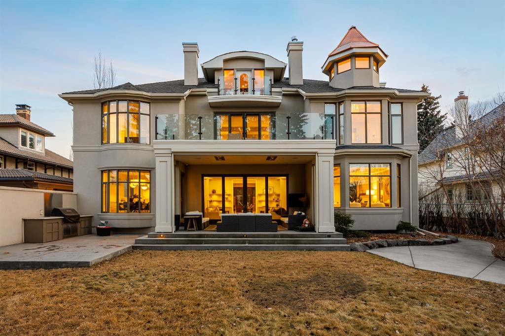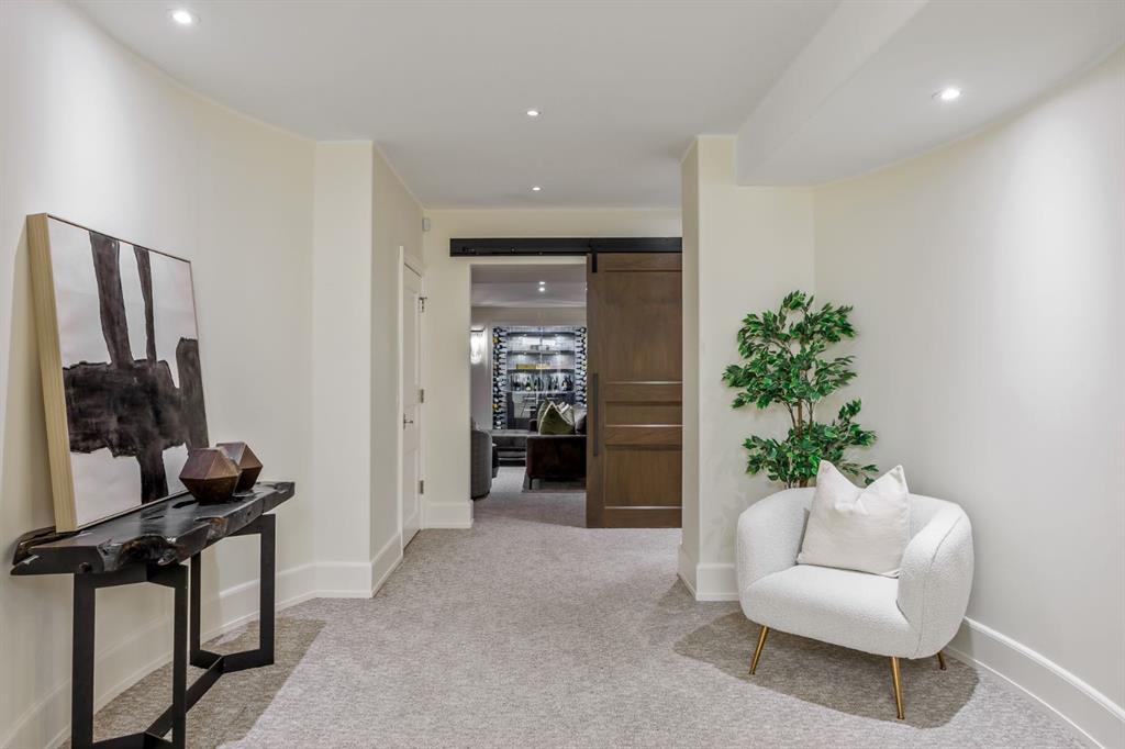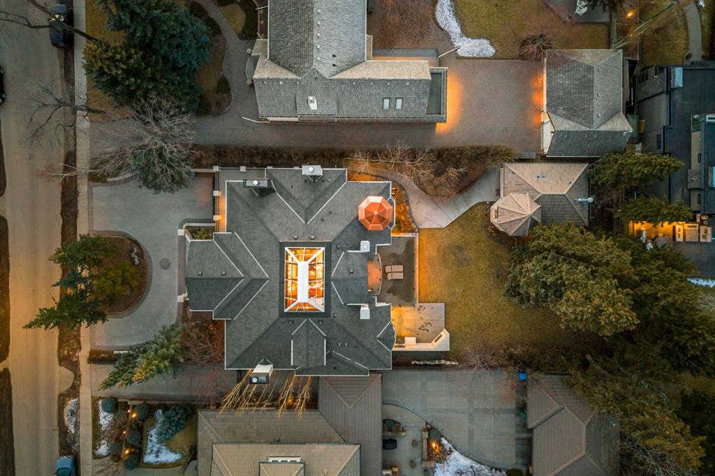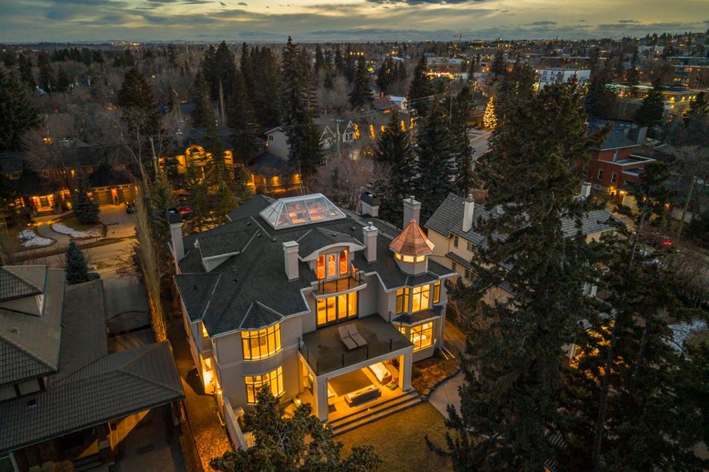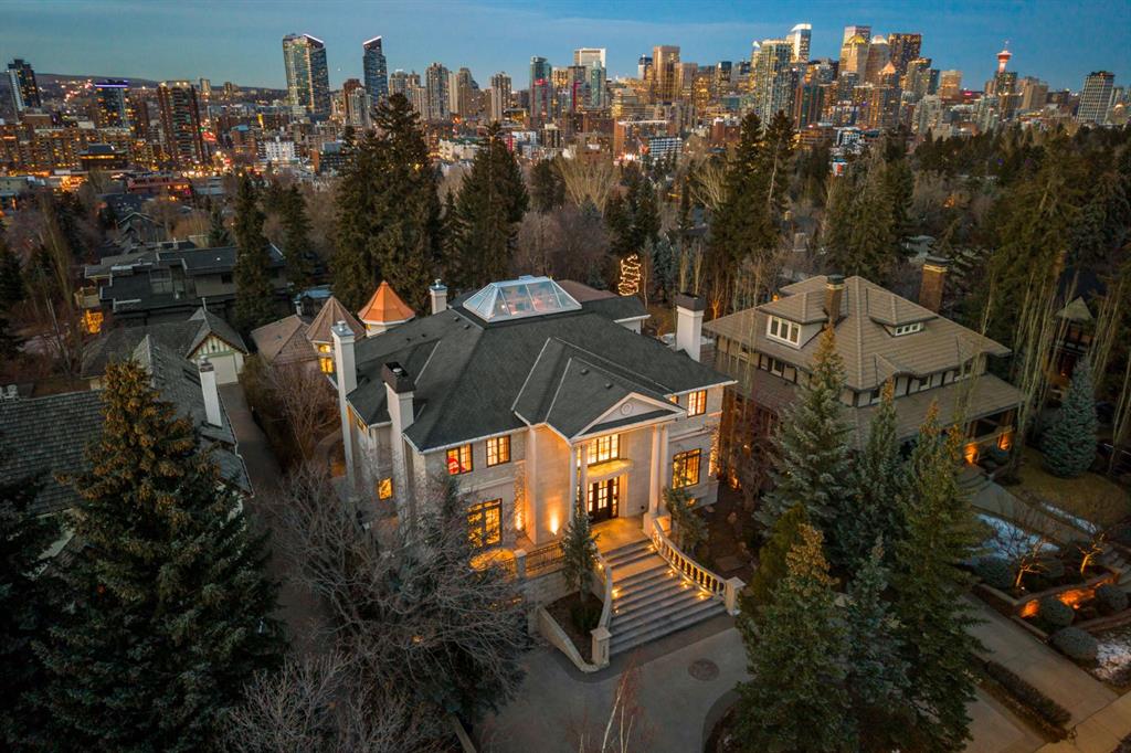 Set on an exceptional 0.31-acre estate lot in the heart of prestigious Upper Mount Royal, this extraordinary 2½-storey luxury residence offers a rare opportunity in one of Calgary’s most coveted neighbourhoods. Completely re-imagined and renovated by award-winning Rockwood Custom Homes in 2018, the property delivers over 8,700 sq. ft. of beautifully developed living space, including close to 6,050 sq. ft. above grade, blending timeless elegance with modern sophistication. The striking stone exterior complements the historic character of the community, while the interior showcases exceptional craftsmanship throughout. A dramatic 19-foot foyer welcomes you with marble floors, a sweeping dual staircase, and a custom Swarovski crystal chandelier. Designed for both refined entertaining and everyday living, the main level features an expansive chef’s kitchen with marble backsplash, premium Sub-Zero, Faber and Dacor appliances, quartz countertops, ample storage, and an oversized leathered granite island. The adjacent great room is highlighted by coffered ceilings and floor-to-ceiling windows and flows seamlessly to a covered outdoor living and kitchen area with a built-in fireplace and grill. Infratech heaters and the addition of retractable screens transform this space into a comfortable three-season space. A formal dining room and private office, both with gas fireplaces, along with a discreet powder room, complete the main floor. Upstairs, the private quarters are anchored by an exceptional primary retreat featuring dual walk-in closets and adjoining yet separate spa-inspired ensuite bathrooms. Two additional bedrooms each include their own four-piece ensuite, along with a dedicated laundry room. The third-floor loft offers flexible space ideal for a home gym or lounge with vaulted ceilings, skylight, and opens up to a balcony with unrivalled downtown city views. The fully developed lower level includes a spacious recreation and media room, guest bedroom with full ensuite, and a glass-enclosed wine room with sink and elegant bottle storage. The generous sized mudroom with additional Sub-Zero refrigerator and freezer adds everyday convenience and function. An oversized heated four-car garage connects via a heated underground tunnel to a private, standalone spa pavilion featuring almost 500 sq. ft. of wellness space with dry sauna, steam shower, powder room and additional space for a cold plunge or hot tub —an exceptionally rare amenity that can be accessed without ever stepping a foot outside. Professionally landscaped grounds include mature trees, extensive irrigation, stone detailing, and a large south-facing backyard with a charming treehouse. Additional features include ELAN smart-home integration, built-in speakers, state-of-the-art security, a heated driveway with upgraded grating system, and proximity to The Glencoe Club, top schools, parks, downtown, and the shops and dining of 17th Avenue S.W.