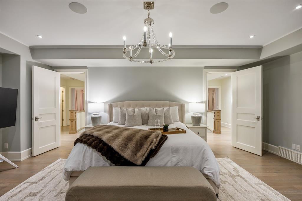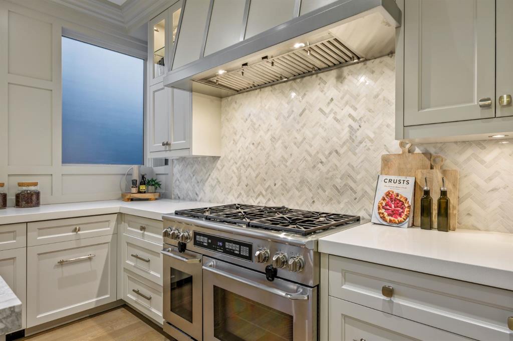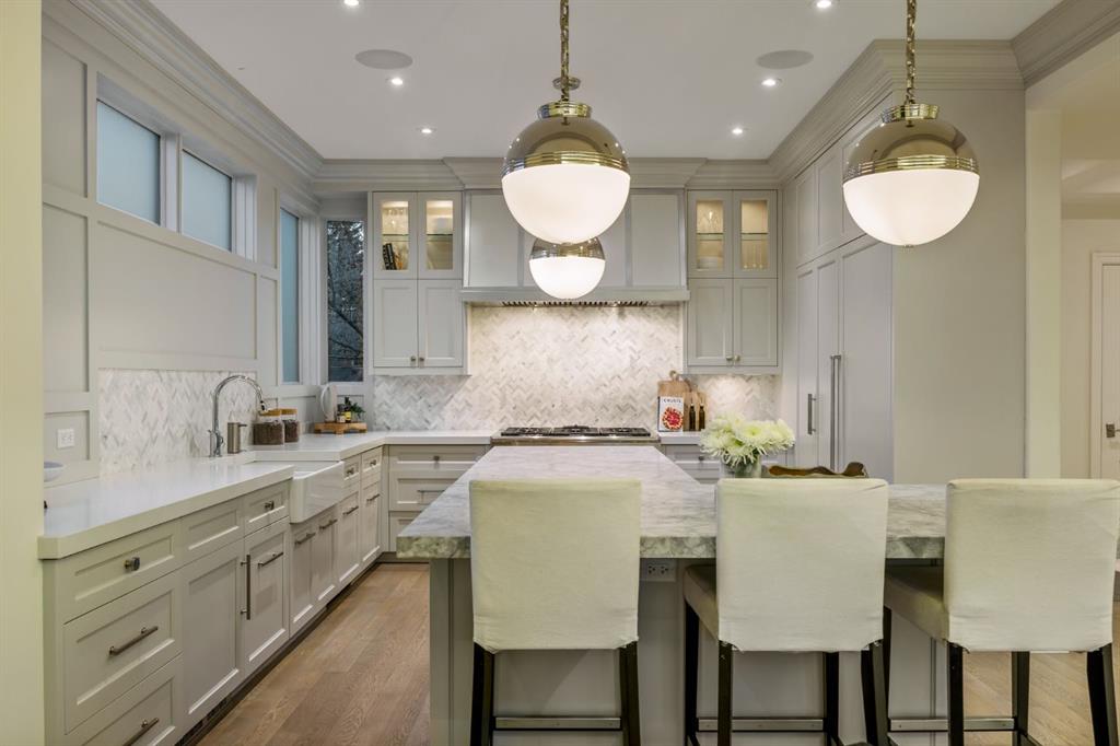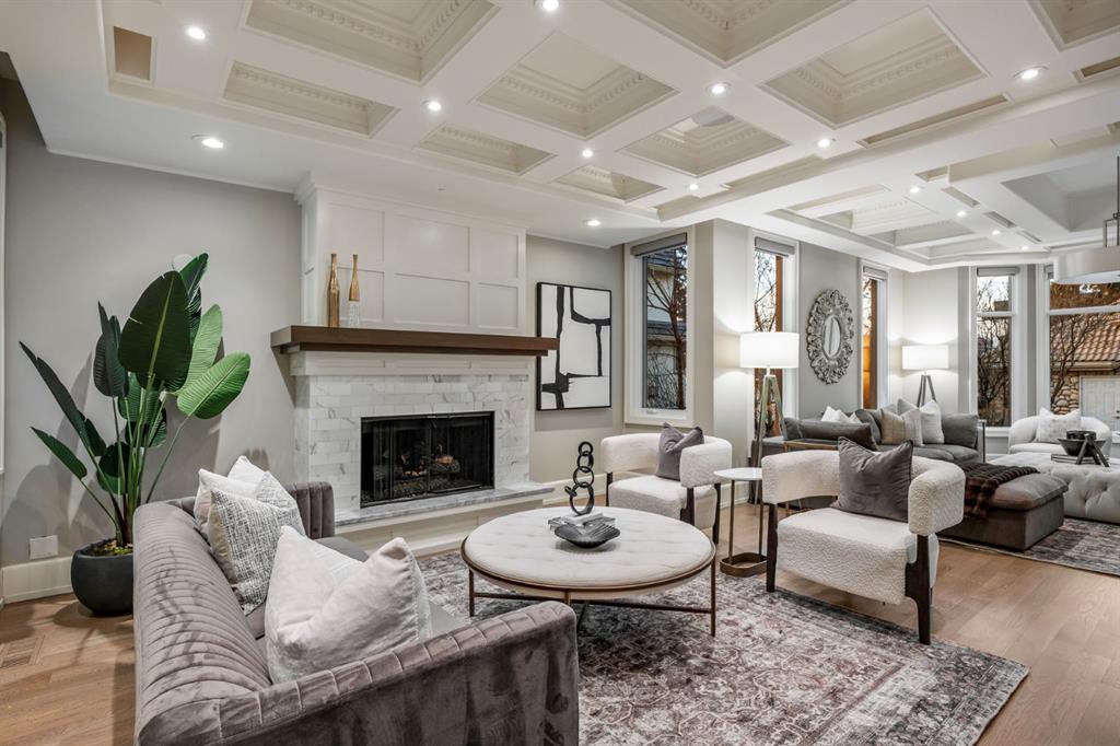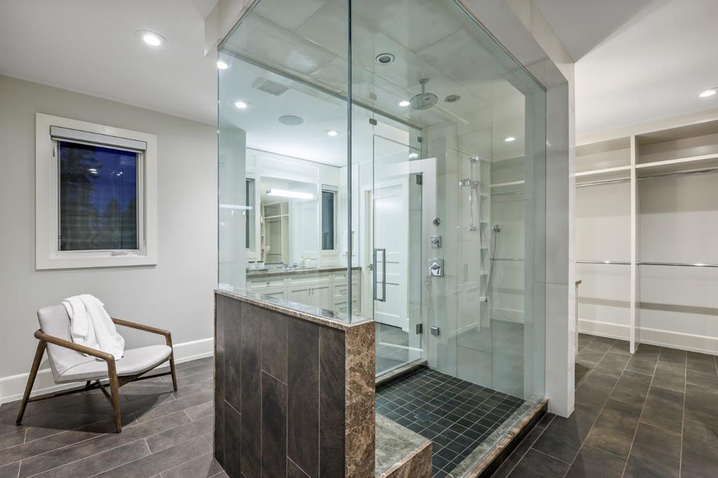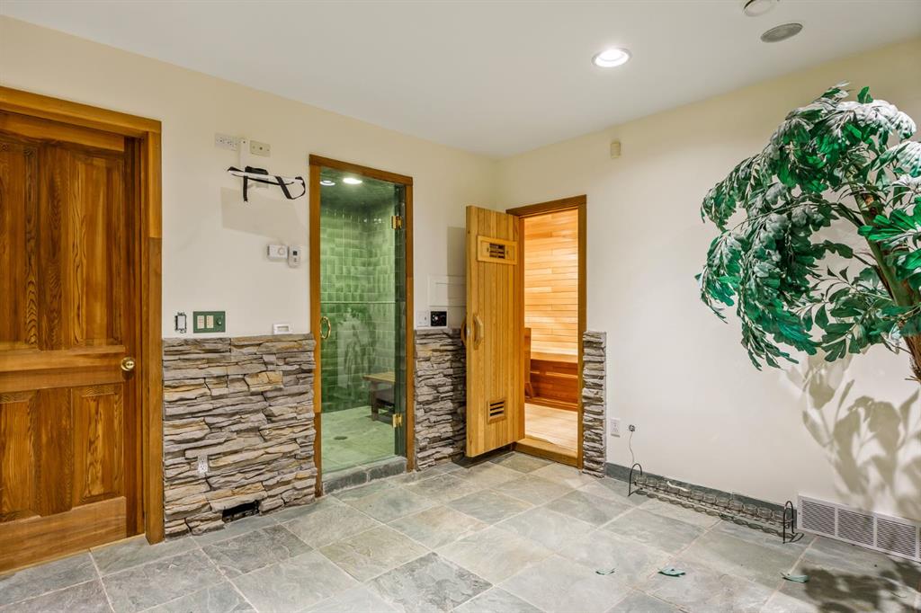 Set on an exceptional 0.31-acre estate lot in the heart of prestigious Upper Mount Royal, this extraordinary 2½-storey luxury residence offers a rare opportunity in one of Calgary’s most coveted neighbourhoods. Completely re-imagined and renovated by award-winning Rockwood Custom Homes in 2018, the property delivers over 8,700 sq. ft. of beautifully developed living space, including close to 6,050 sq. ft. above grade, blending timeless elegance with modern sophistication. The striking stone exterior complements the historic character of the community, while the interior showcases exceptional craftsmanship throughout. A dramatic 19-foot foyer welcomes you with marble floors, a sweeping dual staircase, and a custom Swarovski crystal chandelier. Designed for both refined entertaining and everyday living, the main level features an expansive chef’s kitchen with marble backsplash, premium Sub-Zero, Faber and Dacor appliances, quartz countertops, ample storage, and an oversized leathered granite island. The adjacent great room is highlighted by coffered ceilings and floor-to-ceiling windows and flows seamlessly to a covered outdoor living and kitchen area with a built-in fireplace and grill. Infratech heaters and the addition of retractable screens transform this space into a comfortable three-season space. A formal dining room and private office, both with gas fireplaces, along with a discreet powder room, complete the main floor. Upstairs, the private quarters are anchored by an exceptional primary retreat featuring dual walk-in closets and adjoining yet separate spa-inspired ensuite bathrooms. Two additional bedrooms each include their own four-piece ensuite, along with a dedicated laundry room. The third-floor loft offers flexible space ideal for a home gym or lounge with vaulted ceilings, skylight, and opens up to a balcony with unrivalled downtown city views. The fully developed lower level includes a spacious recreation and media room, guest bedroom with full ensuite, and a glass-enclosed wine room with sink and elegant bottle storage. The generous sized mudroom with additional Sub-Zero refrigerator and freezer adds everyday convenience and function. An oversized heated four-car garage connects via a heated underground tunnel to a private, standalone spa pavilion featuring almost 500 sq. ft. of wellness space with dry sauna, steam shower, powder room and additional space for a cold plunge or hot tub —an exceptionally rare amenity that can be accessed without ever stepping a foot outside. Professionally landscaped grounds include mature trees, extensive irrigation, stone detailing, and a large south-facing backyard with a charming treehouse. Additional features include ELAN smart-home integration, built-in speakers, state-of-the-art security, a heated driveway with upgraded grating system, and proximity to The Glencoe Club, top schools, parks, downtown, and the shops and dining of 17th Avenue S.W.
