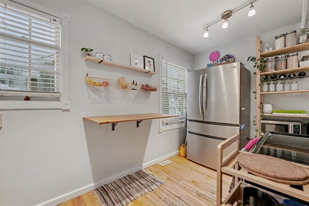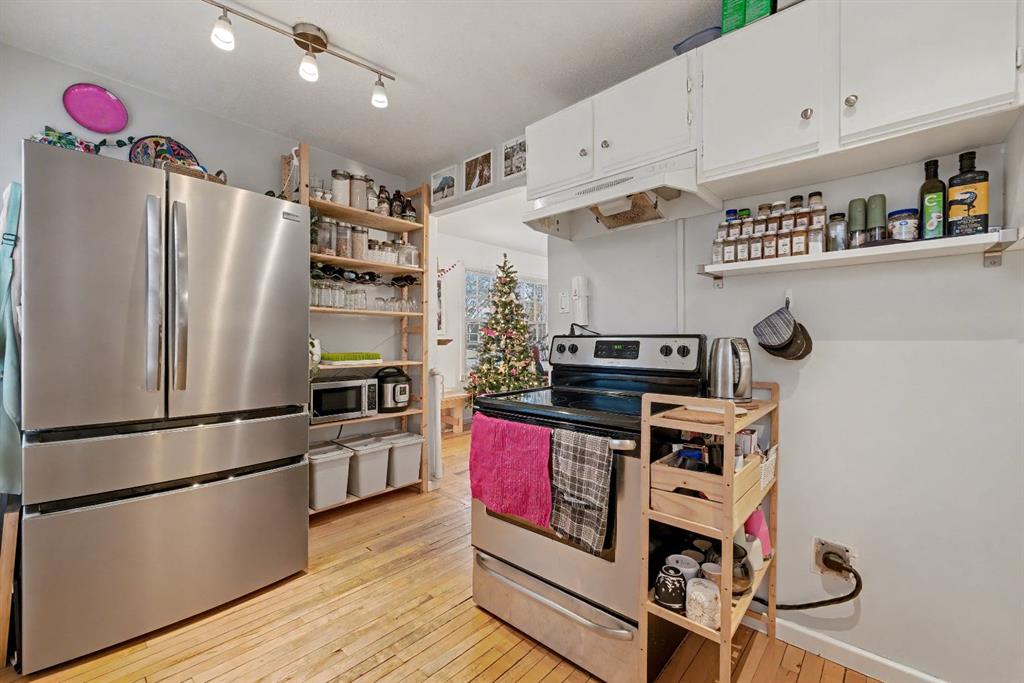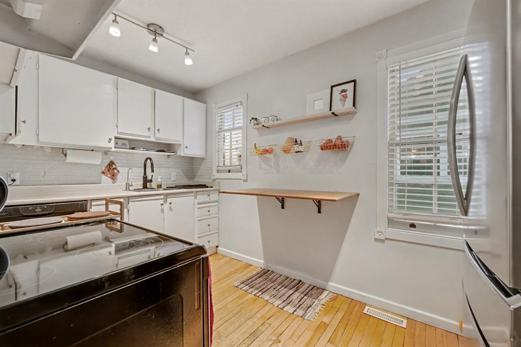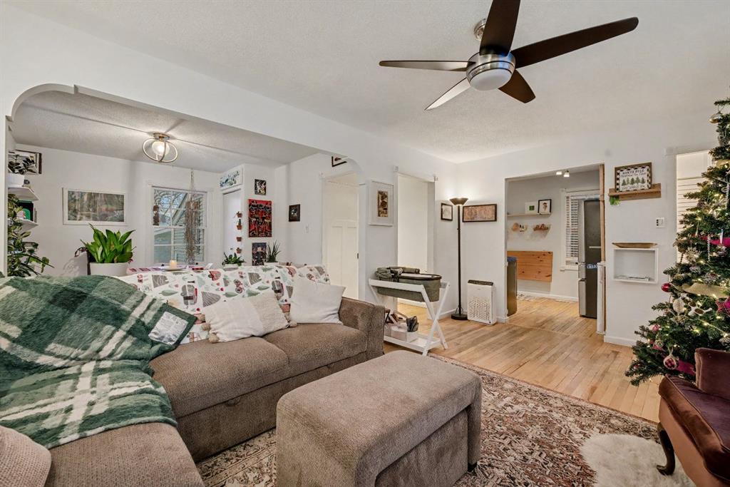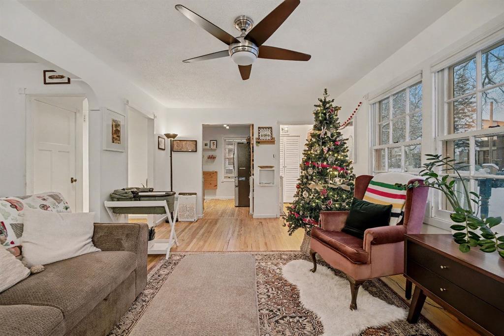 Charming character home in a great Capitol Hill location. This well-loved one-and-a-half-storey sits on a generous 4,800 sq. ft. lot and offers a bright main floor with a comfortable living room and dining area surrounded by windows. The kitchen on the opposite side is compact, functional, and has everything you need. A full four-piece bathroom is conveniently located at the bottom of the stairs. Upstairs are two bedrooms that can easily double as an office or hobby room. At the back of the home, an oversized mudroom and laundry area open to a large, south-facing backyard. The 4,800 sq. ft. lot provides plenty of outdoor space, with a double detached garage and still room left for a yard or garden. Confederation Park is only four blocks to the north, and SAIT and North Hill Mall are close by to the south. Plus, you’re just 10 minutes from downtown and about 15 minutes from the airport—an ideal location for convenience and easy commuting.