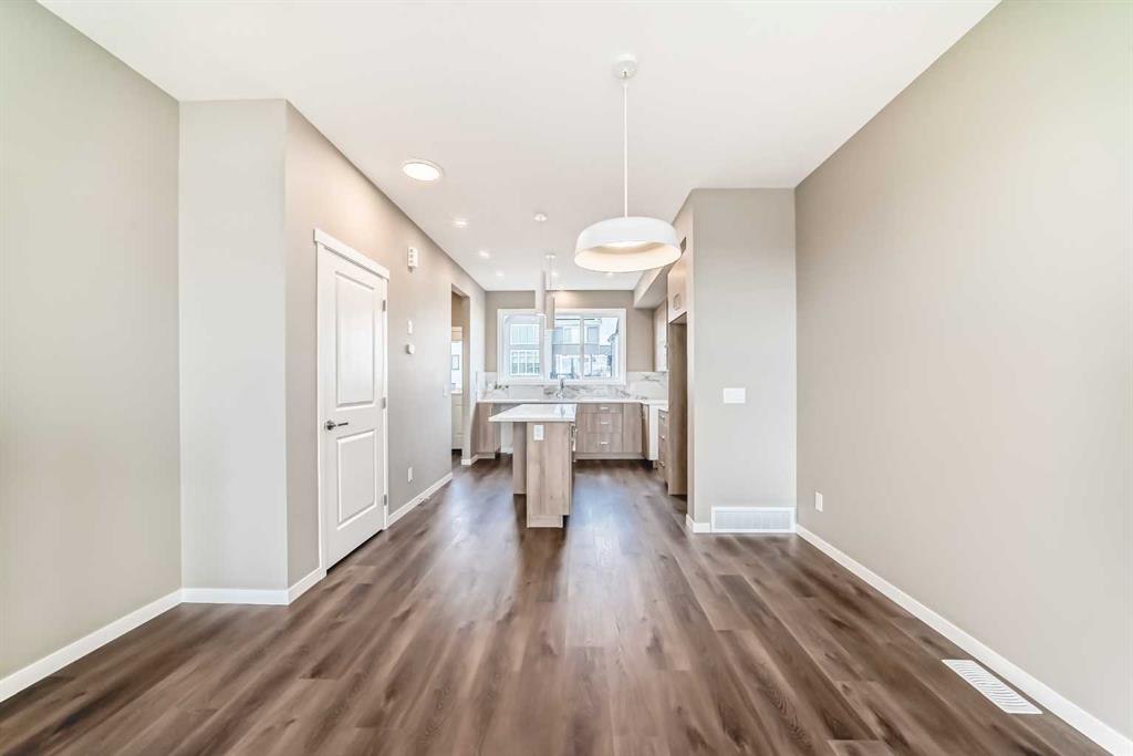 Welcome to the Zane by Hopewell Residential, a thoughtfully designed home that has become a favourite for its open-concept layout, functional use of space, and flexible bedroom design. Offering 1,260 sq. ft. of well-planned living space, this home blends comfort, style, and practicality in a way that suits both everyday life and special moments with family and friends. The main floor feels bright, warm, and welcoming, with an open-concept design that creates an easy sense of flow from one space to the next. At the front of the home, the lifestyle room offers a comfortable place to unwind or gather, while the central dining area helps connect the layout beautifully. At the rear, the kitchen serves as the heart of the home, featuring light wood grain cabinetry, generous storage, ample prep space, and a stylish backsplash with warm brown veining that adds softness and character to the space. The result is a kitchen that feels both modern and inviting — equally well suited to busy weekday routines and relaxed evenings of entertaining. A rear entry, added storage, and a discreetly placed 2-piece bathroom complete the main level with everyday functionality in mind. Upstairs, the thoughtful layout continues with a private primary bedroom at the front of the home, complete with a walk-in closet and its own 4-piece ensuite. Two additional bedrooms are positioned at the back, offering flexibility for children, guests, a home office, or creative space. A full 4-piece main bath rounds out the upper level and reinforces the home’s smart, balanced design. Downstairs, the basement adds long-term versatility with a separate entrance and 9’ foundation height, creating exciting possibilities for the future, whether that means additional living space, room for extended family, or potential for a future basement suite(subject to approval and permitting by the city/municipality). Located in the award-winning lake community of Mahogany, this home offers more than just beautiful interior living, it offers an exceptional lifestyle. Residents enjoy access to Calgary’s largest freshwater lake, two private beaches, the residents-only Beach Club, parks, playgrounds, scenic wetlands, and more than 22 kilometres of pathways. From sunny summer days spent at the beach or on the water to winter afternoons skating and enjoying the outdoors, Mahogany is a community designed around connection, recreation, and year-round enjoyment. Everyday convenience is close at hand as well, with shops, restaurants, cafés, groceries, and services nearby at Mahogany Village Market and Mahogany Village Commons, all helping make this one of Calgary’s most sought-after places to call home.