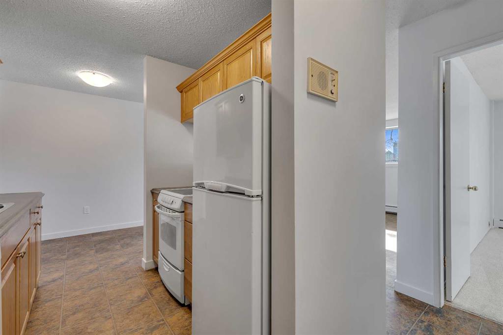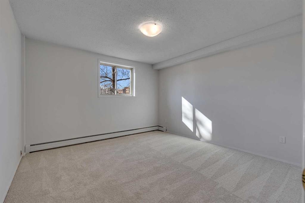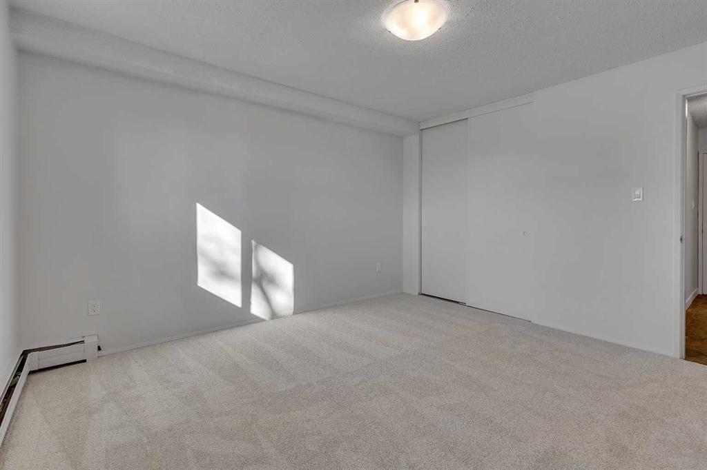 Welcome to this bright and well-maintained starter apartment or investment opportunity ideally located in the desirable community of Hillhurst, just steps from the vibrant heart of Kensington. Enjoy incredible access to some of Calgary’s best amenities including boutique shops, restaurants, cafés, the CTrain, SAIT, the Jubilee Auditorium, Riley Park, and a quick commute to downtown, with the University of Calgary only about 10 minutes away. Large south-facing windows fill the home with natural light and showcase an impressive downtown view, creating a warm and inviting atmosphere throughout. The spacious bedroom offers a generous closet and the unit also features additional in-suite storage for added convenience. Notable improvements include fresh paint throughout, carpet, light fixtures/receptacles, and dishwasher(2025). Laundry is conveniently located just steps down the hall, and the unit includes an assigned parking stall. Situated in a concrete quiet +18 building within a well-managed complex, this home is ideal for first-time buyers, young professionals, or investors looking to enter the rental market and secure exceptional value in a prime inner-city location.