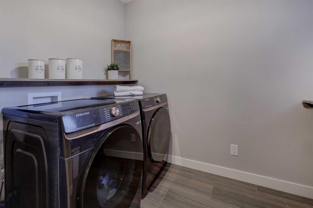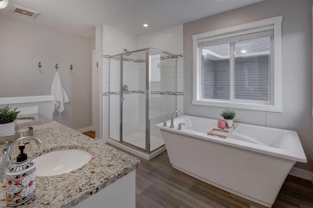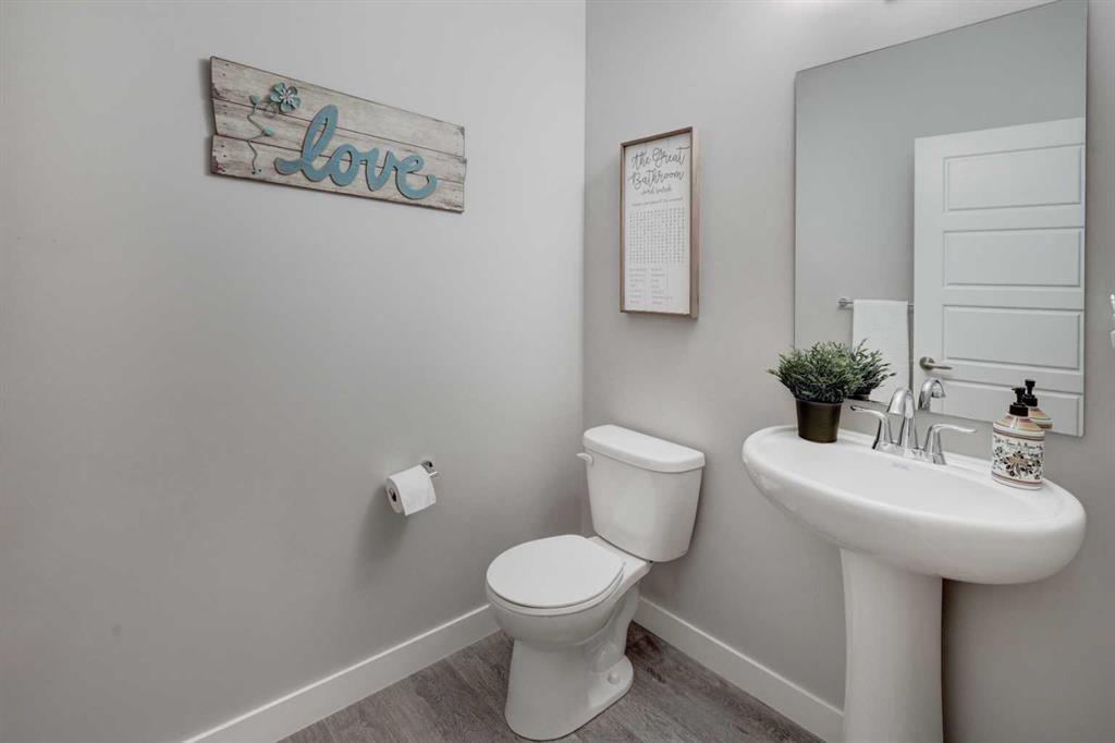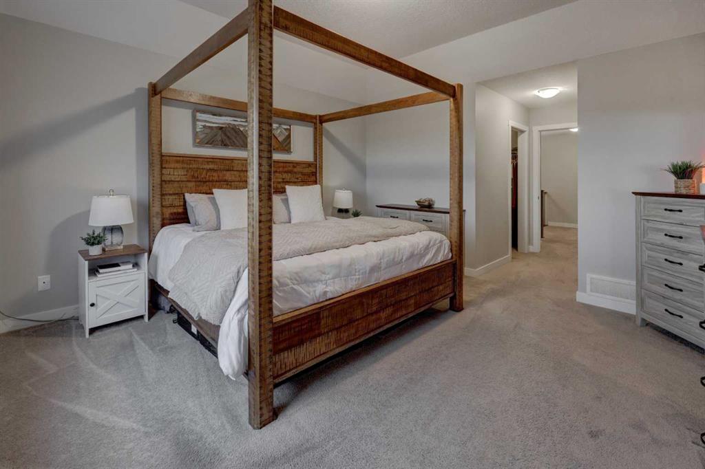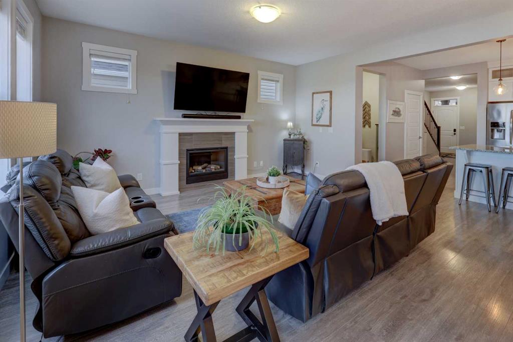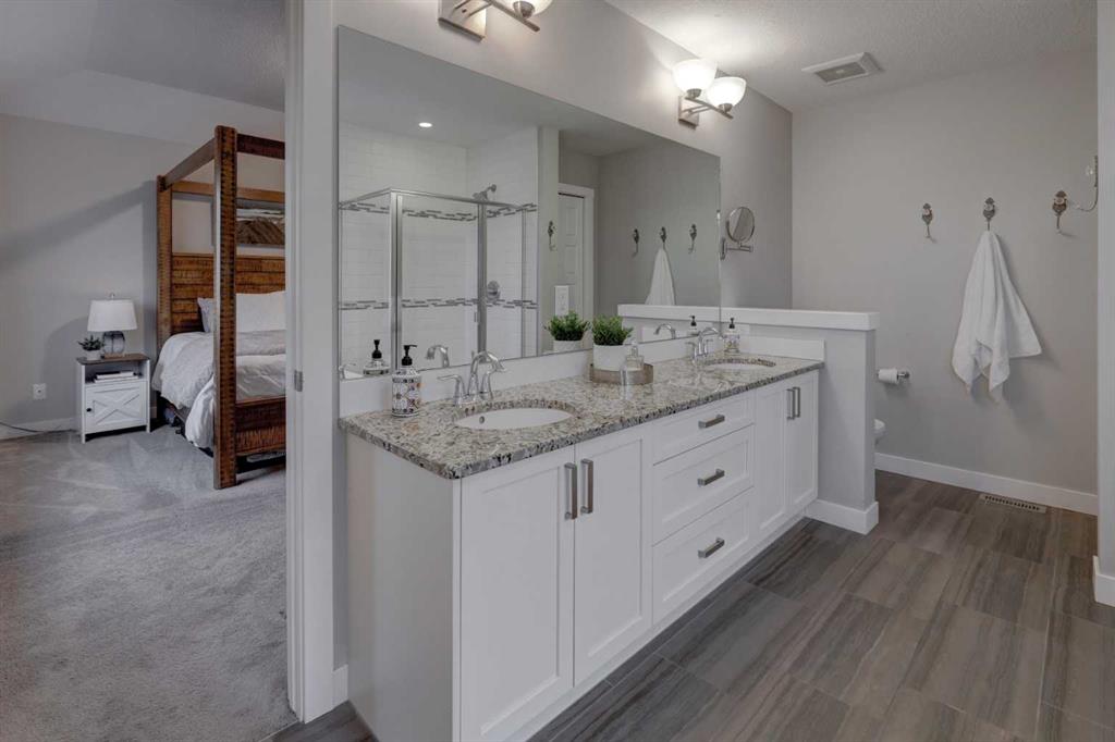 Stunning 4-Bedroom home with ALL the bells and whistles, backing onto a serene environmental reserve and creek, on a quiet street in Williamstown. From the moment you arrive, you’ll appreciate the low-maintenance front driveway and gravel yard accented with mature tree, plus the convenience of a double attached oversized garage. Step inside to an open foyer featuring durable laminate flooring, 9′ ceilings, and an organized front closet with built-in storage for coats and shoes. The heart of the home is the grand and elegant Kitchen, showcasing floor-to-ceiling white cabinetry with glass upper display cabinets, granite countertops, tiled backsplash, SS appliances, and a large eat-up island with sink—perfect for gathering and entertaining. A highly desirable double walk-through Pantry with built-in shelving connects seamlessly to the Mudroom, which is complete with built-in storage, a bench, and hooks. The main floor also features recessed lighting, and expansive windows that flood the space with natural light. The spacious Dining area easily accommodates a large table, while the inviting Living Room is anchored by a cozy gas fireplace with mantel. Step outside from the Dining Room onto the large back deck with glass railings, offering unobstructed views of the north-facing creek and nature reserve with NO neighbors behind for total privacy. Completing the main level is a charming Office Nook with its own window and a 2-pc bathroom with a pedestal sink. Up the elegant spindled stairs, you’ll find a massive Bonus Room with vaulted ceilings, perfect for movie nights or a kids’ retreat. The inviting Primary bedroom features a tray ceiling, an oversized window with a bench seat, breathtaking views and a massive walk-in closet! The luxurious 5-pc ensuite offers a standalone soaker tub beneath a window, dual vanities with granite countertops, and an oversized tiled walk-in shower. THREE additional bedrooms—each with their own closet—share an easily accessible 5-pc bathroom with dual vanities, granite counters, and ample storage. Finishing off the upper level is the convenient Laundry Room with tiled floors, shelving, and a linen closet. Downstairs hosts a partially finished basement, ready for your finishing touches. It already features Family room/Gym area, Rec Room space, and an abundance of storage. You can stay cool with the central air conditioning or enjoy the fabulous outdoor space this home offers. The fully fenced backyard comes with a stamped concrete pad, under-deck storage, and low-maintenance landscaping—the perfect place to soak in sunshine and serene views. Even the location is 10/10—ideally located close to schools, parks, walking paths, shopping, and amenities, with easy access for commuting. This home offers the perfect blend of space, style, and setting in one of Airdrie’s most family-friendly communities. Book your private viewing TODAY!