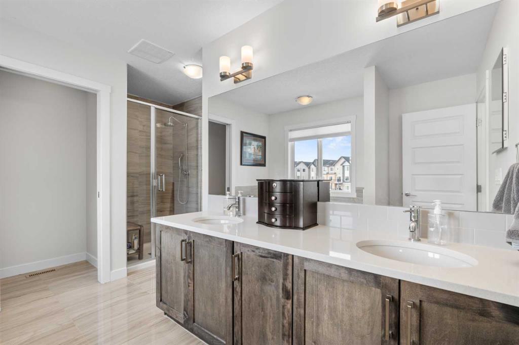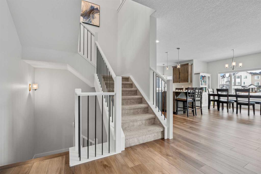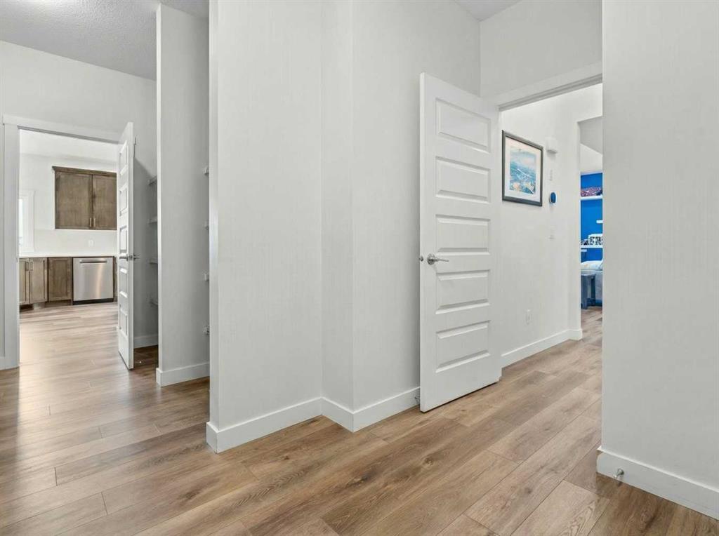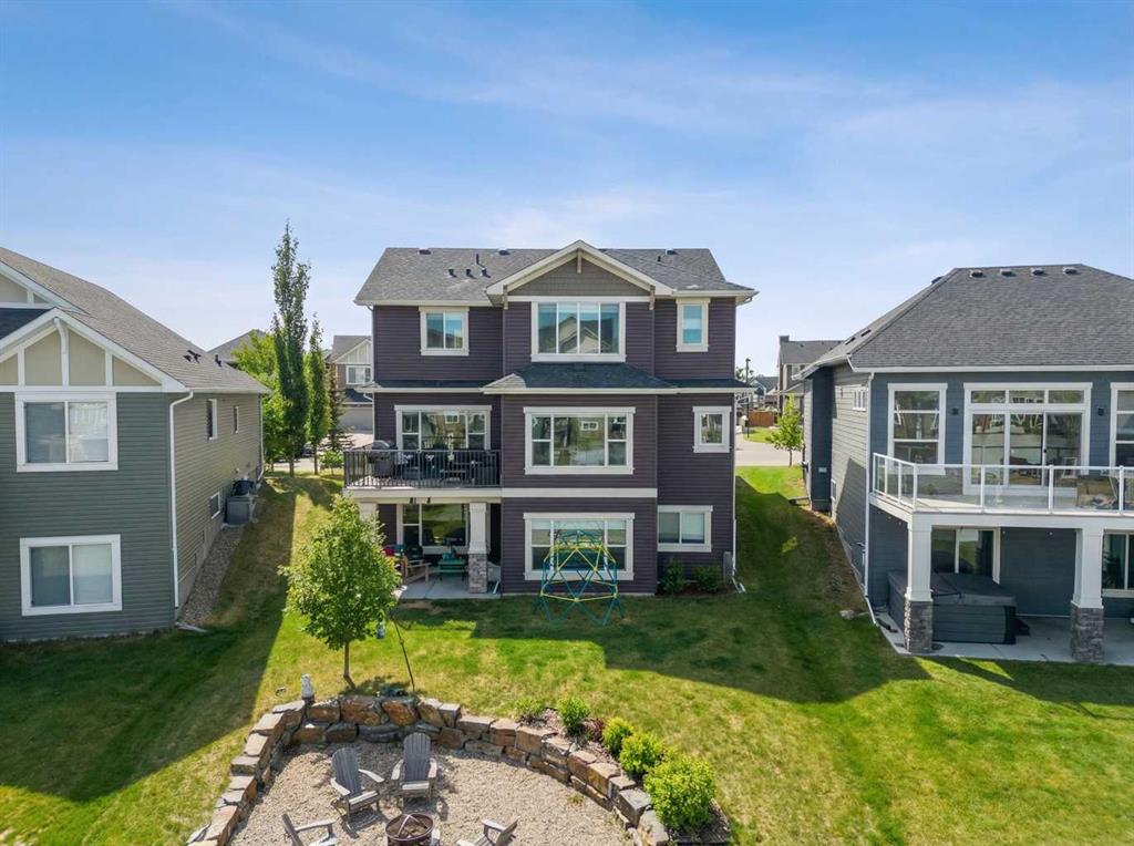 It’s a lifestyle in Bayside! Where childhood memories are made on the water in one of Alberta’s fastest-growing cities. This 3 bedroom, 2.5 bathroom home backs directly onto the canal, creating the perfect setting for families. Imagine the kids paddle boarding and splashing all summer, then lacing up their skates with friends in the winter all just, steps from your backyard. The 9 ft ceilings on the main level enhance the sense of space and natural light, complementing the bright, open kitchen designed for the entertainer and home chef. Complete with a walk-through pantry and functional mud room for extra storage and organization, this layout is perfect for busy family life. Upper-floor laundry, generous bedrooms, and comfortable living spaces add to the home’s thoughtful design. Energy-efficient solar panels and an HRV system provide year round comfort and savings. The unspoiled walk-out basement offers matching 9-foot ceilings, a separate entrance, and rough-in plumbing, ready for your custom design, whether for extended family living, a future income generator, or additional recreation space. Fully landscaped with smart underground sprinkler system. Just minutes to schools, shopping, and a short commute into Calgary, this home blends waterfront living with everyday convenience and long-term potential.