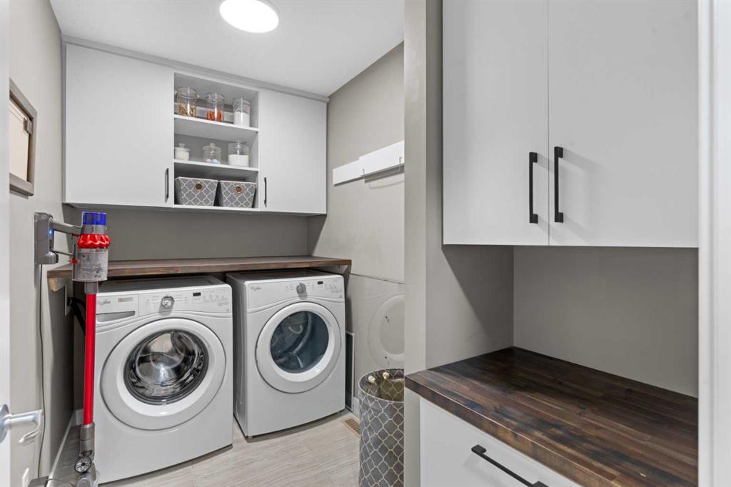 Upstairs, the home opens into a massive family room that is ideal for gatherings or relaxing. Four generously sized bedrooms provide ample space, while the thoughtfully designed laundry room includes custom counters and cabinetry. The primary suite is a true retreat, featuring a spa-like ensuite with double vanity, a mirror extended to the ceiling, a stand-up shower, a relaxing soaker tub, and a large walk-in closet with custom cabinetry. The additional three bedrooms are bright, comfortable, and offer excellent closet space.