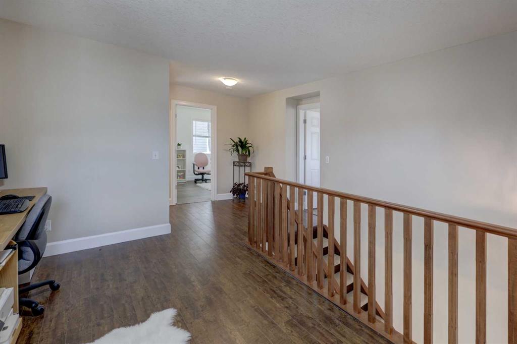 Welcome to this wonderful FAMILY home being offered for sale by its original owners. This 4 bed, 3.5 bath home has over 2825 sq ft developed & has a nice set up for extended family to live downstairs if desired. One of the perks of this property is the location – the corner lot leaves lots of room for street parking as well as a good sized backyard & you are within walking distance to the Windsong school (but far enough away to avoid some of the school traffic). You also have close proximity to the amenities of COOPER’S PROMENADE as well as parks, pathways & playgrounds. The layout of this home is also beneficial in that there is a MAIN FLOOR OFFICE/DEN space right off of the generous foyer – perfect for a small business, music studio or work from home set up & flooded w/east & south sunlight. This main floor room is also large enough to be a bedroom for aging parents – there is a half bath conveniently located close by. Continue on to your OPEN CONCEPT LIVING SPACE, again noting the extra windows you only get from a cornet lot home – natural light graces the space from every angle. The living room has an upgraded GAS FIREPLACE w/wood mantle & a built out surround. This room (as well as the front den) are host to real hardwood floors. The kitchen is generous w/large island, WALK IN PANTRY/MAIN FLOOR LAUNDRY, lots of cupboards/counter space & SS appliances. As you climb the stairs to the second level note the WOOD RISERS & upgraded wood railings – both add a classic & timeless look to the staircase. At the top of the stairs you find a flex space currently being used as a home office (lots of WORK FROM HOME options in this property). Both of the secondary bedrooms are a good size & are serviced by a 4 pc bath. The PRIMARY SUITE boasts 4 large windows, space for a king bed & a lovely feature wall. The 5 PC ENSUITE w/SOAKER TUB, sep shower, 3 more HUGE WINDOWS & tiled shower is a wonderful retreat. On the lower level you will find the 4th bedroom w/desk area (currently used as a nursery space), generous living room /kitchenette area & a 3 pc bath w/washer & dryer set up. Cork floors make this space feel warm & inviting. Outside enjoy your interlocking brick patio & large area for kids to run & play. Lastly, this property is completed with the DOUBLE ATTACHED GARAGE. Don’t wait – this home may just be the one you have been waiting for!