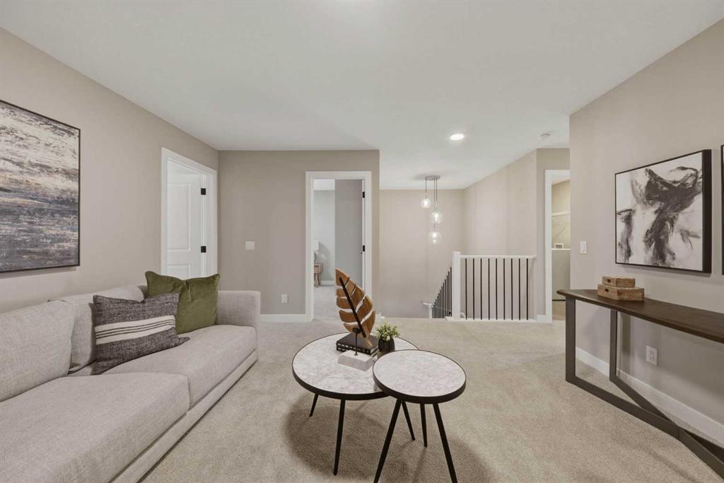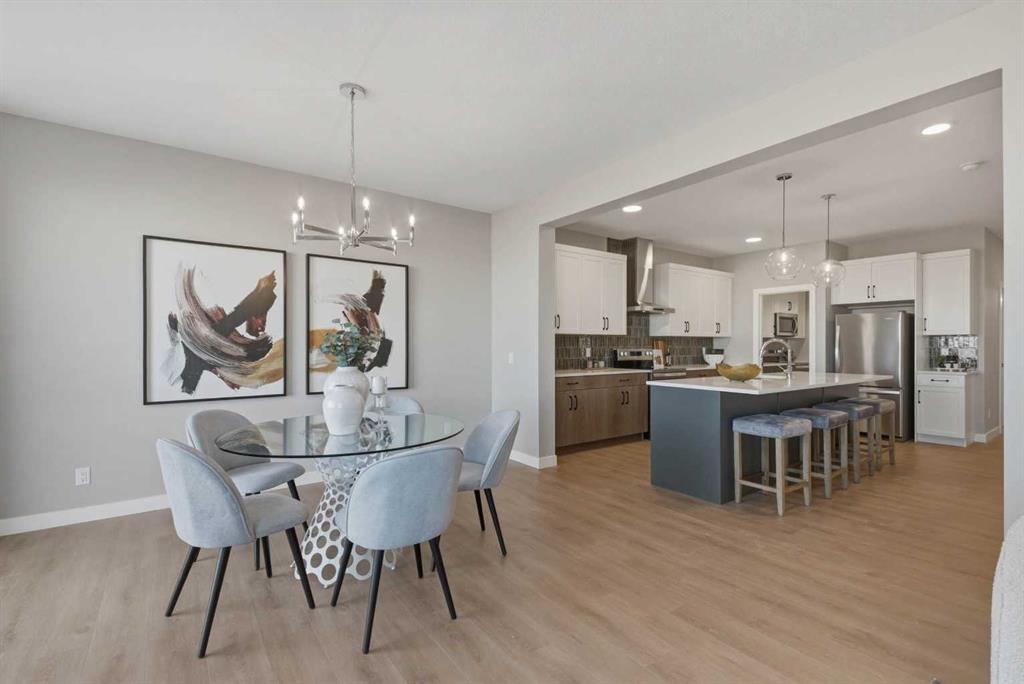 **2,423 SQ FT | 5-BED | 3-BATH | MAIN FLOOR BED & FULL BATH | SPICE KITCHEN | HARDIE BOARD SIDING | REAR DECK | FRONT LANDSCAPING | BUILDER WARRANTY** This Crystal Creek home delivers more style and space where it matters in the growing community of Belvedere. The open concept layout is anchored by a large gourmet kitchen with an oversized island, extensive cabinetry, a walk in pantry and dedicated spice kitchen that keeps prep separate from entertaining. The main level bedroom adds flexibility for guests, extended family or a private office. Upstairs, a central bonus room separates the bedrooms, while the spacious primary suite features a deluxe ensuite and generous walk in closet. Three additional bedrooms, a main bath and upper level laundry with washer and dryer complete the upper level. A side entrance and 9 foot basement ceilings offer strong potential for a future legal basement suite, subject to city approval and permitting. Backing onto open space with no rear neighbours, this home includes a rear deck, front landscaping and durable Hardie Board siding rarely found in the community. Located in southeast Calgary’s growing Belvedere community with quick access to Stoney Trail and East Hills amenities, and protected by builder warranty, this is a well designed home with flexibility built in. Contact us to arrange your private showing