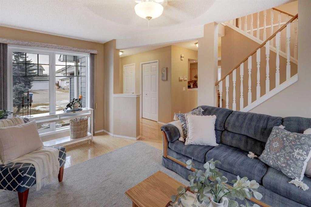*** OPEN HOUSE SATURDAY APRIL 25TH 2:00 PM – 4:00 PM *** Welcome to this stunning, move-in-ready two-storey sanctuary in the heart of Coventry Hills. This residence perfectly balances modern updates with a warm, inviting atmosphere, making it an ideal retreat for those who value both comfort and style. From the moment you cross the threshold, you are greeted by a spacious foyer bathed in neutral, soothing tones that set a serene stage for the rest of the home. The heart of the main floor is a beautifully designed living room where a gas fireplace serves as a cozy centerpiece. A large bay window floods the space with natural light and offers a tranquil view of the west-facing backyard. This area flows seamlessly into the bright and open kitchen, equipped with a convenient breakfast bar, expansive counter space, and an abundance of cabinetry alongside a dedicated pantry. Adjacent to the kitchen, the generous dining room stands ready for everything from lively dinner parties to intimate family meals, with direct access to the massive patio—a true extension of your living space for effortless indoor-outdoor entertaining. Tucked discreetly away for privacy, a chic two-piece powder room serves the main level. Venture upstairs to find a plush, carpeted haven. The primary suite is a true escape, boasting “his and hers” closets and a private four-piece ensuite. Two additional well-appointed bedrooms, each featuring ample closet space, share a bright and pristine four-piece main bathroom, ensuring plenty of room for family or guests. The versatility continues in the fully finished basement, which offers a sprawling recreation room perfect for movie nights or a home gym, complemented by a modern three-piece bathroom, a laundry area, and extensive storage solutions. The exterior of this property is just as impressive as the interior, with recent upgrades including new Hardie board siding, a large concrete patio in the backyard and new exterior doors. Your sunny, west-facing backyard is fully fenced and backs directly onto a peaceful walking path and lush greenspace, providing a rare sense of privacy and openness. Parking is effortless with a front double attached garage and a private driveway that accommodates two additional vehicles. Meticulously maintained and radiating pride of ownership, this turn-key home is nestled on a quiet, child-friendly cul-de-sac. Its exceptional location places you moments away from Coventry Hills School, the scenic trails of Nose Creek Park, and an array of modern shopping and transit options. With easy access to major roadways, this charming property blends suburban tranquility with urban convenience. This is more than just a house; it is the lifestyle upgrade you’ve been waiting for. Don’t let this opportunity pass you by—experience the magic of this Coventry Hills treasure and book your private showing today!