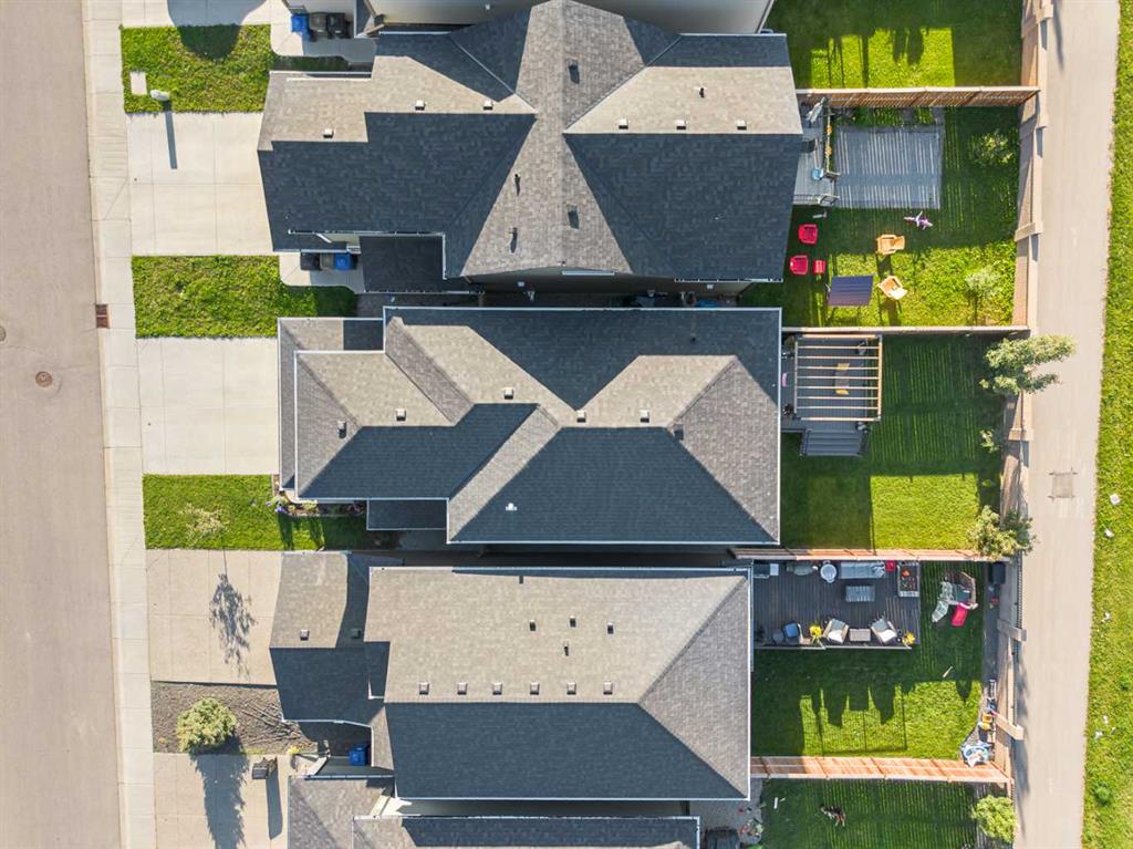 The backyard features a deck with a gazebo, providing a peaceful outdoor space to enjoy Calgary’s sunny days.