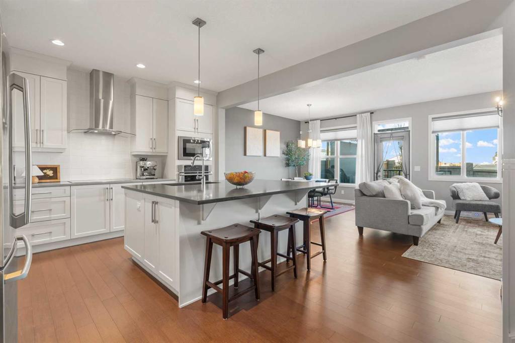 **Open House; Sat Nov 8th & Sun Nov 9th 1:00 -4:00 PM. ** Welcome to this modern, functinal, and stylish single-family home located in one of Calgary’s most vibrant and family-friendly communities of Evanston! This gorgeous home offers 3 bedrooms, 2.5 bathrooms, and a double attached garage, combining comfort, style, and functionality. With numerous upgrades including a new roof (2025), new siding (2025), triple-pane windows, tankless hotwater tank, central A/C, solar-panel system rough-in, and central vacuum rough-in, central security rough-in, this home is truly move-in ready and built for the modern family. Main Floor Highlights, step into a wide and welcoming foyer that sets the tone for the rest of the home. The engineered hardwood flooring, and chef-inspired kitchen create an inviting space perfect for both everyday living and entertaining. The kitchen features;Wall- built-in microwave and oven, Oversized center island with seating that serves as the heart of the home, stylish cabinenetry and a walk-in pantry to keep everything organized with ease. The open-concept layout flows seamlessly from kitchen to dining to living areas, highlighted by large windows that fill the space with natural light. The bright and inviting living room offers a comfortable place to relax, while adjacent dining area is ideal for family meals and gatherings. From dining area, a patio door leads to your backyard deck with gazebo, perfect for summer barbecues and family gatherings. The upgraded metal spindle railing leads gracefully to the second floor, adding a touch of modern elegance to the home. Upstairs, you’ll find a versatile bonus room that can be transformed into a media room, reading nook, or kids’ playzone, providing an ideal space for family bonding or a cozy move night. The primary bedroom offers a true retreat ,a spa-inspired ensuite with a relaxing soaker tub, a shower, dual sinks, and a walk-in closet. Two additional bedrooms offer plenty of room for growing families or guests. The upper floor also includes a convenient laundry area, so you will never need to carry laundry up and down the stairs. The unfinished basement awaits your personal touch, ideal for adding a recreation area, gym, or additional bedroom.