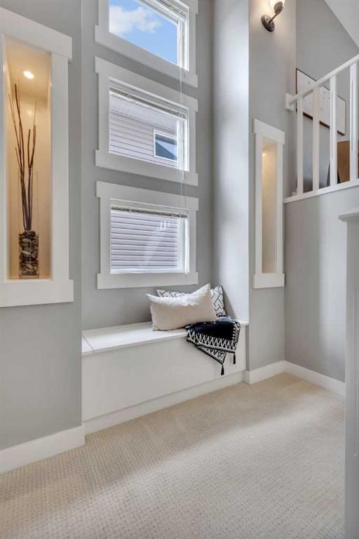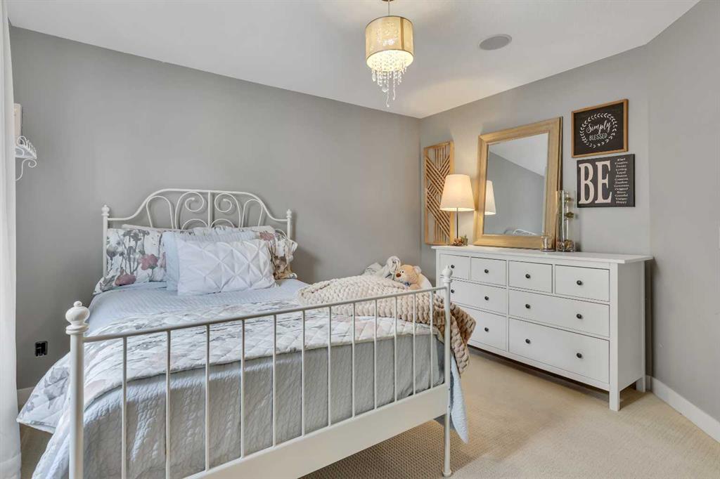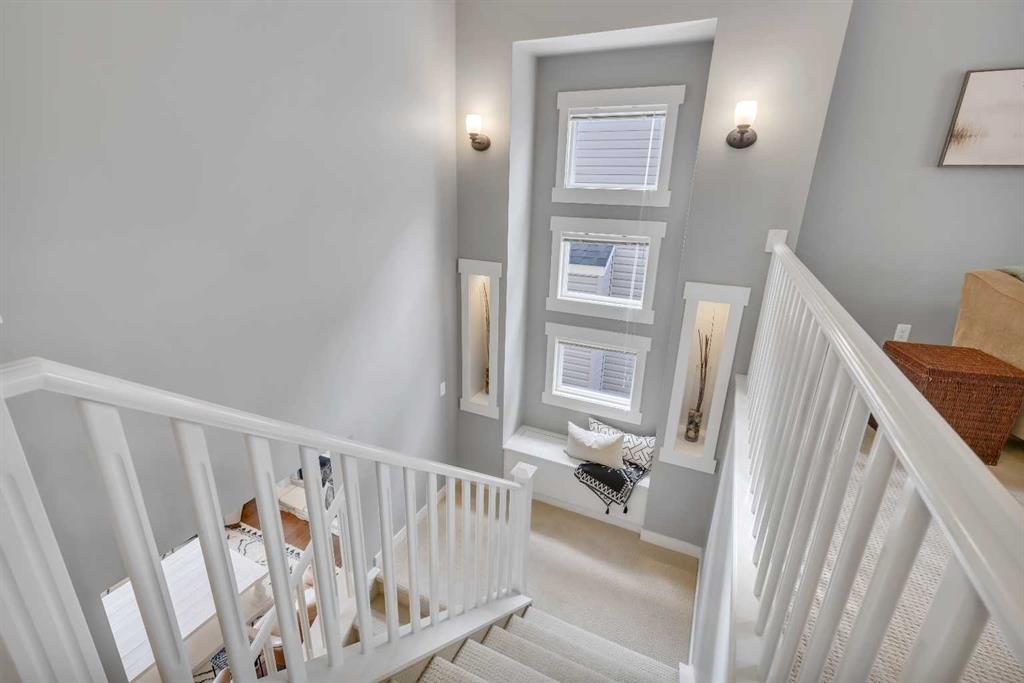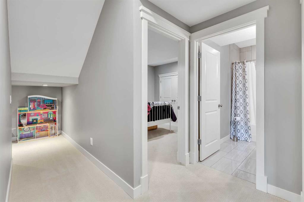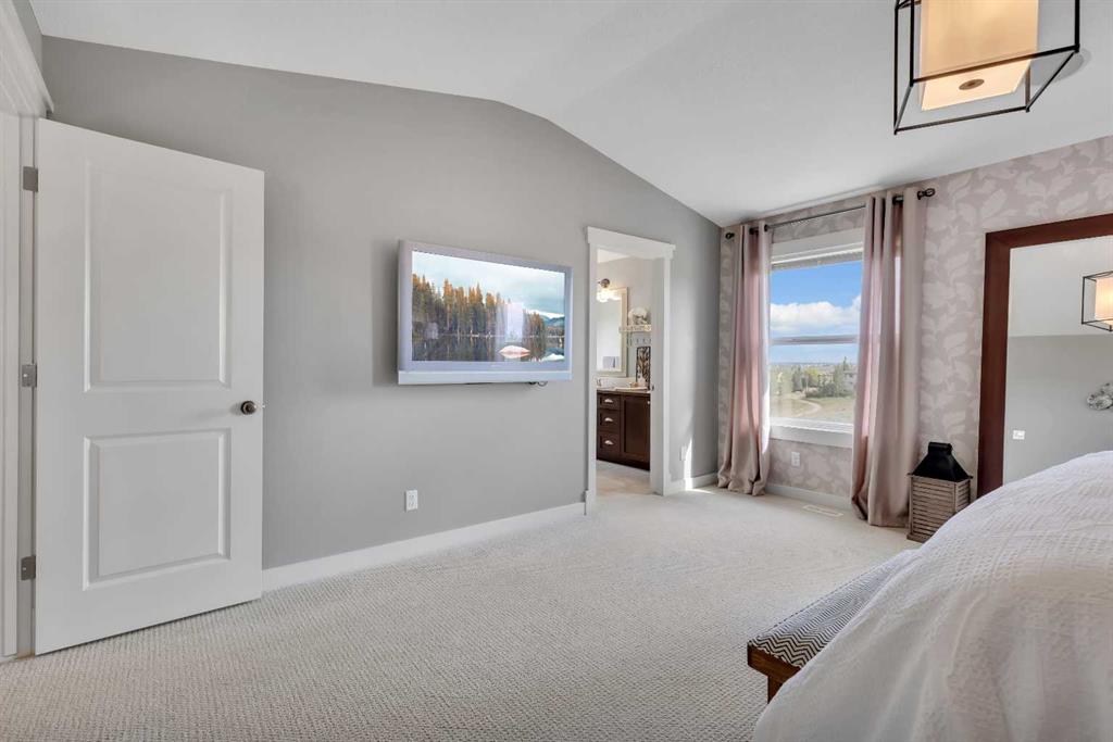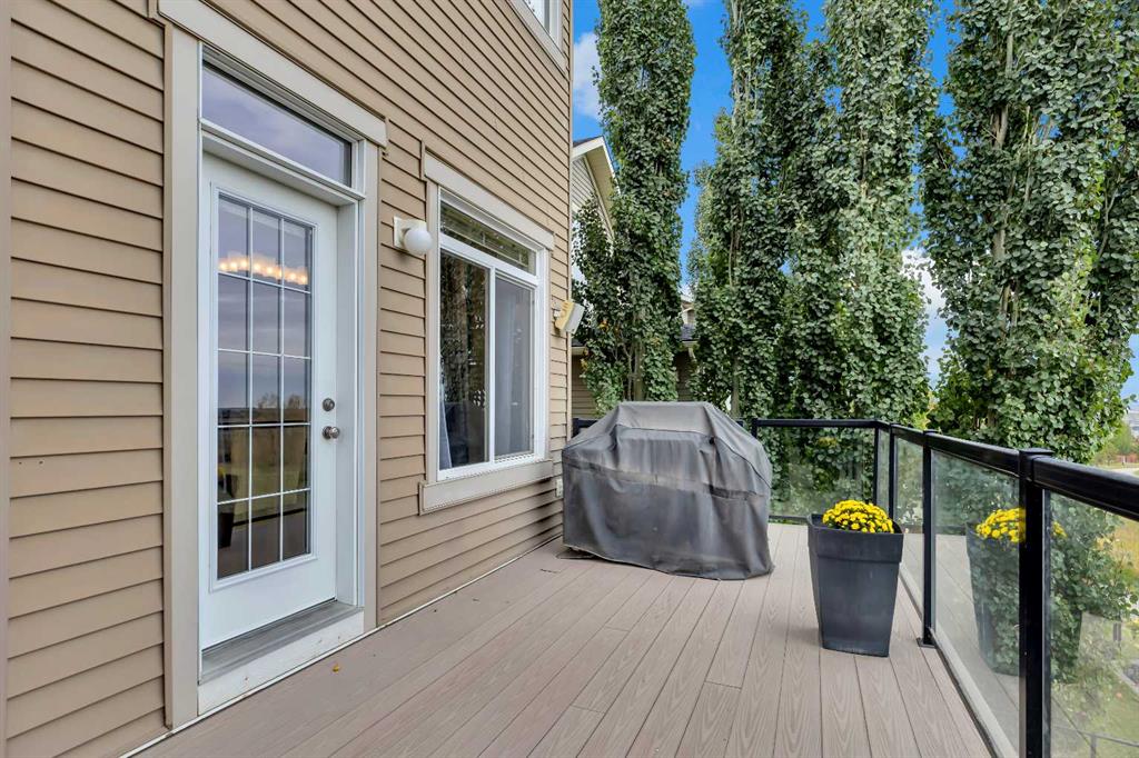 Upstairs, large windows continue to flood the area with natural light, with modern white trim adding an elegant touch. The layout includes three bedrooms, with a luxurious primary suite featuring unobstructed views of the fallcolours. This retreat includes a dual-sink vanity, soaker tub, large walk-in closet, and glass shower. An upstairs laundry area enhances convenience. The fully developed walkout basement adds over 1,000 square feet of additional living space, including a spacious bedroom and full bathroom, perfect for guests or as a home gym. Built-in speakers in the basement provide an entertainment experience. This beautifully maintained home blends comfort, style, and functionality. With stunning views, outdoor living spaces, and thoughtful upgrades, it’s ready for your family to make it your own.