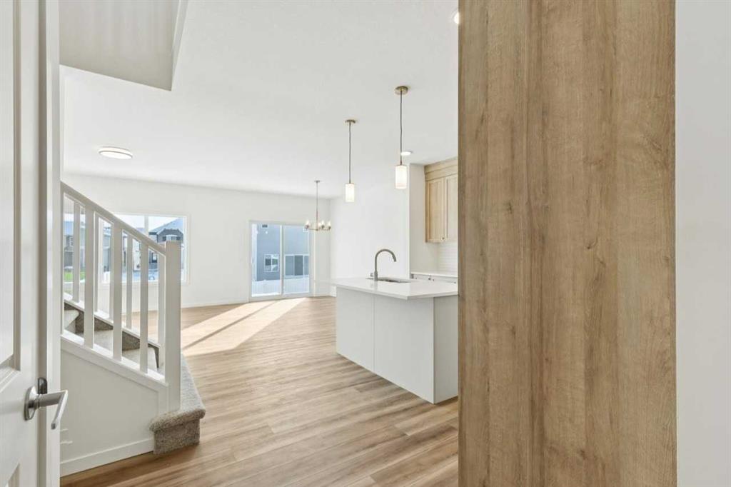 The Bellevue by Calbridge Homes in the Bayview community offers 2,026 sq ft of thoughtfully designed living space with 3 bedrooms and 2.5 bathrooms. The main floor features an L-shaped kitchen with a walk-through pantry providing direct access to the mudroom, creating a functional flow for everyday living. The open layout connects seamlessly to the dining and living areas, ideal for both family time and entertaining. Upstairs, enjoy a spacious laundry room with a window for added natural light, along with well-proportioned bedrooms including a comfortable primary retreat. A double attached garage adds convenience, and an optional 505 sq ft lower level offers future development potential. Located in Bayview with access to pathways, parks, and nearby amenities, this home blends smart design with modern comfort. Photos are representative.