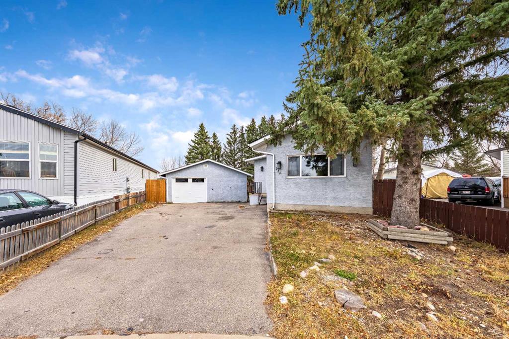 Sitting on a huge pie-shaped lot just under 8,000 sqft, this fully redone property is perfect for anyone who loves space, privacy, and the freedom to work on projects. The double detached garage offers plenty of room for vehicles, tools, or hobbies, while the sprawling backyard is ideal for hosting summer BBQs or relaxing around a cozy firepit. With no homes directly behind and backing onto Brentwood Elementary School, this location truly has it all. The roof was also redone within the last two years. Step inside and you’ll be amazed by the transformation—this home has been completely renovated from top to bottom. Featuring new drywall, vinyl plank flooring throughout, upgraded doors, and all-new appliances, no detail has been overlooked. The kitchen has been fully redesigned with ample cupboard space, a moveable island with extra storage, and modern finishes. It’s truly a chef’s dream, perfect for cooking your favourite meals while entertaining guests. The interior offers a bright, functional layout with two bedrooms plus a versatile den or office, ideal for working from home. Off the den, step onto your newer deck—an inviting spot to enjoy your morning coffee or take a break during the day. The 4-piece bathroom features a soaker tub, walk-in shower, and a stylish vanity with ample storage, all beautifully finished with elegant tile. Down the hall, the spacious laundry room provides plenty of room for organization and everyday convenience. The primary bedroom easily accommodates a king-size bed with additional space for a reading nook or sitting area, while the second bedroom is perfect for a child, guest, or nursery. Outside, the expansive, fully fenced backyard is lined with mature trees, offering privacy and tranquility. The garage includes extra storage, and there’s an additional shed behind it for even more space. Located close to parks, pathways, the Strathmore Aquatic Centre, sports fields, golf course, shopping, restaurants, and the Strathmore District Health Services, this home combines small-town charm with everyday convenience. Homes like this don’t come up often—book your showing today before it’s gone!