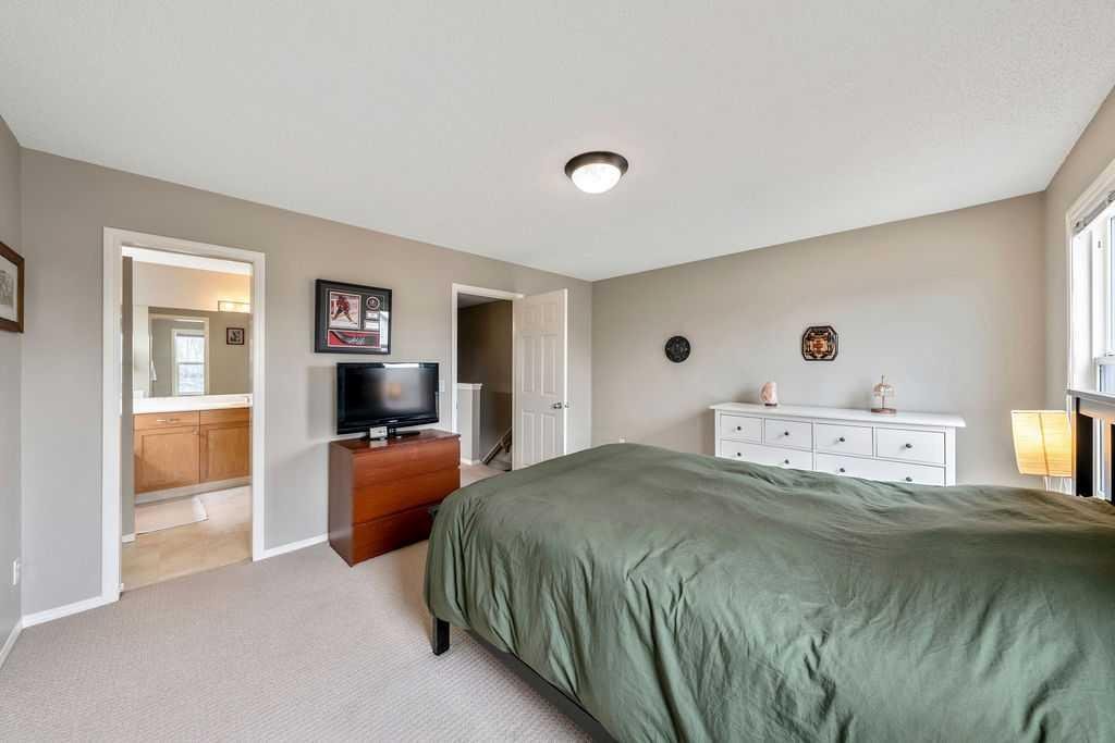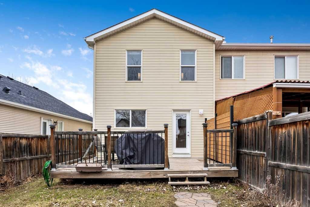 Welcome to this bright and beautifully maintained semi-detached home in desirable community of Cranston—offering an incredible opportunity for buyers looking to get into the market without sacrificing lifestyle. Ideally located just steps from Parks, scenic Walking Paths, Public & Catholic Schools, and tons of great Amenities, this home delivers both convenience and community. Step inside to a sun-filled, open-concept main floor designed for comfortable everyday living. Spacious living area flows seamlessly into the dining space and a functional kitchen complete with a central Island and ample cabinetry. Large windows and patio doors bring in plenty of natural light, while dual closets near the back entry add practical storage. Step outside to your South-Facing, fully Landscaped and Fenced backyard, featuring a full-sized deck—perfect for summer BBQs and entertaining. The gravel pad provides off street parking and plenty of space for future double garage. A convenient 2-piece bath completes the main level. Upstairs, you’ll find two oversized bedrooms, each thoughtfully designed with generous closet space. The primary bedroom features dual closets and direct access to a cheater en-suite, while the second bedroom impresses with its own Walk-in closet—ideal for roommates, guests, or a growing family. The undeveloped basement offers a blank canvas, ready for your personal touch—whether that’s extra living space, a home gym, or added storage. Additional Upgrades include: Central vacuum with attachments, Water softener & reverse osmosis system, and New roof for peace of mind. As a resident you’ll also have exclusive access to Cranston Residents Association is a 22,000 sq. ft. community hub with gymnasium, banquet rooms, skating rink, splash park, and tennis courts. Welcome to your new home! Call today to book your showing!