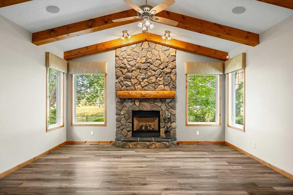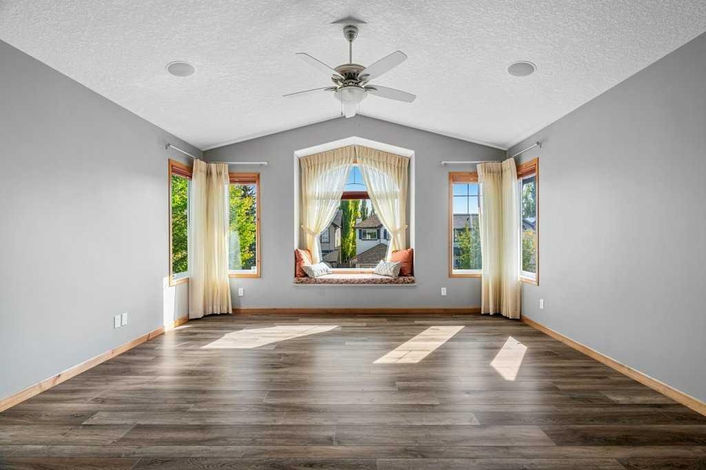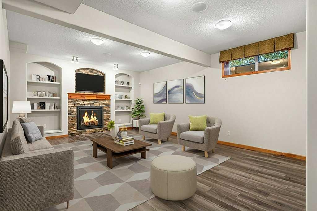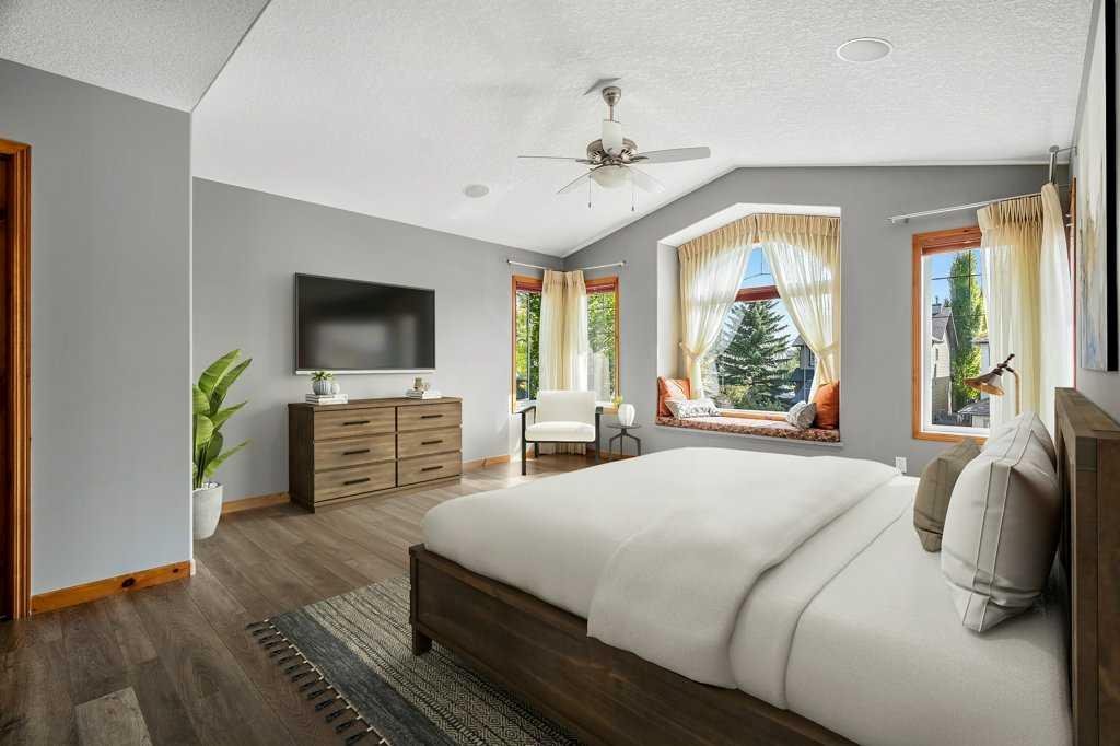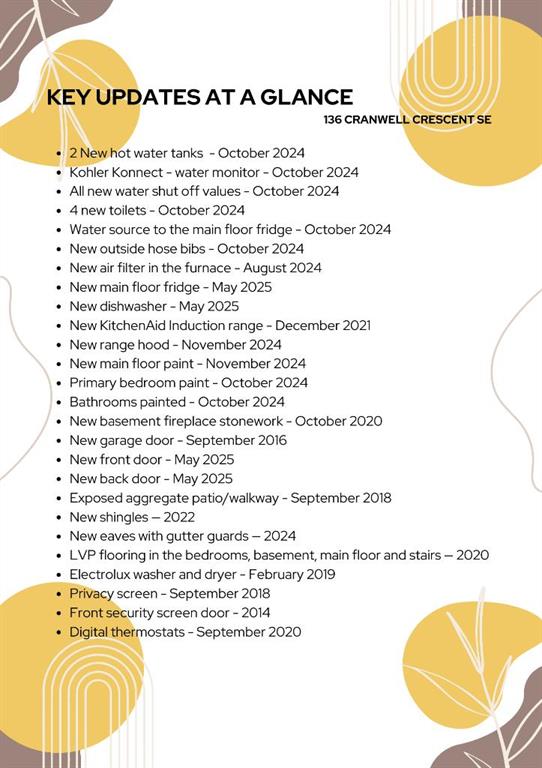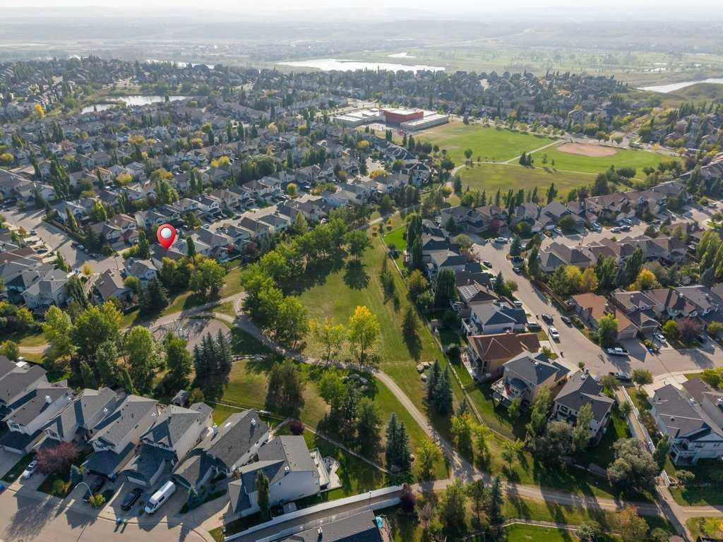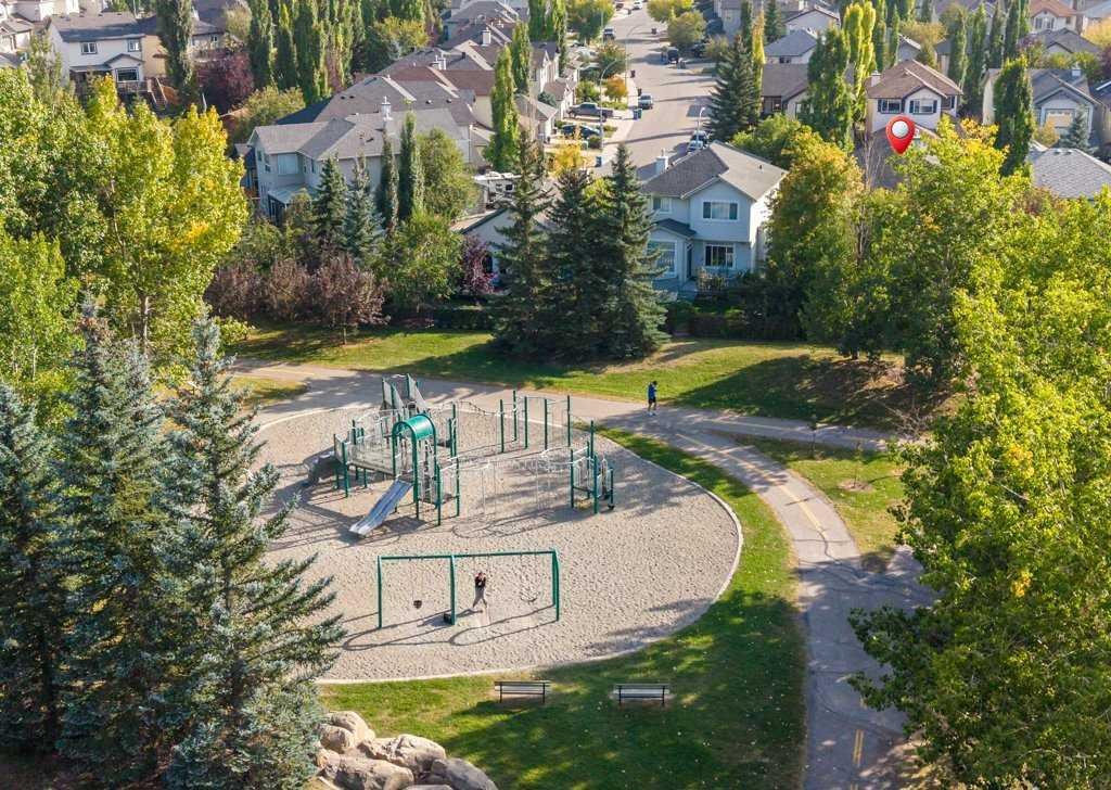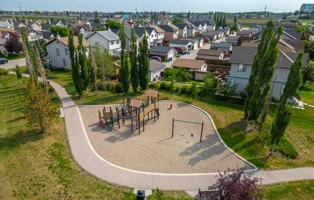 Exterior living spaces include an exposed patio, a lower concrete pad with pergola, irrigation, mesh fencing, an exposed sidewalk (2018) and a BBQ gas line with direct access to the adjoining park and playground. Located in the family-friendly community of Cranston, the home is within walking distance to Cranston School and near Dr. George Stanley and Christ the King schools.