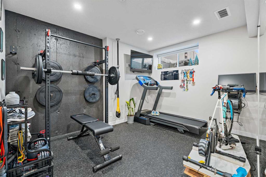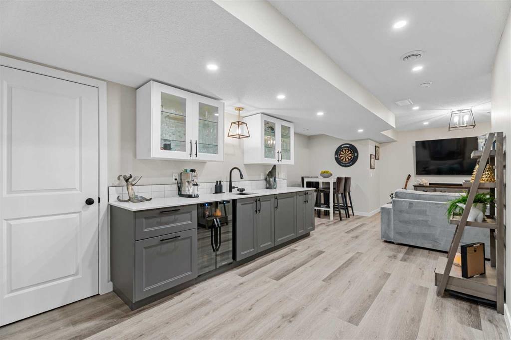 **OPEN HOUSE SUNDAY, DEC 7, 2-4pm** This home truly has it all, offering over 2,200 sq. ft. of beautifully developed living space. Step inside to a bright, open layout that instantly feels welcoming. Wide vinyl plank flooring runs underfoot, drawing your eye to the bio flame fireplace framed by a stylish mantle and slat-wall feature that anchors the room and sets a warm, modern tone for the rest of the house. From the living room, the layout flows naturally into the dining area, perfectly positioned for both everyday meals and weekend gatherings. Just off to the side, a thoughtful main-floor office nook offers a dedicated spot for working from home, kids’ homework, or managing the household calendar. Beyond the dining area, the kitchen feels both polished and practical. Two-tone cabinetry pairs with stainless steel appliances, quartz countertops, and a herringbone tile backsplash for a designer aesthetic, while the centre island with breakfast bar seating keeps everyone connected. A functional mudroom at the back entry, complete with a built-in seat and hooks, keeps coats, boots, and backpacks organized, making daily comings and goings a little more effortless. Upstairs, in the primary bedroom, a calm retreat with a stylish ensuite and a large walk-in closet. It’s thoughtfully set apart from the two additional bedrooms, giving everyone a bit of extra privacy. The secondary bedrooms are generous in size and ready to adapt as kids’ rooms, guest space, or a second home office. Descend to the lower level to discover a cozy rec room that’s ideal for movie marathons or game nights, a wet bar to set up for snacks, and a dedicated gym space so you can skip the commute to the fitness centre and work out at home instead. Outside, the backyard offers a composite deck on a steel frame, perfect for BBQs, as well as zero maintenance landscaping, a vinyl fence for privacy and leads to an exceptional 22’ x 20’ detached double garage with 10’ ceilings, insulation and drywall, attic trusses with an access hatch and ladder for extra storage, a 16’ x 8’ garage door, 60A electrical service with EV charging, a 4 kW fan heater, and a side mount garage door opener, it’s perfectly set up for cars, or hobbies. All of this is tucked into Dawson’s Landing in Chestermere, a vibrant, family-focused community where life meets nature. Here you’re moments from nearly 30 acres of planned protected wetlands and a 22-acre environmental reserve with scenic trails and a unique EcoPark, plus year-round recreation at nearby Chestermere Lake for swimming, boating, skating, and lakeside walks. With convenient access to schools, parks, shopping, and an easy commute into Calgary, this property offers a polished home in a community designed for everyday living and weekend play. Sellers are downsizing and some items may be negotiable.