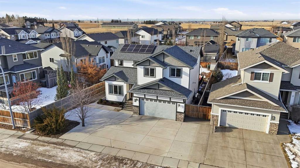 Custom built by Aquilla Homes in 2014, this beautifully maintained two-storey offers exceptional space with approximately 3000 sf developed. Situated on a generous 7,092 sq. ft. lot, this fully developed home combines modern comfort with energy efficiency and a private, park-like setting. The main floor features a spacious kitchen with custom cabinetry by Westside Finishing, a den perfect for a home office, and convenient main floor laundry/mudroom. Upstairs you’ll find three bedrooms plus a bright bonus room, including a large primary suite complete with a walk-in closet and 4-piece ensuite. The fully developed basement adds even more functional living space, offering an additional bedroom with a 2-piece bath (plumbed for future shower installation), a craft room/workout area, and a projector that’s included with the home. Extensive recent upgrades provide peace of mind, including new shingles (July 2025), a new furnace and central air conditioning (August 2025) with 10-year warranty, and a 10-panel solar system installed in 2022 with rodent guard protection and 25-year warranty. Additional features include central vacuum with attachments, new Hunter Douglas blinds throughout, new closet organizers, and a new Asko dishwasher (2021). Outside, the massive rear yard is a true retreat—surrounded by mature trees and shrubs for exceptional privacy, with an established garden area, large raspberry patch, apple trees, and included water barrels (currently not installed).