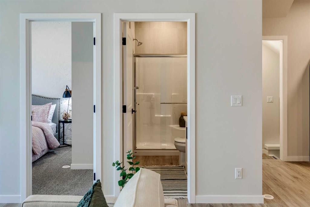 Westcreek Homes presents the SOHO plan backing on to a green space and playground with a separate side entry, double attached garage and well appointed upgrades throughout! From your attached double garage and front foyer enter into vinyl plank flooring and 9′ ceiling height. A family style mudroom with bench and coat closet as well as a front coat closet add to the convenience of the plan. The open design main floor blends the kitchen, dining and lifestyle room into 1 outstanding plan with a full appliance package including a gas stove top, built in oven, center island, walk in pantry and chimney hood fan. Overlooking the dining area and back living room with views of the park and a perfectly placed main floor flex room/office. Access to your rear deck off the garden door and with a side staircase to the lower level with a private side entry. The upper plan has room for all, 2 front bedrooms, a generous laundry room, 4 piece guest bath and central bonus room. The primary bedroom is situate to the back of the home to enjoy your park views and comes with a walk in closet and 5 piece private ensuite bath including his and her sinks a deep soaker tub, water closet and tiled full size shower. Take advantage of a lower level with 9′ ceilings which offers the layout for a legal suite or just extra space for the entire family to enjoy with a high efficient furnace and tankless hot water on demand. The plan, location, size and options to suit any of today’s modern families!