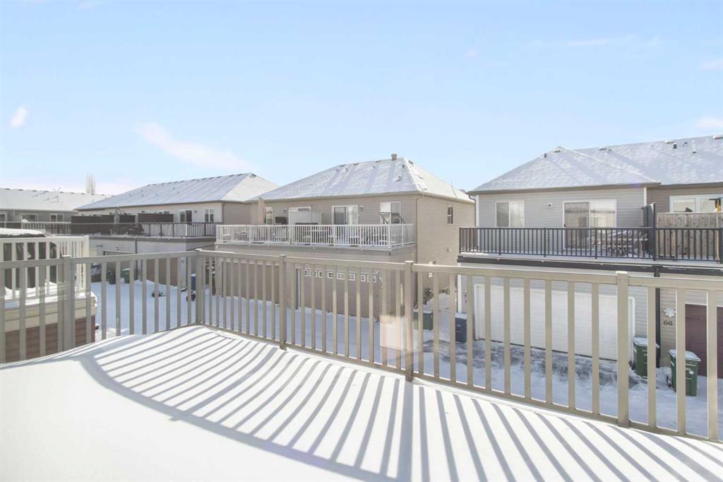 Welcome to this stylish and affordable end-unit two-storey townhome in desirable Windsong, offering unbeatable value with no condo fees, a double attached garage, and a massive south-facing rooftop patio. Located on a quiet, family-friendly street with abundant parking, this home features a front yard, side green space, attractive landscaping, and a spacious covered front porch. Inside, a bright entryway leads to an open-concept main floor with a generous living room, dining area, and well-designed U-shaped kitchen complete with stainless steel appliances, electric stove, built in dishwasher, pantry, raised eating bar, and ample cabinetry and counter space. A mudroom off the kitchen provides convenient access to the garage and main floor half bath. Upstairs offers a versatile bonus/tech space with direct access to the sunny Duradek rooftop patio, along with three well-sized bedrooms including a primary suite with walk-in closet and 4-piece ensuite, plus an additional full bathroom. The unfinished basement includes laundry, bathroom rough-in, and room for future development. Perfect for first-time buyers, downsizers, or anyone seeking a low-maintenance lifestyle, this move-in ready home is close to schools, parks, shopping, dining, medical services, and scenic pathways, delivering exceptional comfort, functionality, and value in a vibrant community. Â
