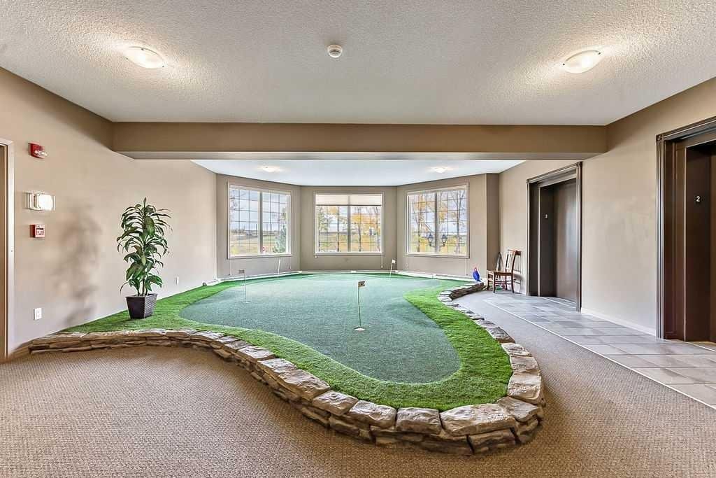 Located in the highly sought-after Penncross building in Okotoks, residents enjoy wide, bright hallways, a well-equipped fitness room overlooking the courtyard, and inviting common areas for relaxing, socializing, or even practicing your putting on the indoor green.