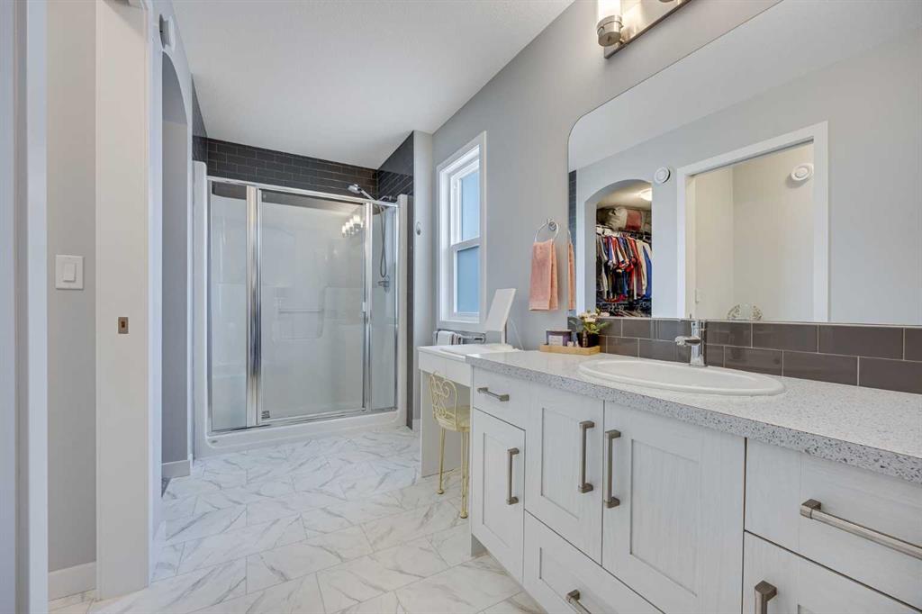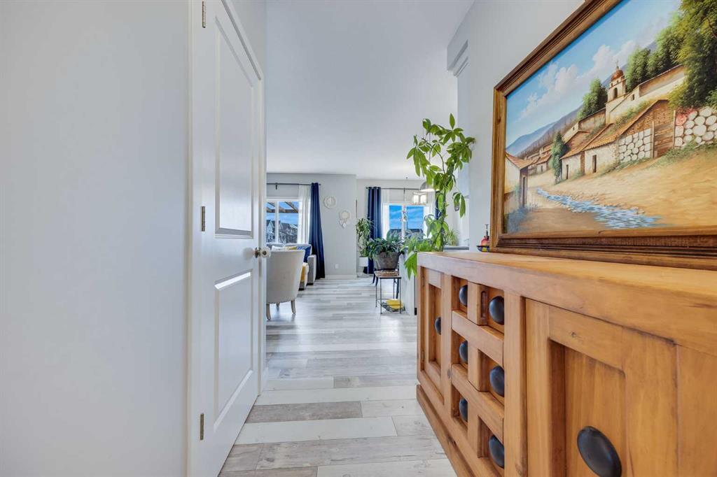 Welcome to this beautifully Crafted McKee Home, perfectly situated in a peaceful neighbourhood with a backyard that opens directly onto a beautiful park. Offering the ideal blend of comfort and convenience, this home features a spacious open-concept layout, large windows that bring in plenty of natural light, and views of the green space behind. With 3 bedrooms and 2.5 bathrooms, this home is perfect for families looking for extra space. The modern kitchen boasts features like quartz countertops, stainless steel appliances, and a large island, while the cozy living area with a fireplace creates the perfect place to unwind. Upstairs, you’ll find generously sized bedrooms, including a primary suite with a walk-in closet and ensuite. Step outside to your private backyard oasis, where you can enjoy morning coffee while taking in the park views. With access to walking trails, playgrounds, and green space, this location is perfect for outdoor enthusiasts and families alike. Located just minutes from schools, shops, and essential amenities, this home offers small town charm with easy access to Airdrie and Calgary. Don’t miss out on this rare opportunity schedule your private showing today!