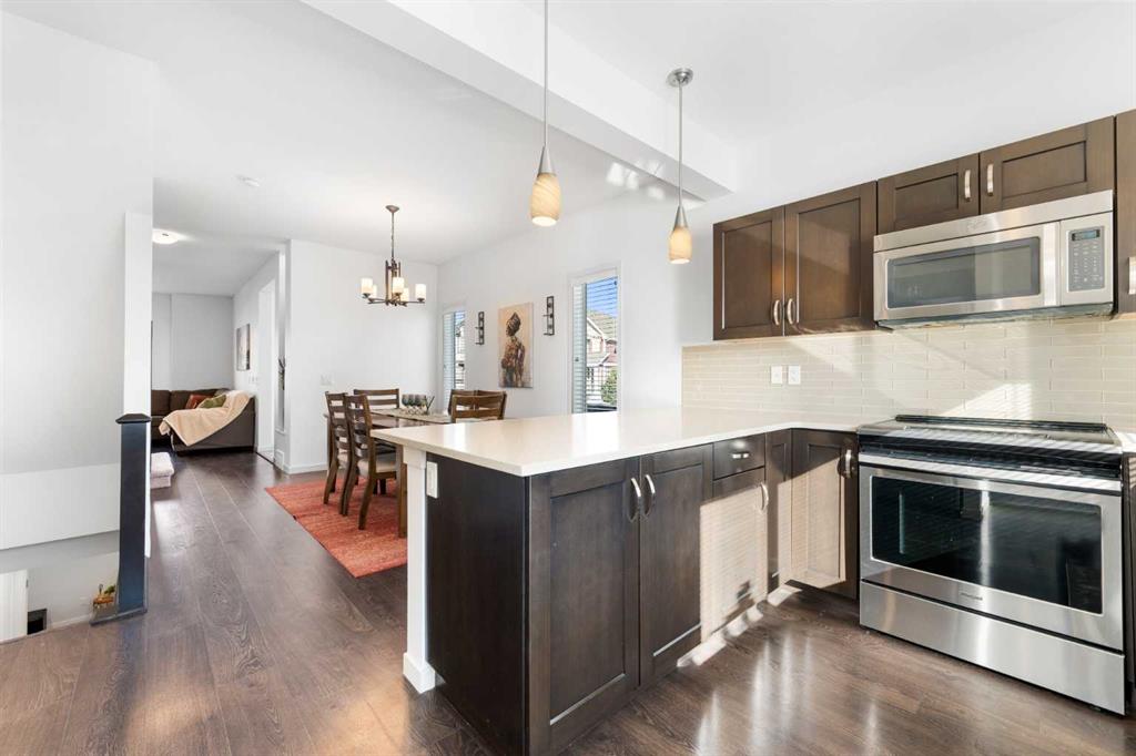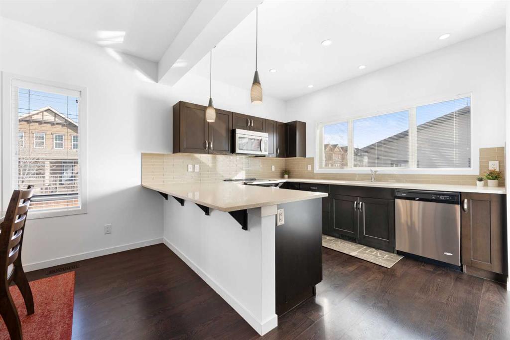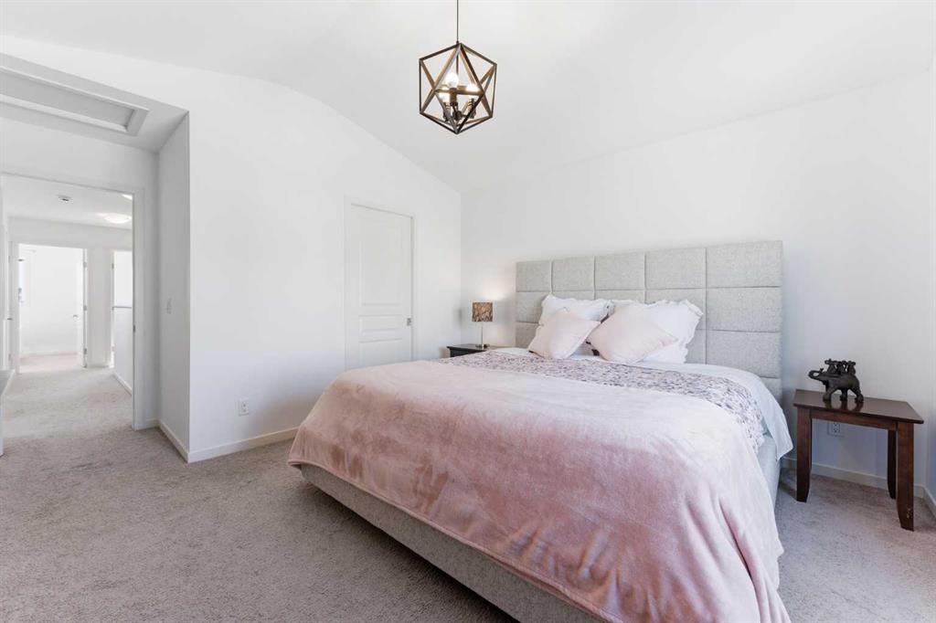 Welcome to a home that truly stands apart in the heart of Mahogany. Perfectly positioned on a fully fenced corner lot — and notably not a zero lot line — this beautifully maintained two-storey offers over 1,600 sq ft of thoughtfully designed living space above grade, exceptional natural light, and a layout that simply makes sense. From the moment you step into the open front foyer, you’ll appreciate the airy, contemporary feel. Expansive windows — including additional side yard windows — flood the home with sunshine, highlighting the upscale flooring and clean, modern finishes throughout. The main level is designed for everyday comfort and effortless entertaining. The fantastic kitchen features quartz countertops, abundant cabinetry, a peninsula island with eating bar, pendant lighting, LED pot lights, and a large window over the sink create a bright and inspiring space for cooking and gathering. The adjoining great room flows seamlessly, anchored by a gas fireplace with full tile surround — a warm and inviting focal point for cozy evenings. And tucked away is a “pocket office” – perfect for kids homework or working at home. Upstairs, the “king-sized” primary retreat feels like a private sanctuary, complete with vaulted ceilings, a large walk-in closet, and a full ensuite featuring a relaxing soaker tub and separate shower. An additional side window enhances the sense of space and light. Two more well-proportioned bedrooms complete the upper level, offering flexibility for family & guests. The basement was professionally developed in 2019 and adds versatility to the home, featuring a spacious bedroom, comfortable living room, and a full washroom — ideal for extended family, teens, or guests. Step outside to a generous south-facing backyard with a full-size covered deck, perfect for summer barbecues or relaxing in the shade. The oversized double garage measures an impressive 23×25, with approximately 200 square feet of attic storage accessible by ladder — a rare and practical bonus. Located in the award-winning lake community of Mahogany, you’ll enjoy four-season lake living with beaches, skating, paddleboarding, pathways, and parks — plus nearby schools, shopping, restaurants, and every amenity you need just minutes away. This is more than just a house — it’s a lifestyle opportunity in one of Calgary’s most sought-after communities.
