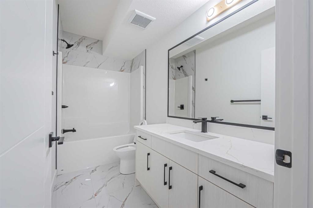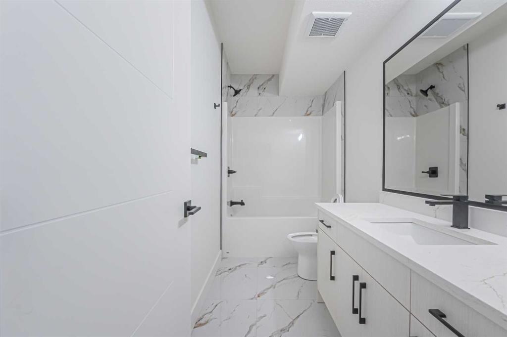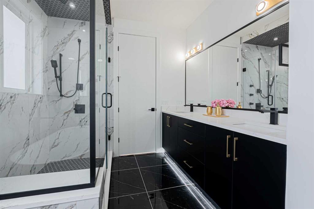 Welcome to this stunning 2,925 sq ft brand new luxury home with a legal 2-bedroom basement suite, designed with exceptional upgrades and thoughtful details throughout. From the moment you enter through the double front doors, you are greeted by a grand open to below foyer, 9’ ceilings on all levels and 8’ doors on both the main and upper floors. This spacious home offers 5 bedrooms, including a main floor bedroom with a full bath, perfect for guests or extended family. The upper level features two master bedrooms, each with custom feature walls. The primary master includes a luxurious 5-piece ensuite and walk-in closet with double-door entry, while the second master has a 3-piece ensuite and built-in makeup vanity. Two additional bedrooms, a full bath and a beautifully finished bonus room with a feature wall and knock-down ceiling complete the upper level. The main living areas are equally impressive with two living spaces, feature walls in the family room and bonus room and elegant lighting throughout. The chef’s kitchen is equipped with ceiling-height cabinets, a high-end chimney hood fan, upgraded appliances, and a full spice kitchen. Additional highlights include luxury vinyl plank flooring throughout the home, tile to ceiling in all bathrooms, upgraded tile and lighting fixtures, extra-wide windows, glass railing staircase, a convenient entryway bench, and custom material shelves in all cabinets. The legal 2-bedroom basement suite adds incredible value and flexibility, making this home perfect for families looking for luxury, space, and income potential. Book your showing now and experience this exceptional home in person.