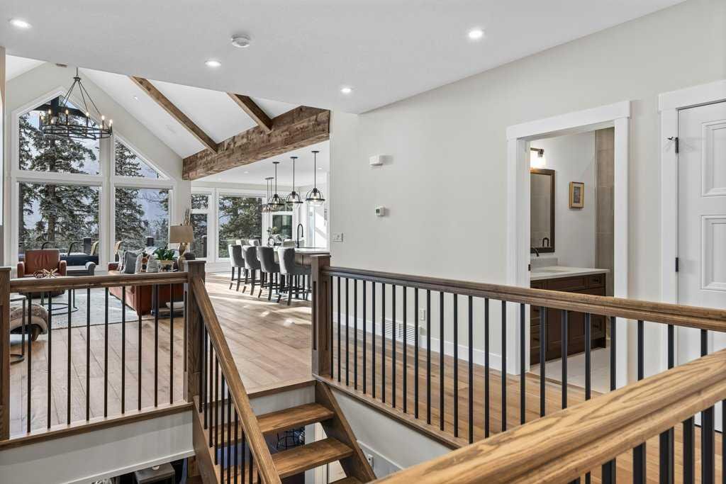 Experience this 3 year old luxurious mountain home located in Silvertip! Nestled in a private location on a huge lot backing onto the Silvertip Golf Course, this four bedroom, four bathroom home boasts 4200 square feet of spectacular mountain views and generous indoor and outdoor living spaces offering lavish features throughout. The main level features a kitchen with large pantry and great room with a grand, stone fireplace, vaulted ceilings, and beam work as well as a master bedroom with en-suite and walk in closet, den/bedroom with walk in closet, full bath, and laundry room. The walkout basement offers a custom wine display and wet bar, recreation and living area with fireplace, fitness room, junior master with en-suite, an additional bedroom, full bathroom, and two storage areas. Features include Thermador appliances, open riser stairs, nine foot basement ceilings, Sonos sound system, Kohler steam shower, in floor heating in basement and garage, triple car garage, landscaping, and much more. Professional interior design services were provided to create a timeless, classic, luxurious, and mountain modern aesthetic. Fully furnished including patio furniture.