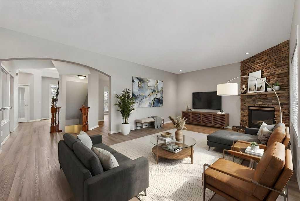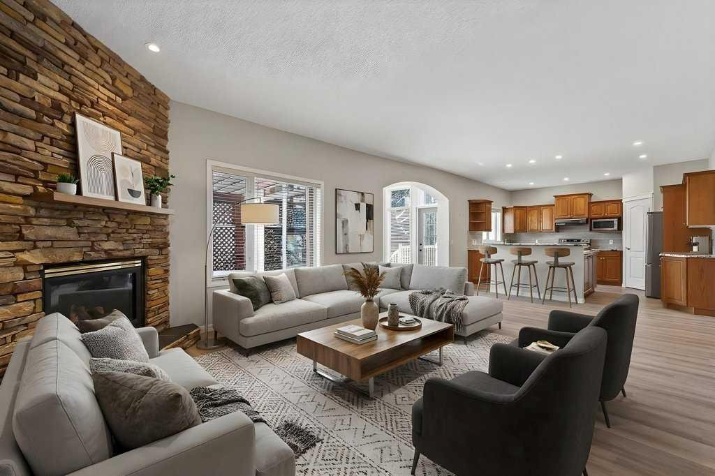Perfect location on a family-friendly, quiet cul-de-sac in the prestigious Simcrest Estates of Signal Hill. Minutes to schools, Westside Rec-Centre, 69 Ave C-train station, shopping & transit lines. Quick commute to City Centre! Large corner lot affords additional privacy plus access to an R.V. parking pad in the backyard. These original owners custom built this home with Shane Homes & have maintained and updated it to perfection over the years! Open spacious rooms featuring newer luxury vinyl plank flooring & designer carpets upstairs. Formal living & dining rooms offer a comfortable space to entertain. The main floor den is perfect for those who work from home. The kitchen features loads of gorgeous oak cabinetry, natural granite counters, convenient island with appliance bar, & updated stainless steel appliances. Large dining nook overlooks the yard & allows the light to shine in through expansive windows. The Family room features a gas fireplace & is open to the kitchen making it the perfect lay-out to entertain friends or enjoy family time. Main floor laundry, updated bathroom & access to the triple garage. Upstairs you’ll discover 3 bedrooms plus the large Primary bedroom & spa like ensuite bathroom. Enjoy mountain views from the front bedrooms plus a cozy window seat to enjoy a good book. The basement is fully finished offering a fifth bedroom, full bath, a spacious rec-room wired for surround sound to enjoy your favorite movie. The games room features a custom built-in, pub style game table seating area. Loads of room for a pool table or ping pong table! Lots of features including air-conditioning, water softener, reverse osmosis tap in kitchen, newer top of the line appliances, upgraded flooring, newer toilets, updated lighting, fresh paint, new roof shingles, downspouts, facia, new front door & side light windows. The beautifully manicured yards have numerous mature trees & shrubs offering a green oasis to relax in. Have a soak in the hot tub enclosed in its custom pergola for added privacy. Nothing to do to this house except to move in and enjoy!