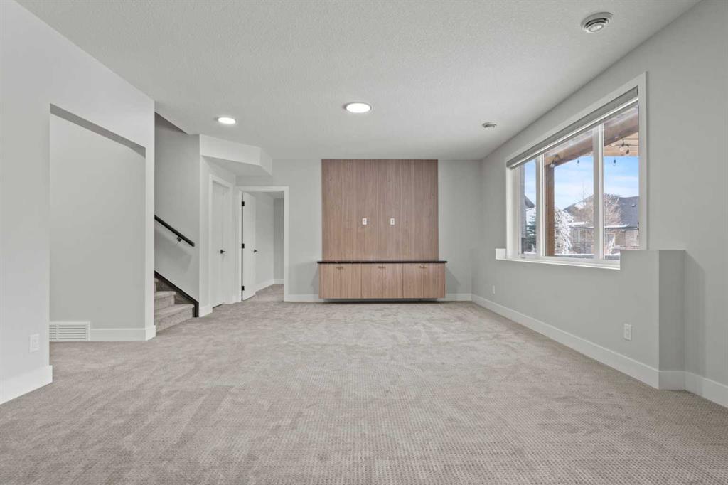 Upstairs, you’ll find a spacious bonus room, along with a luxurious primary retreat featuring a spa-inspired ensuite with a large shower and soaker tub. The primary suite conveniently connects to the upper-level laundry room. Three additional bedrooms and two additional full washrooms complete this level, including one with its own private ensuite. The fully developed walk-out basement is an entertainer’s dream, offering awet bar, gym, generous storage, and a large bedroom with a full bathroom—ideal for guests or extended family. Additional highlights include a triple heated garage with epoxy flooring, triple-pane windows, Gemstone exterior lighting, heating and cooling controls on each level, and 9-foot ceilings throughout the upper and lower levels. The home is fully landscaped with underground sprinklers, exposed aggregate concrete pad under the patio, and with a beautiful lighted pergola to enjoy under the summer and autumn nights. This is a rare opportunity to own a nearly new luxury home in one of the most sought-after communities in the Calgary area.