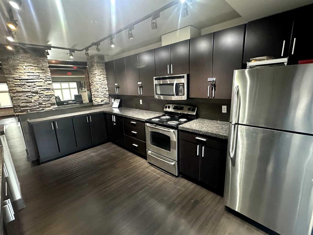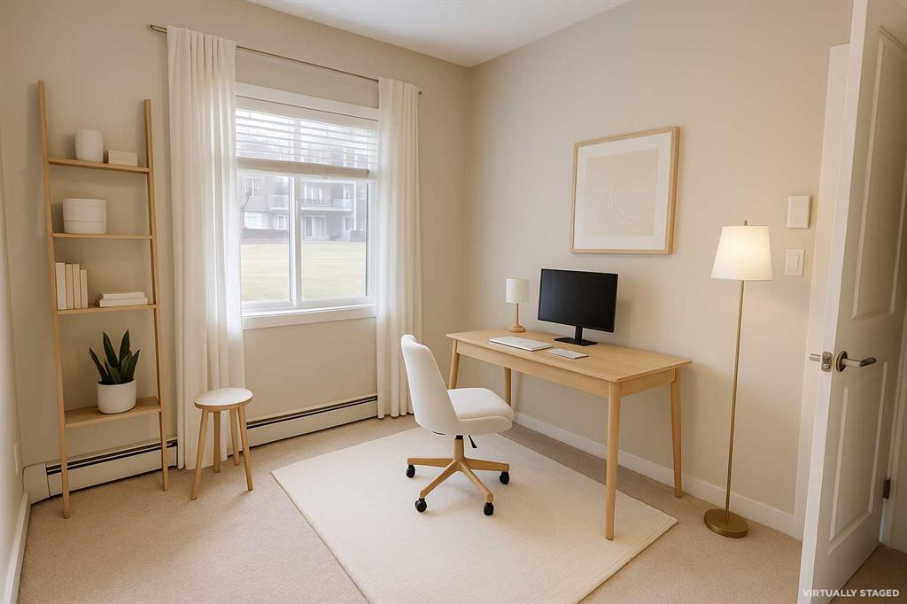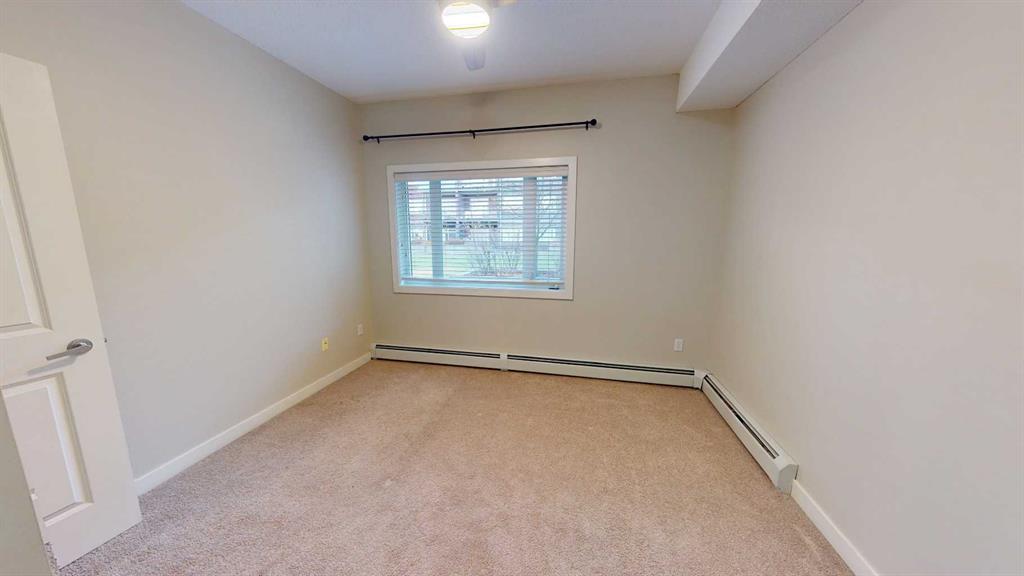 **Make your Fist Visit through the 3D tour** Welcome to Millrise in southwest Calgary, a peaceful community surrounded by greenspace and blooming trees. This main-floor condo features 2 bedrooms, 1 full bathroom, in-suite laundry, and a heated underground parking stall (#637). Your parking spot is really close to the elevator which makes for easy access getting things to your home. The main floor location is also really close to the visitors parking area making easy access to your unit from the courtyard for you and your friends when just stopping in for a quick visit or dropping off your groceries. Offering ~650+ sq. ft. of thoughtfully designed living space, this home enjoys a tranquil park-like setting on the courtyard. From the spacious courtyard patio, step into your private entrance and discover a warm, open-concept layout that combines comfort and functionality. The inviting living area connects seamlessly to a modern eat-in kitchen, complete with granite countertops, a central island, and stainless-steel appliances. The primary bedroom includes a generous wardrobe area and direct access to a four-piece ensuite bath, while the second bedroom offers the perfect space for guests, a home office, or additional storage. Situated on the quiet side of the building, this home enjoys lovely views of trees and greenery from every large picture window. Outdoor living is a highlight here as you can relax or entertain on the grand patio just steps from walking paths and nearby shops, restaurants, and amenities. Additional conveniences include an in-suite laundry area, a titled heated underground parking stall, and access to visitor parking. Residents of this well-managed complex also enjoy an on-site fitness center and common areas. It has quick transit / C-Train access being a short walk from 2 stations. This is a fantastic opportunity to own a charming, private ground-floor unit in one of Millrise’s most desirable locations where comfort, nature, and convenience come together beautifully.
