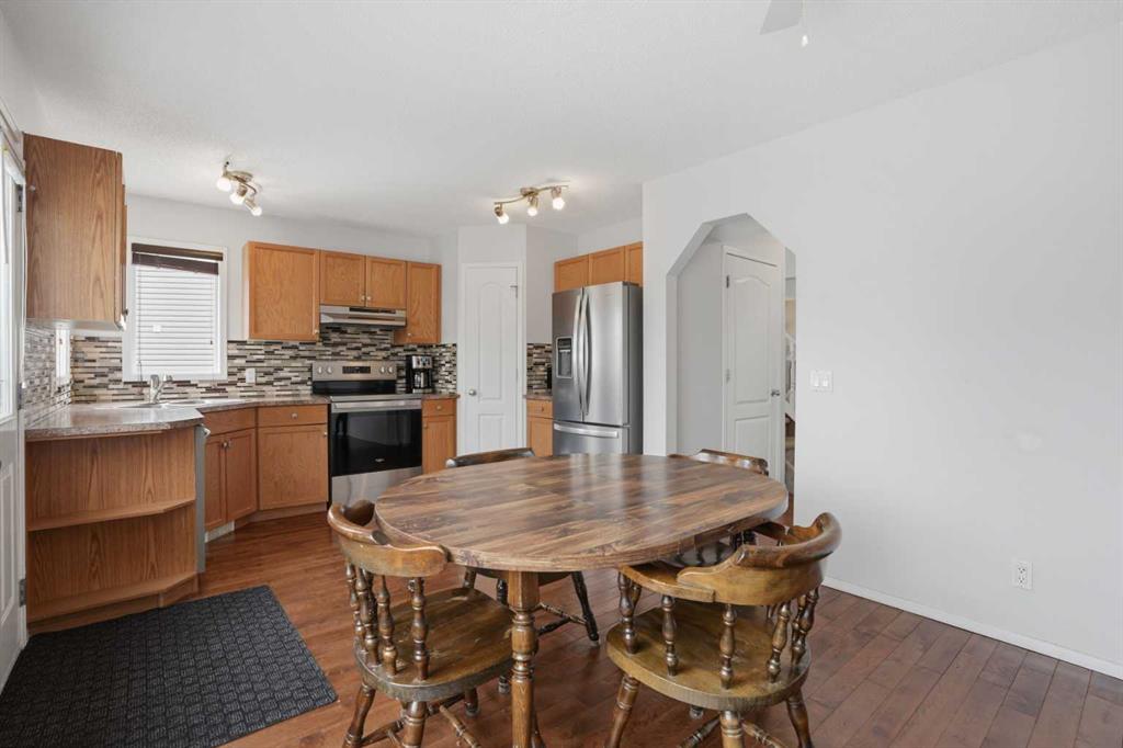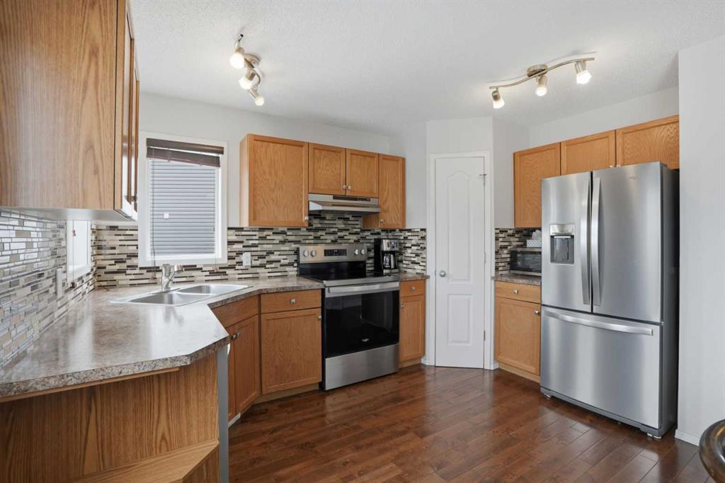Quiet Cul-de-Sac | Incredible Location | RV Parking | Rear Lane | 1,322 SqFt | 4 Bedrooms | 2.5 Bathrooms | Great Living Space | Bright with Natural Light | Open Floor Plan Kitchen & Dining | Stainless Steel Appliances | Corner Pantry | Main Level Laundry | 3 Upper Level Bedrooms | Finished Basement with Bedroom, 3pc Bath & Room | Ample Storage | Spacious Fully Fenced Backyard | Deck. Welcome to this beautifully maintained, fully finished family home located on a quiet cul-de-sac in desirable Creekside. The bright and inviting main floor features fresh paint and hardwood flooring throughout, with a spacious south-facing living room that fills the home with natural light. The kitchen and dining area overlook the backyard and provide direct access to a large deck—perfect for summer BBQs and entertaining. The kitchen is outfitted with stainless steel appliances, a dual basin sink, laminate countertops and ample cabinet storage. The corner pantry is a great bonus to your dry goods storage. A convenient main-floor laundry in the 2pc powder room completes the level. Upstairs you’ll find three generously sized bedrooms. The primary bedroom is paired with a walk-in closet. The upper level bedrooms share the 4pc bath with a tub/shower combo. The fully finished basement offers a fourth bedroom and additional bathroom—ideal for guests, teens, or extended family. Outside, enjoy a large yard with rear lane access and plenty of space for outdoor living. Located close to parks, schools, shopping, and amenities, this move-in-ready home is perfect for families looking for space, comfort, and convenience. Hurry and book your showing at this gorgeous family home today!