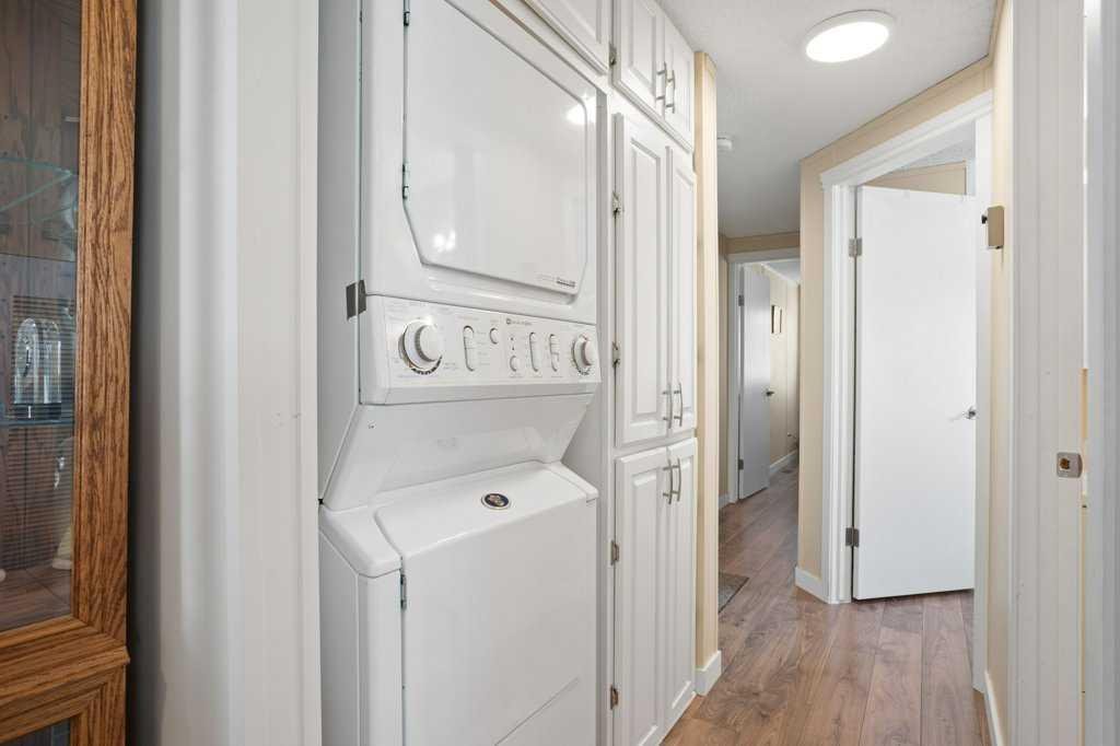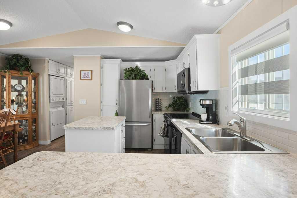 Welcome to this well-cared-for and updated home in the 45+ community of Watergrove Park in Arbour Lake, situated on a wonderful street with fantastic neighbours. This charming property features a carport with skylights that comfortably shelters two vehicles, a large rear deck off the back entry, a fenced patio area and a convenient 10×10 powered garden shed. Inside, you’re welcomed by a bright and spacious living room with a large window and vaulted ceilings that lead into the stylishly updated kitchen complete with stainless steel appliances, ample counter space, a central island and an adjacent dining area perfect for hosting. At the front of the home, just off the living room, is a versatile bedroom ideal as a home office, craft room or guest space. The hallway features an updated 4-piece bathroom and a stacked laundry area with built-in storage for linens or additional pantry space. Toward the back of the home you’ll find a second bedroom and a spacious primary bedroom with a large closet. The rear hallway also provides access to an additional 100+ sq ft of finished space, ideal for storage (excluded from RMS as it is not insulated). This home has been exceptionally maintained with key updates including PEX plumbing, vinyl windows, furnace (2021) and hot water tank (2021). Enjoy a beautifully maintained home in a fantastic location with easy access to amenities, transit and the many social activities within the park. Watergrove Park offers excellent resident amenities including an outdoor pool, billiards room and a fully equipped fitness centre, contributing to the outstanding reputation this community is known for. Check out the 3D virtual tour and book your showing today.