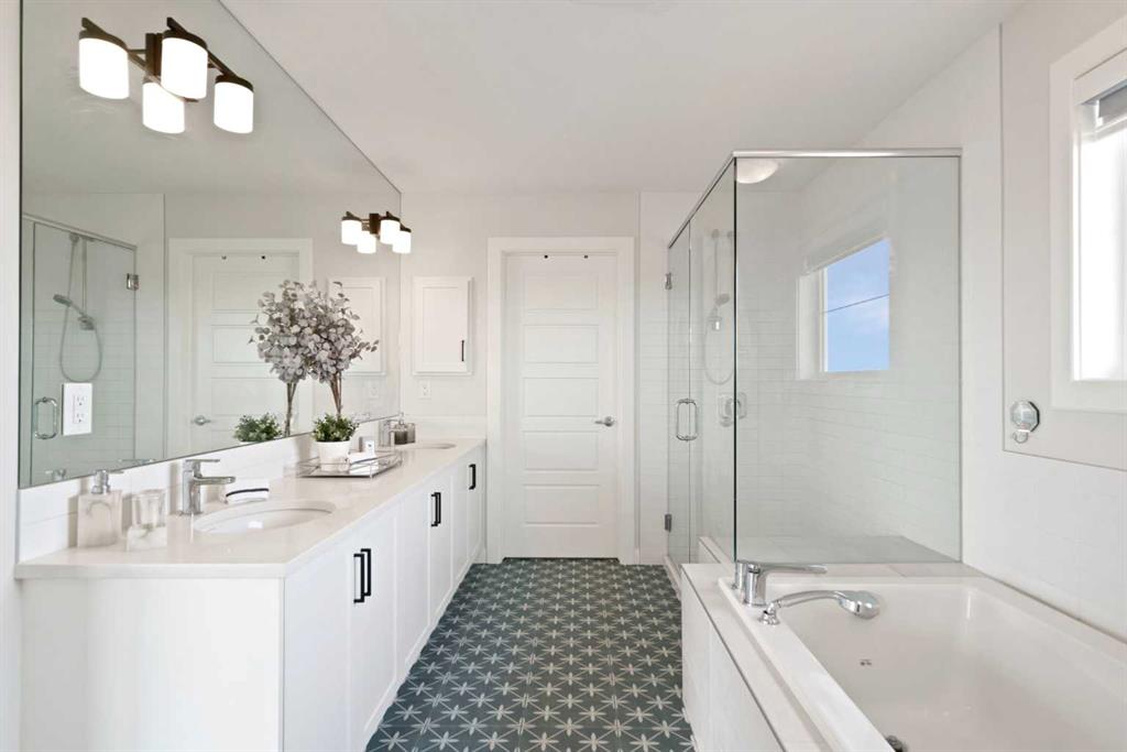 Upstairs, a central bonus room anchors the second floor, offering separation and privacy between bedrooms. The primary suite is a serene retreat with automatic blinds, a spa-inspired ensuite featuring dual sinks with tons of counterspace and storage, a tiled walk-in shower, a deep soaker tub, and a generous walk-in closet. Two additional bedrooms (each a great size) are located on the opposite side of the bonus room, along with a stylish 4-piece bath and a dedicated laundry room that’s on every mom’s wishlist!